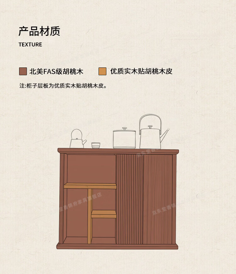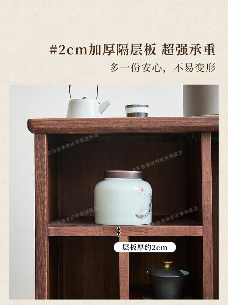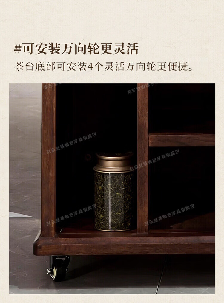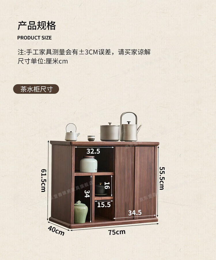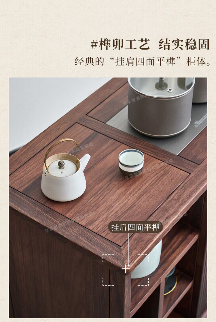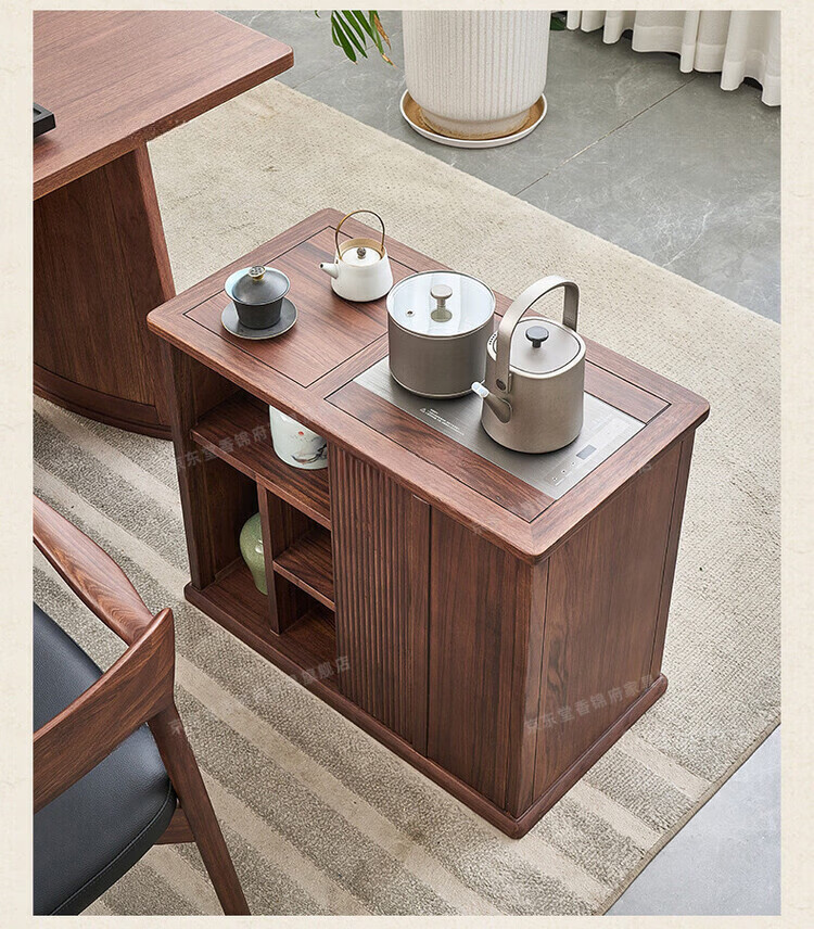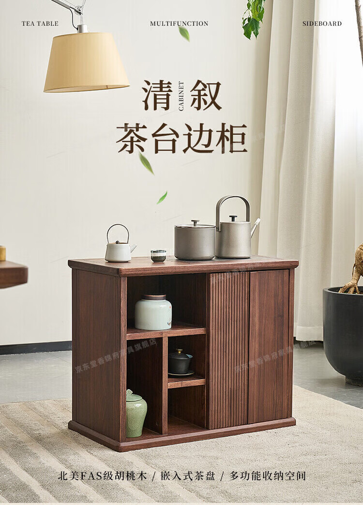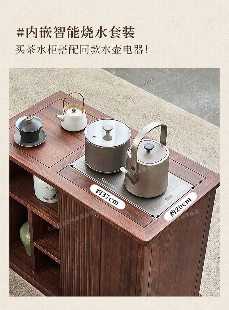 堂香锦府黑胡桃木可移动茶水柜全实木家用客厅茶台茶桌茶柜烧水壶一体边柜 【FAS级进口胡桃木】0.75米茶水柜1个