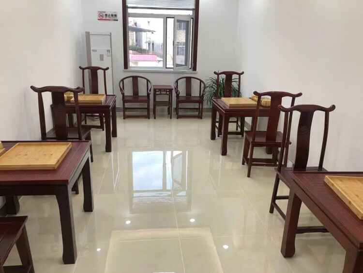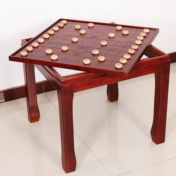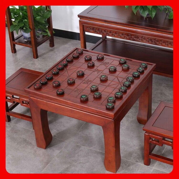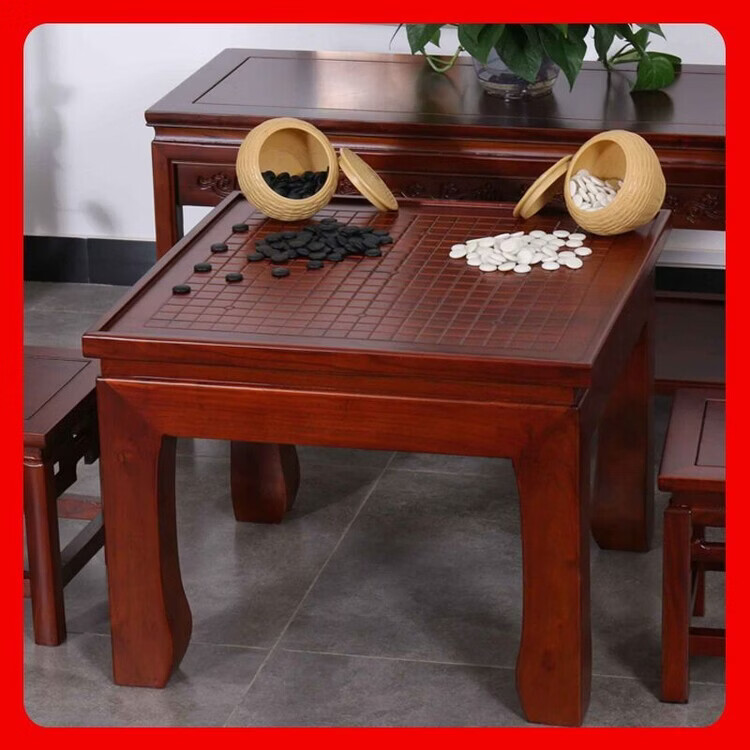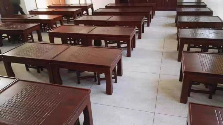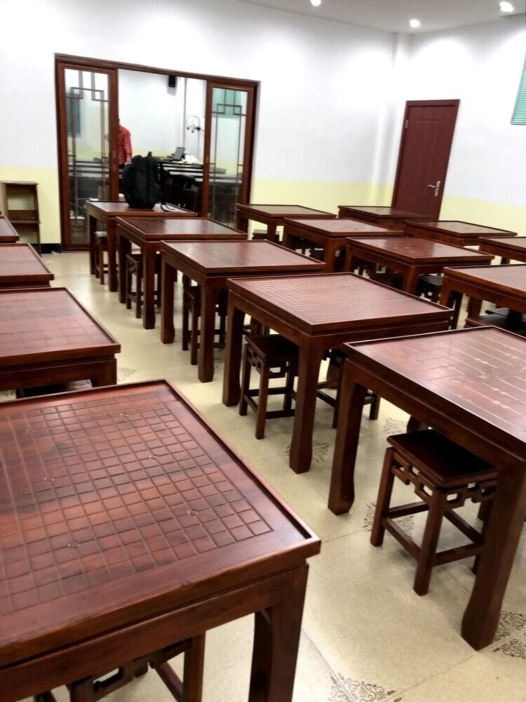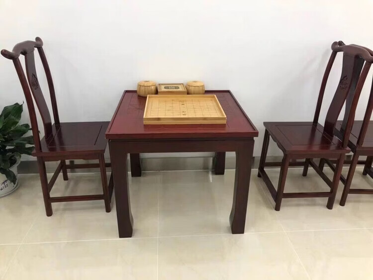 欣慕雅古典实木榆木棋桌整装带棋谱五子棋围棋象棋桌椅板凳棋艺培训桌椅 60*60*40单桌