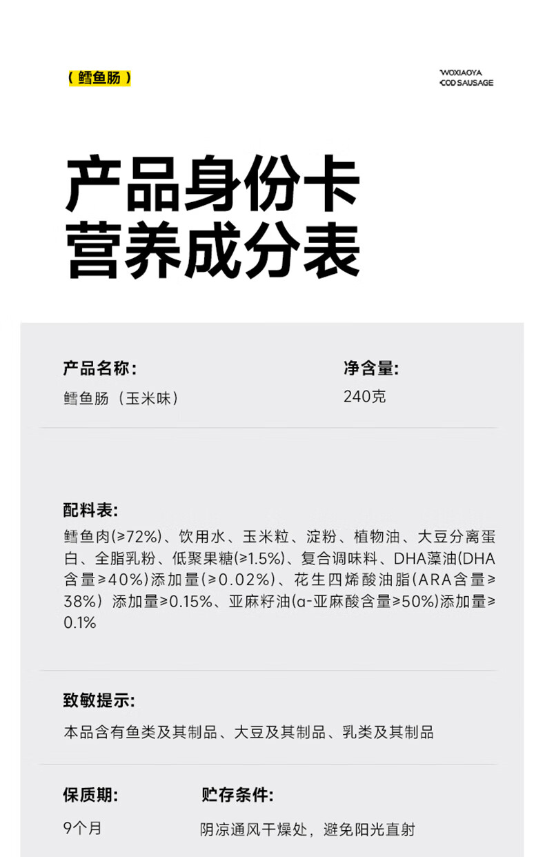 窝小芽 深海鳕鱼肠240g玉米味儿童零食0添加防腐剂 享婴幼儿宝宝零食谱