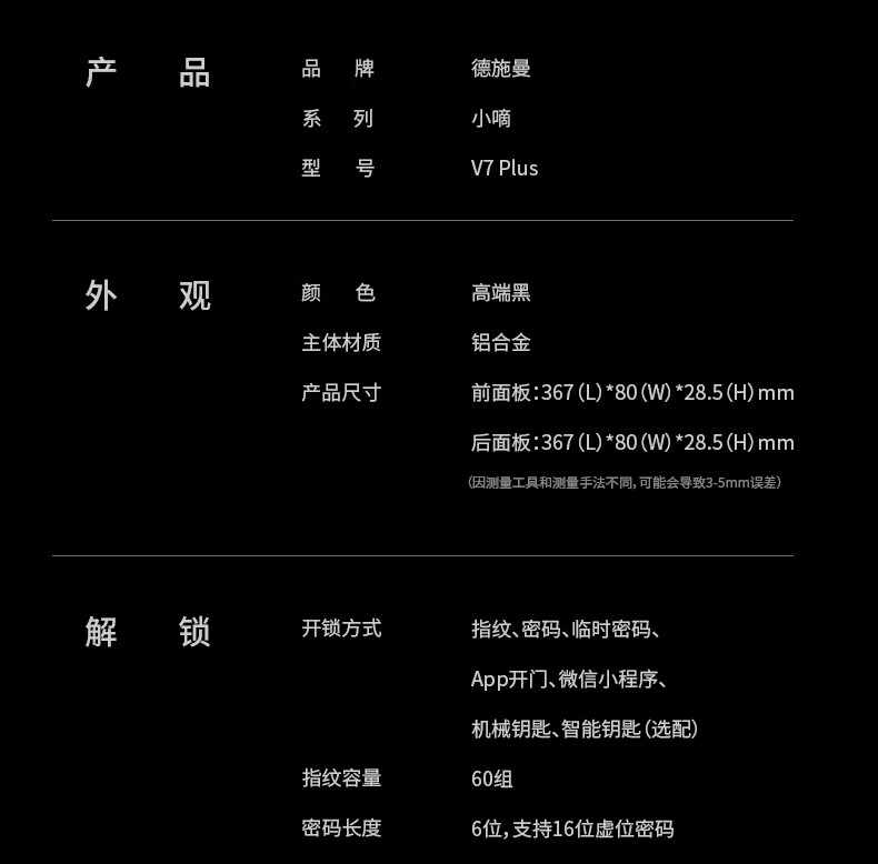 德施曼(DESMAN)指纹锁智能门锁 电子密码锁 入户防盗门锁环保锂电池长续航V7Plus
