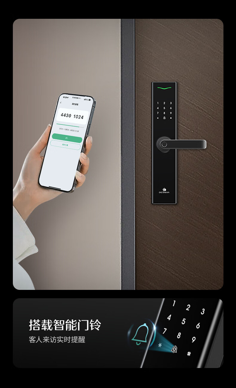 德施曼(DESMAN)智能门锁电子锁家用防盗门锁指纹密码锁小嘀V20