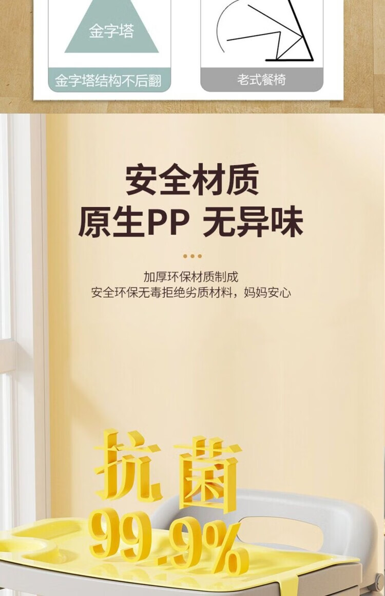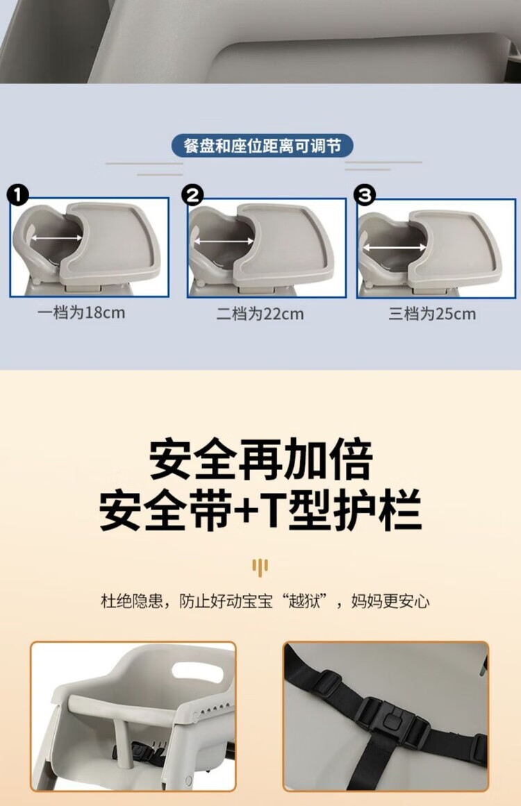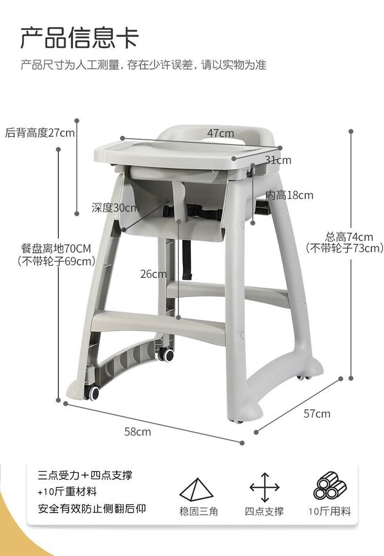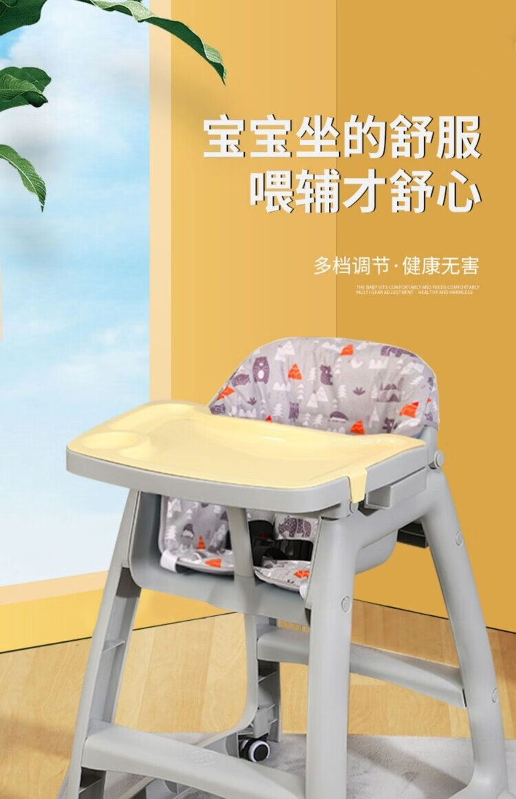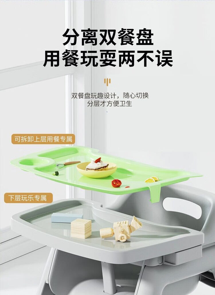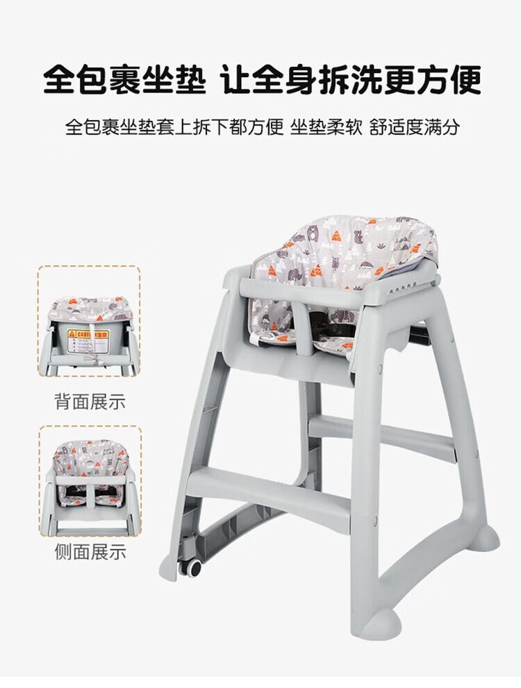 弘星隆宝宝餐椅婴儿家用吃饭餐桌座椅多功能餐厅酒店商用肯德基儿童餐椅 加厚款 双层光面餐盘+坐垫+刹车轮