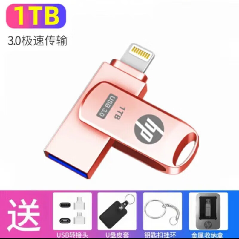 OEING1tb大容量超长质保高速读写u盘1000G高速大容量四合一手机电脑两用1T苹果安卓存储扩容系统盘 粉色128G苹果+电脑接口