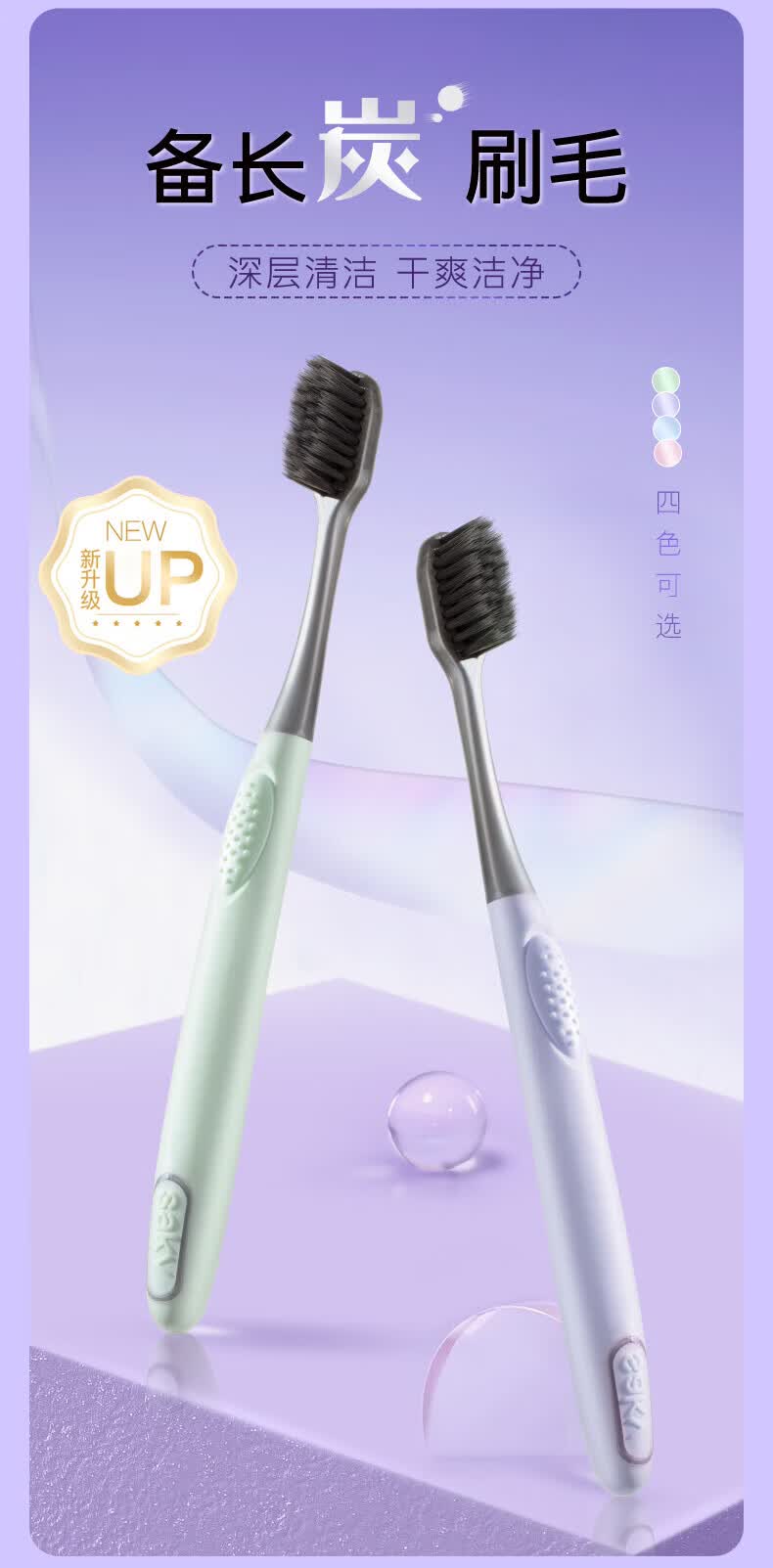 舒客炭丝清新洁净软毛牙刷装去异味清新口气吸附小刷头 炭丝 4支 (粉蓝)