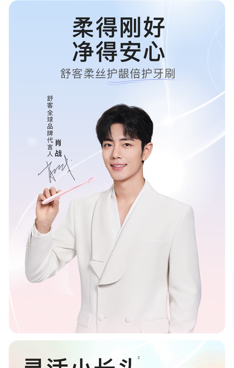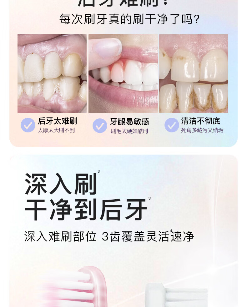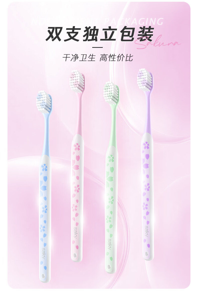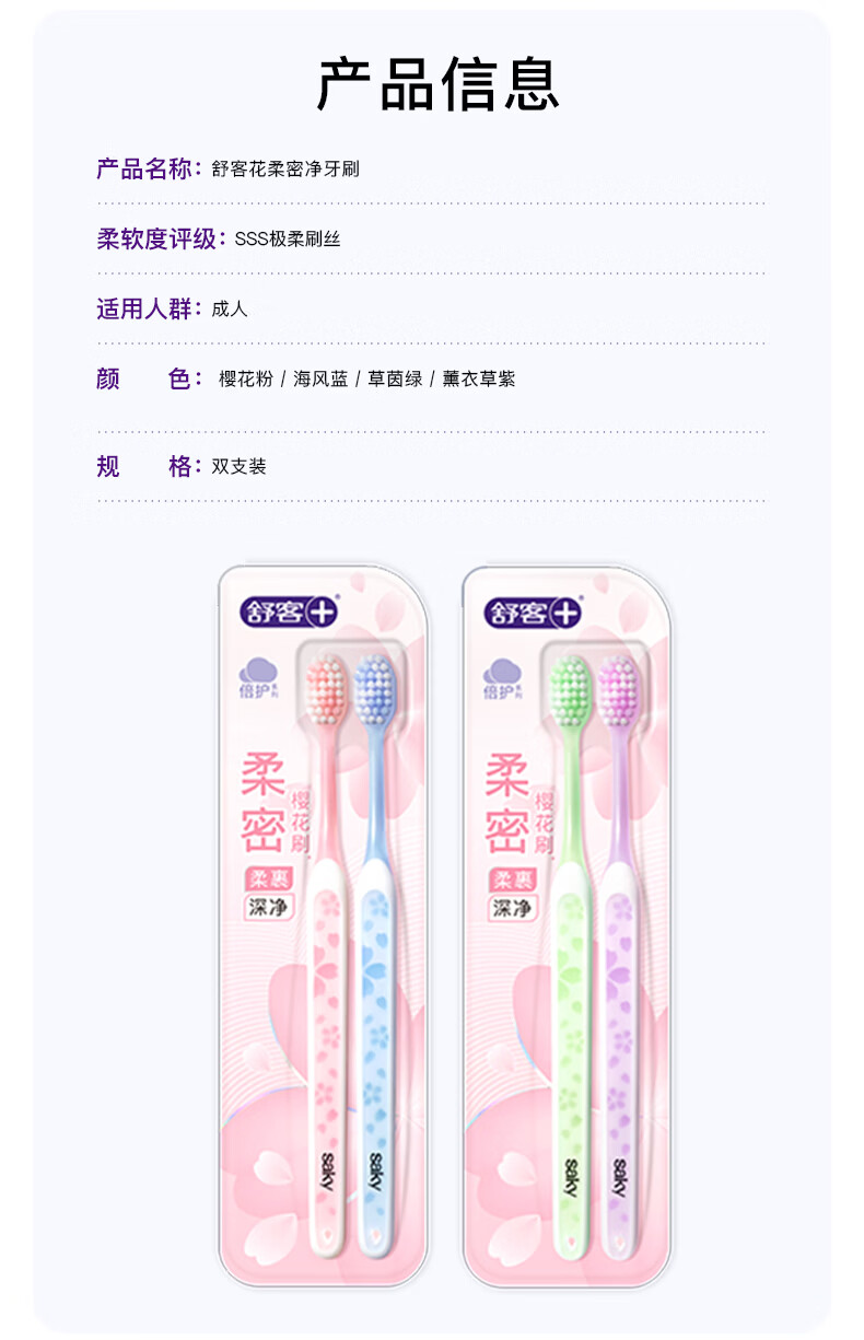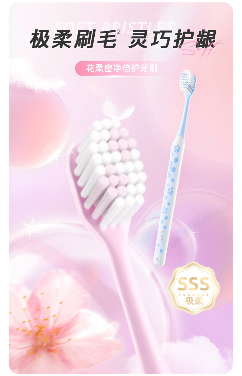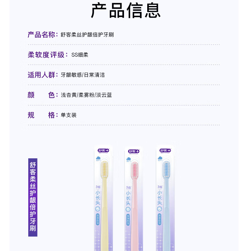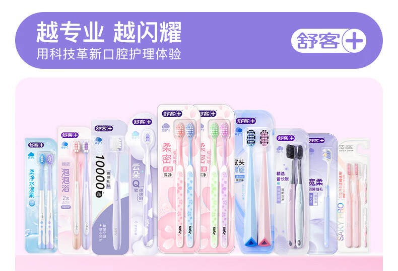 舒客牙刷护龈清洁 超软毛护龈小刷头成人牙刷 任选8件 炭丝(粉蓝) 2支