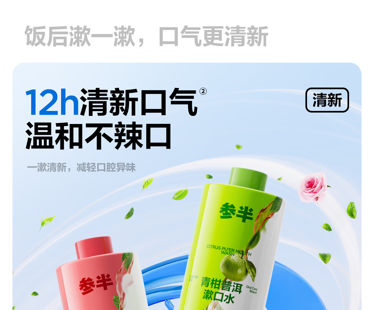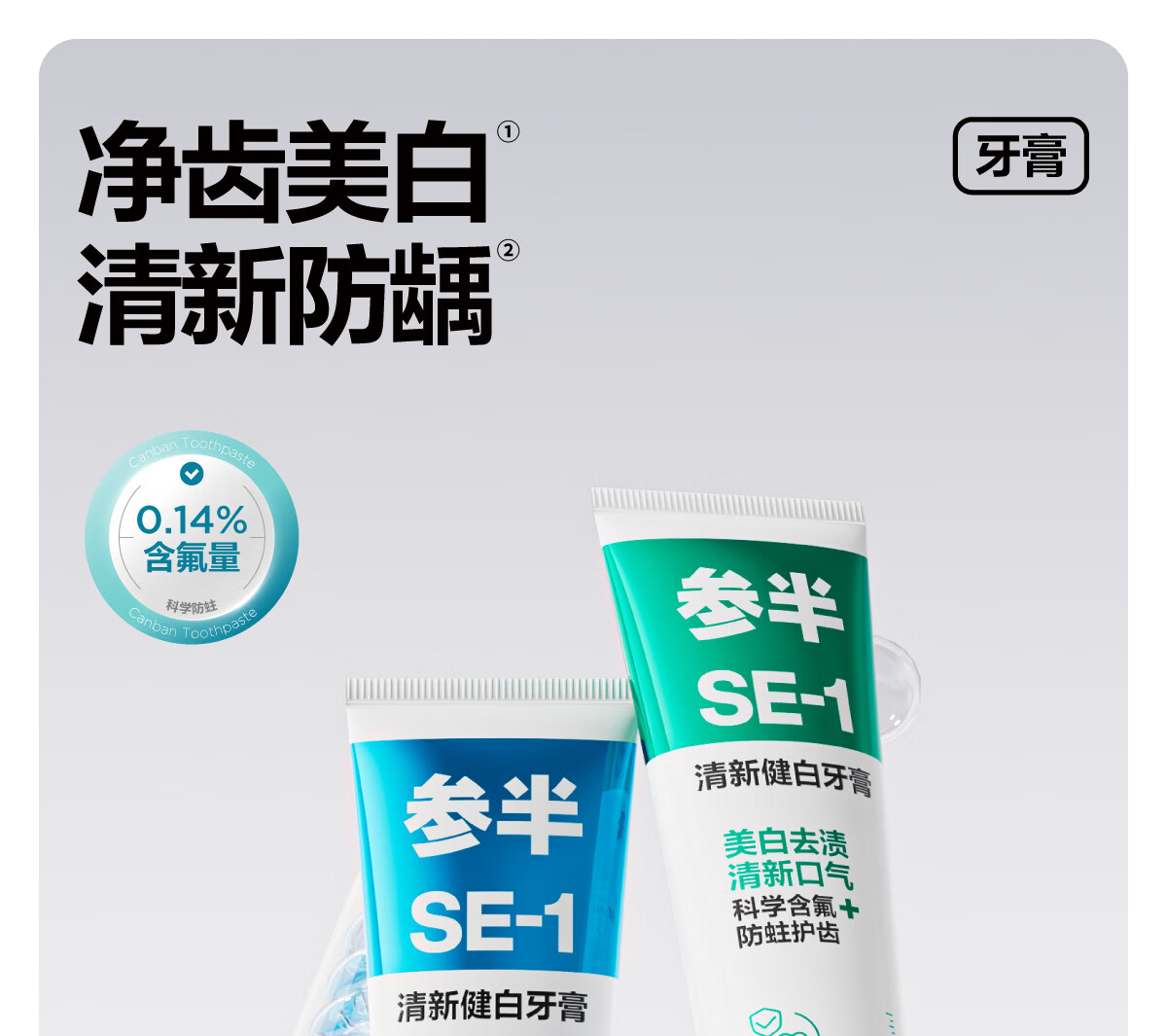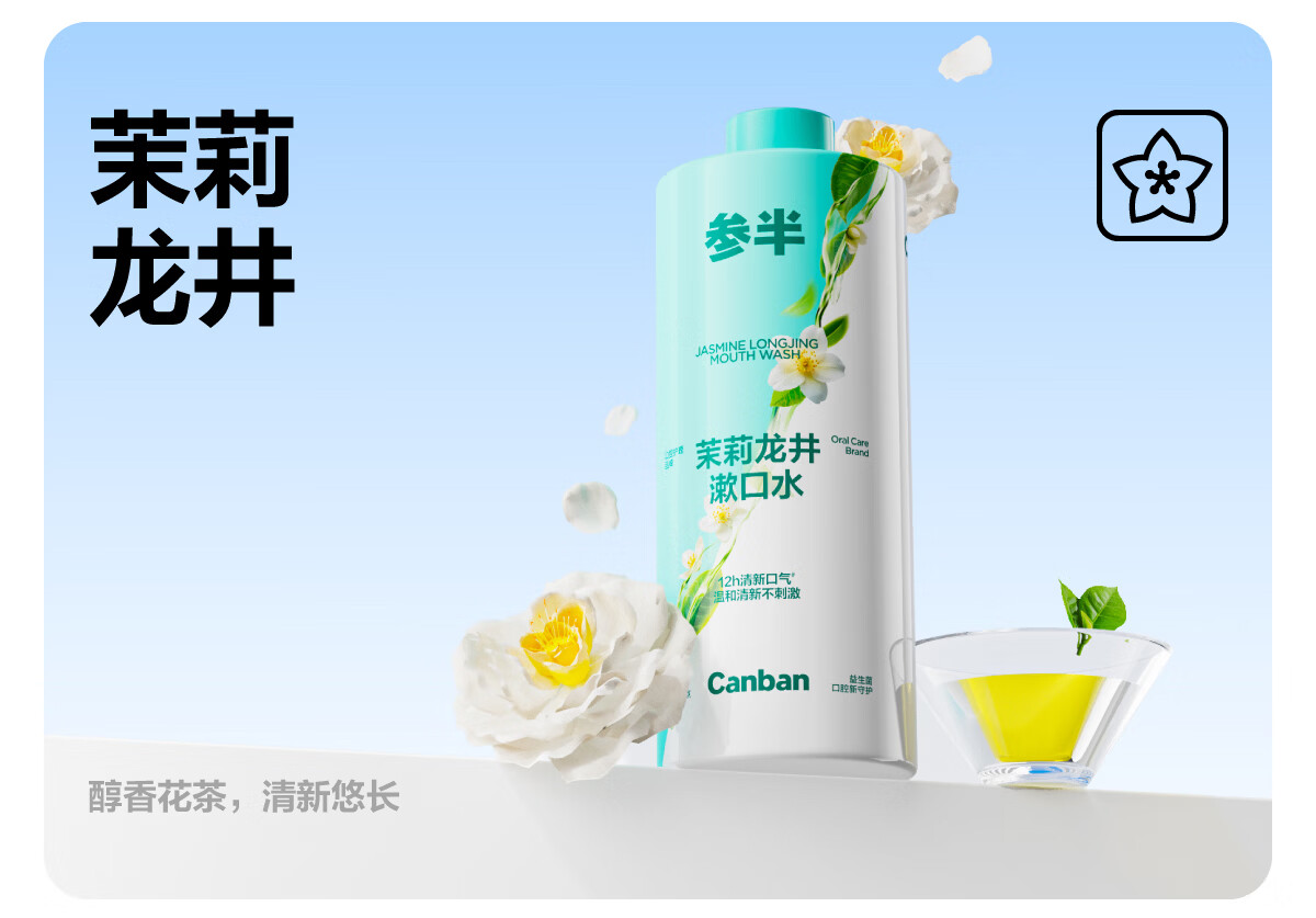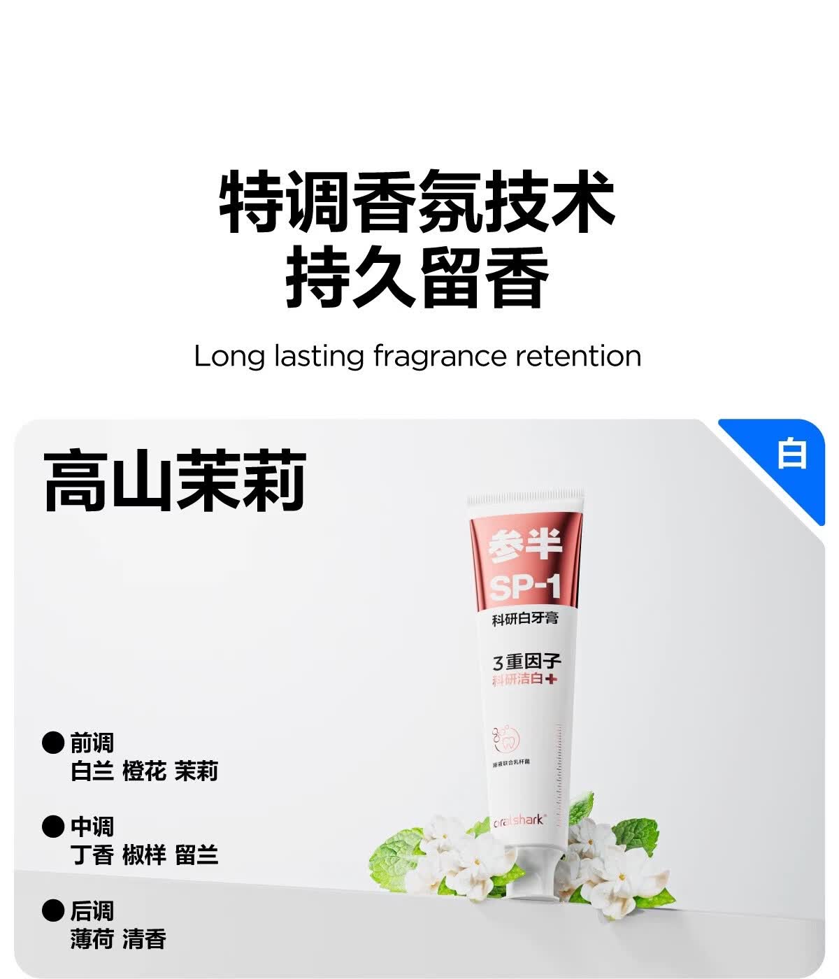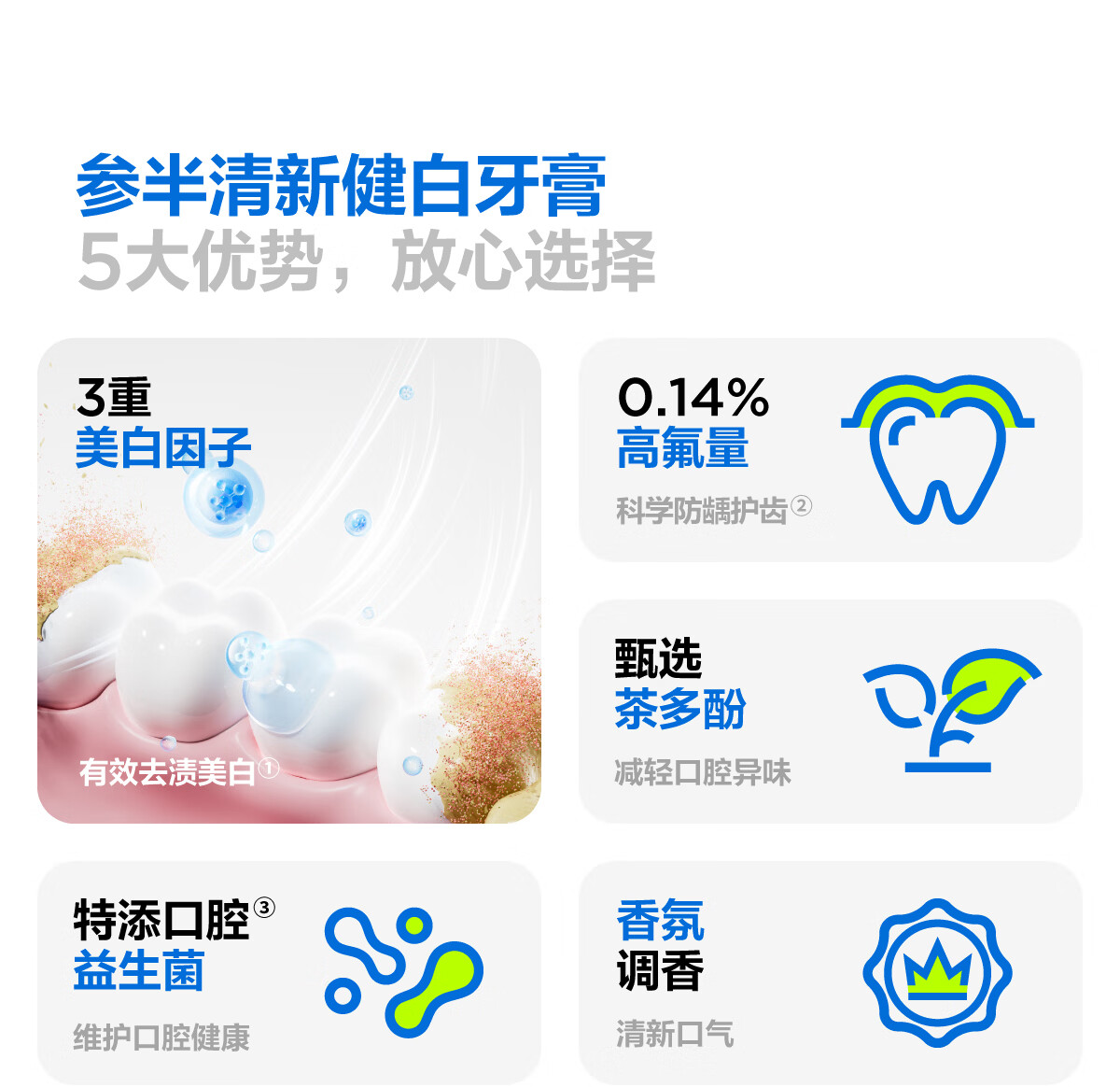 参半华晨宇同款去渍美白含氟成人牙膏漱口水清新口气清洁防蛀牙大容量 【大规格180g】茉莉茶爽+海风薄荷