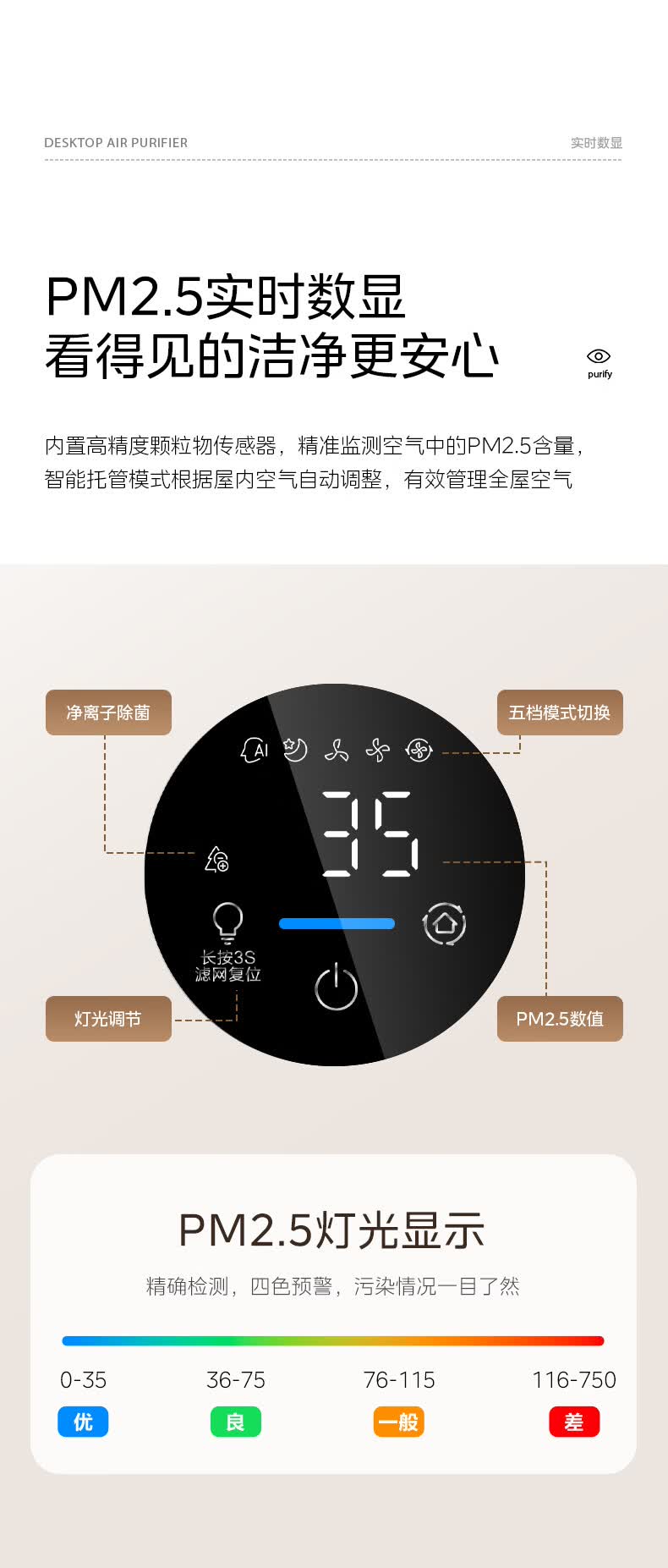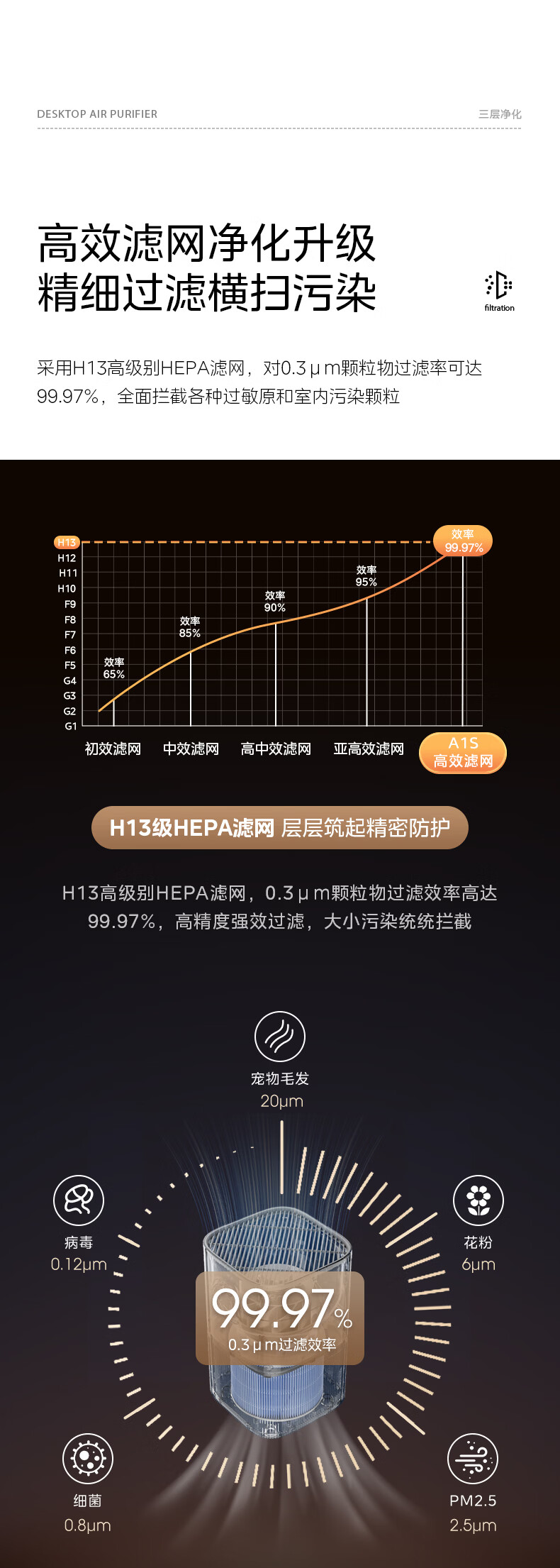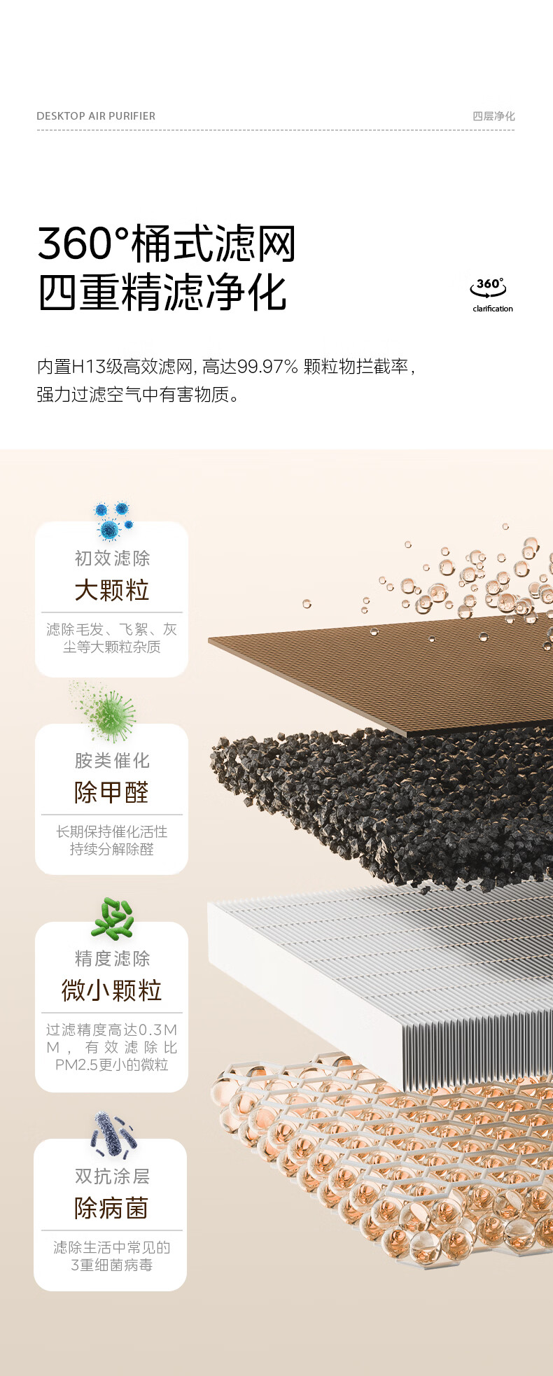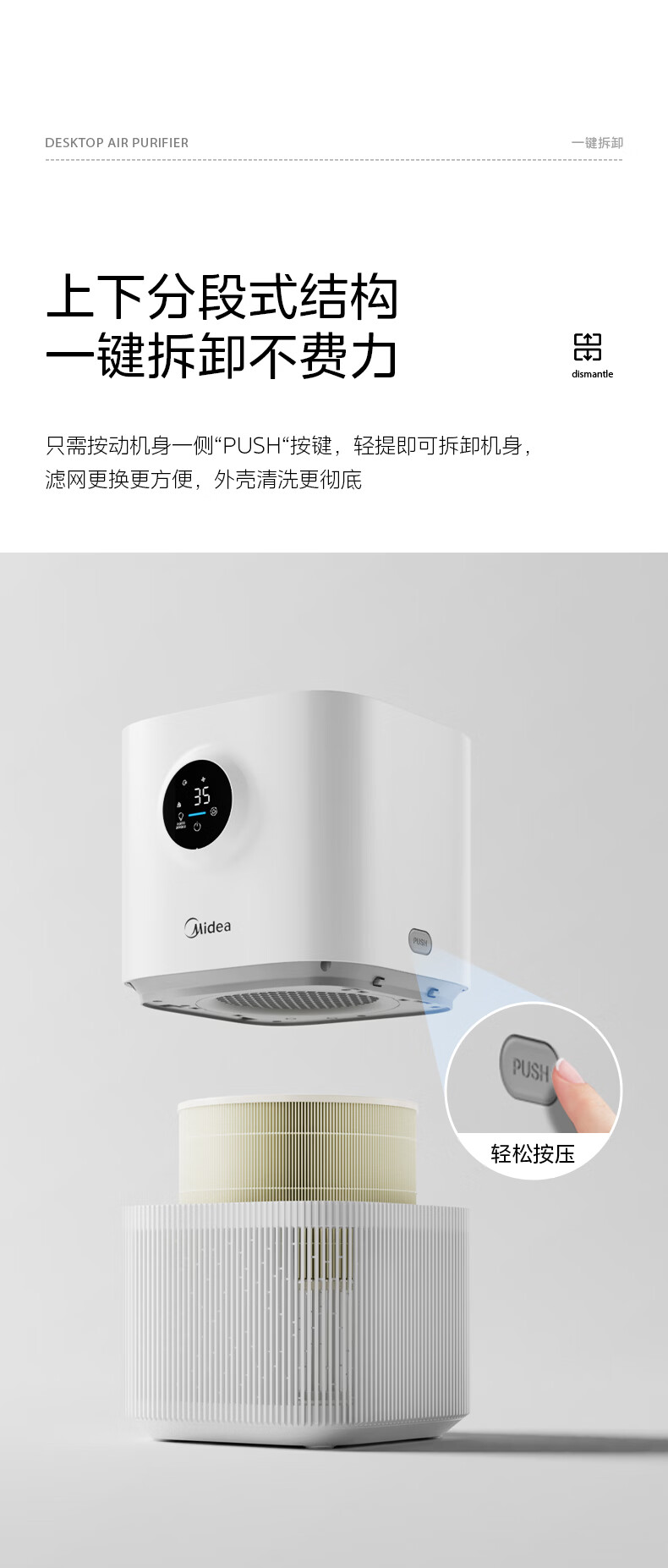 美的(Midea)桌面空气净化器A1Pro除甲醛除敏除烟味异味过敏源 除尘除菌 A1S升级款家用小户型KJ300G-A1 Pro