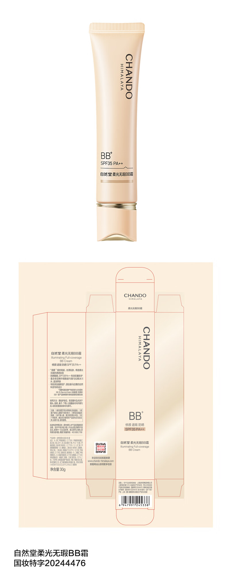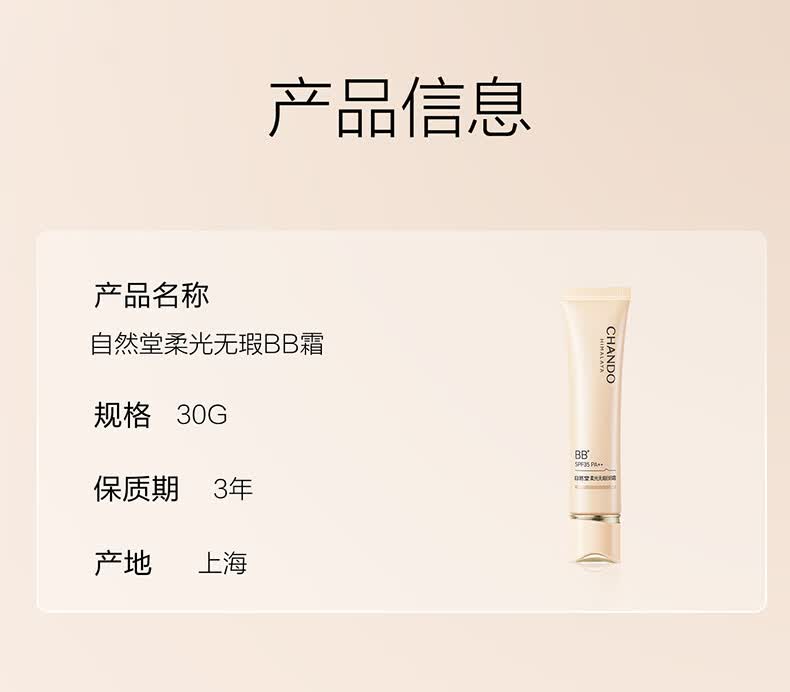 自然堂柔光无瑕BB霜30g 防晒底妆裸妆原生12H持妆生日礼物女