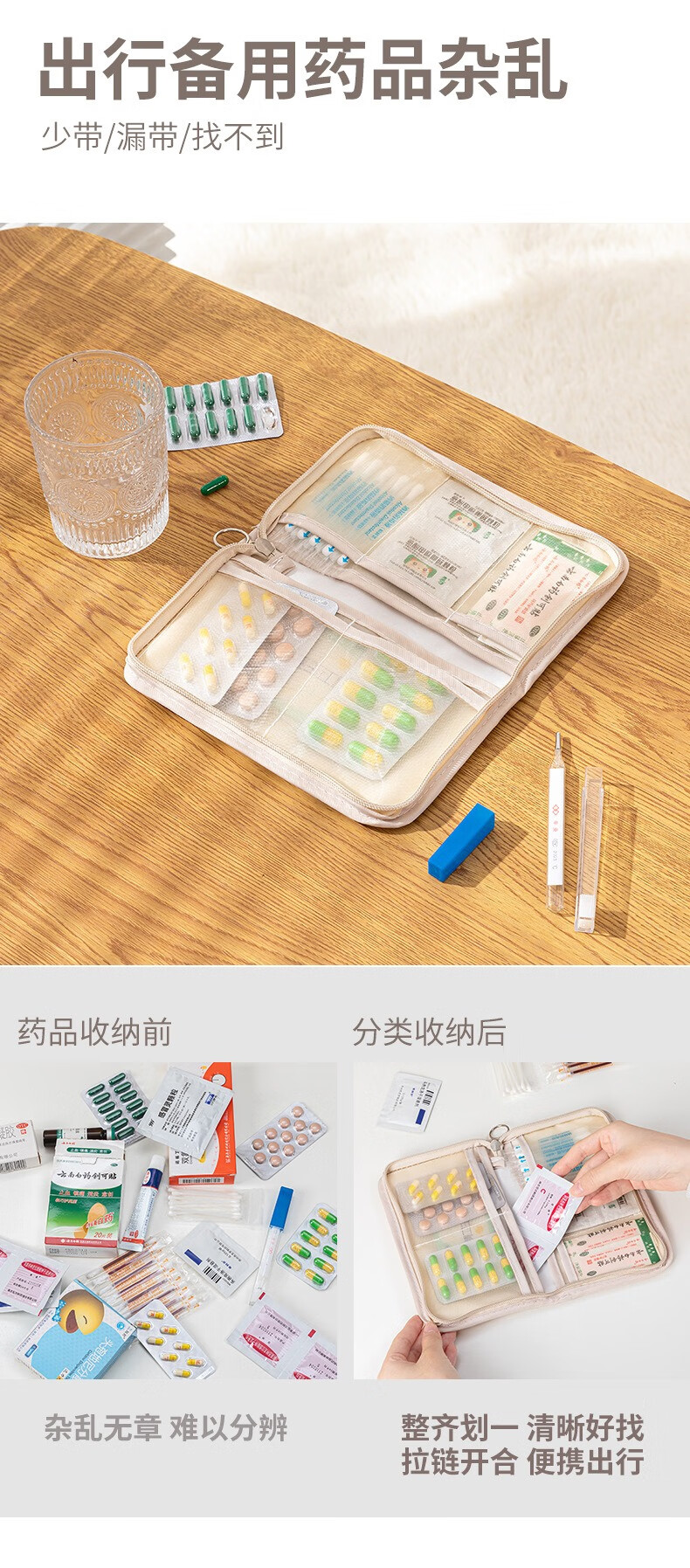 享乐屋旅行药品收纳包便携式随身医药包收纳包学生宿舍小药盒户外应急 灰色【分类收纳 小巧便携】
