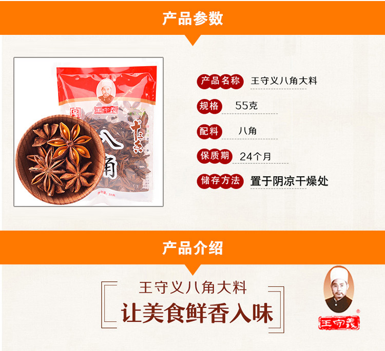 王守义 八角 55g袋装 正宗八角大料 味道浓郁 卤炖必备 中华老字号