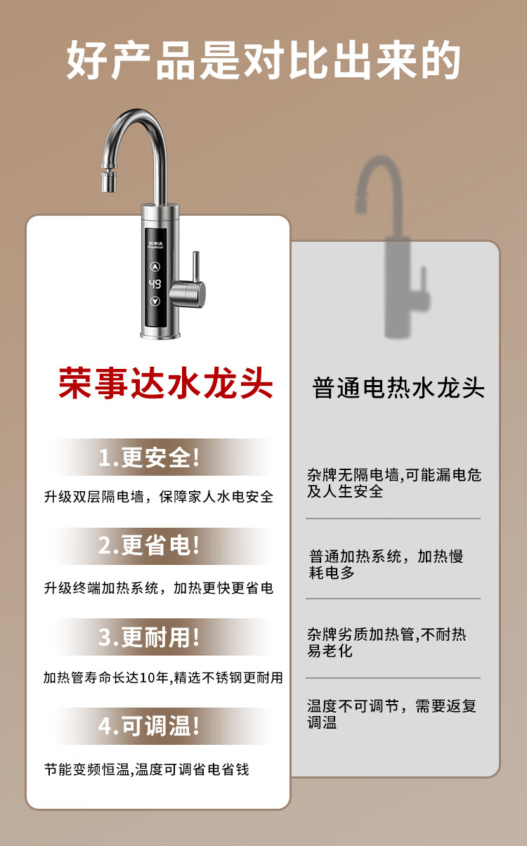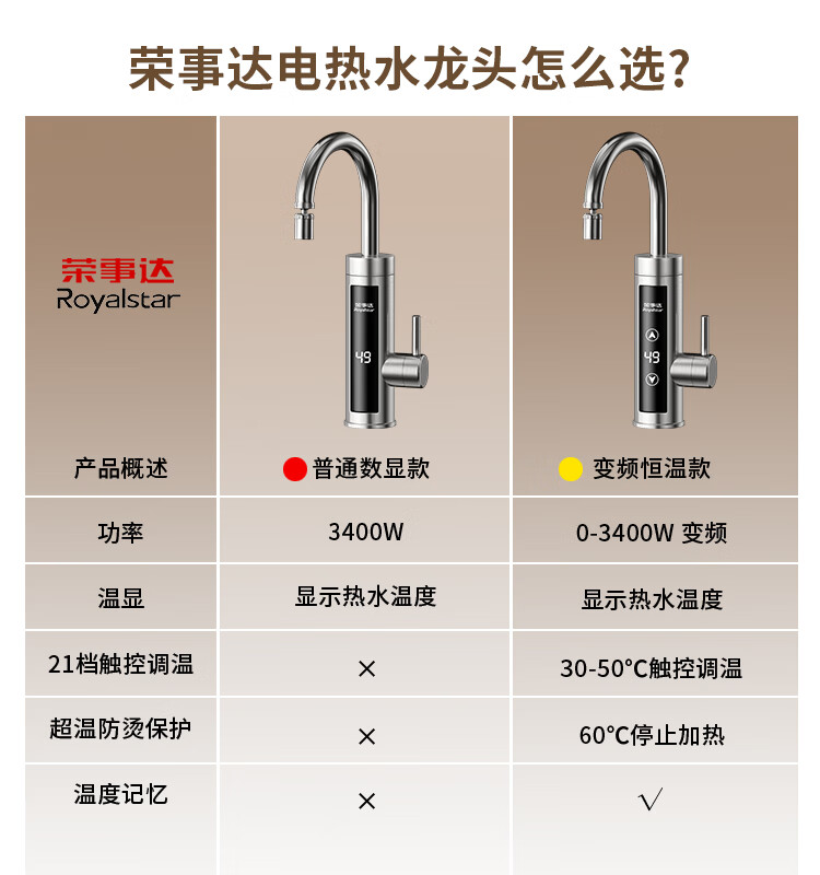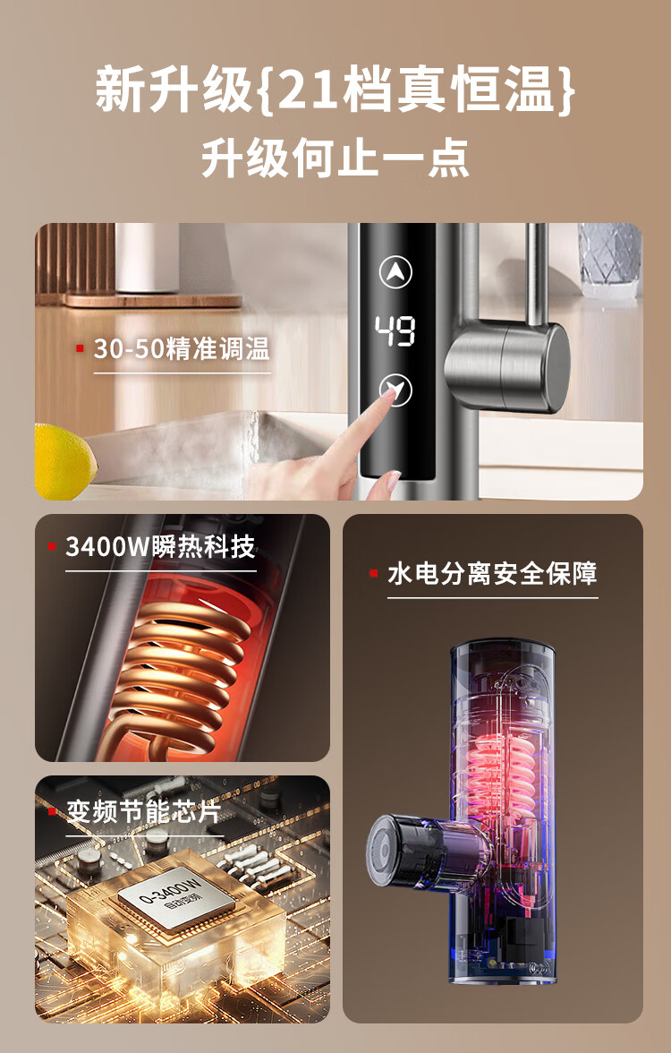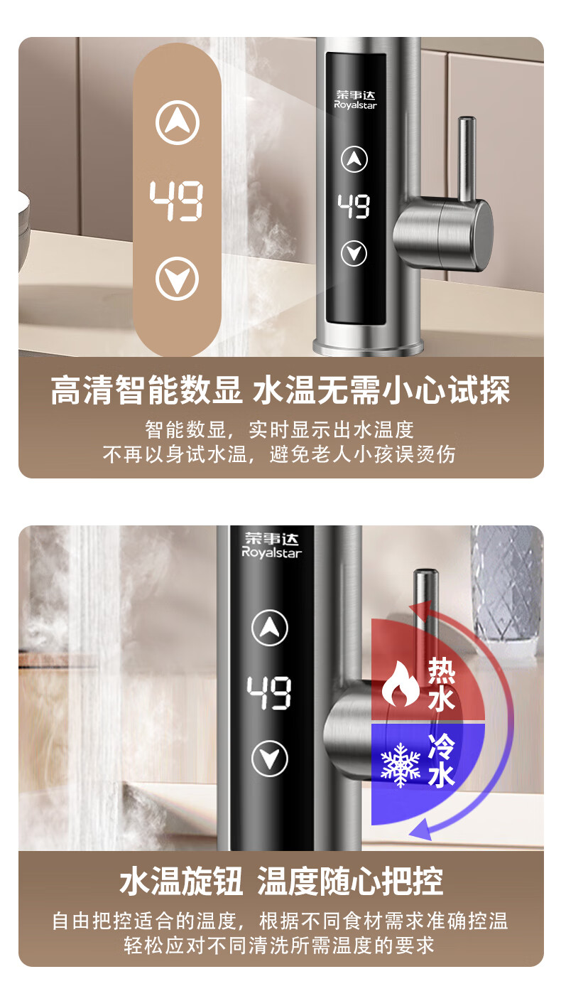 荣事达(Royalstar)电热水龙头热水器加热水龙头即热式速热水龙头变频恒温厨卫两用下进水