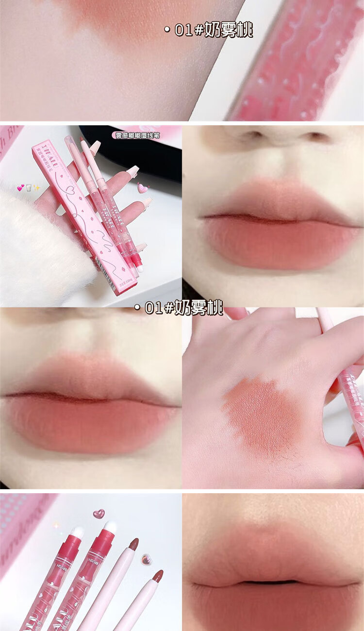 阿嚓热(ACARE)T唇线笔B1p291-勾勒画型唇部勾线笔化妆上色带唇 01#奶雾桃1支 250mg