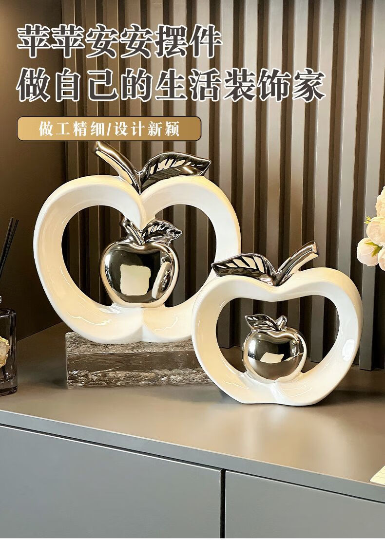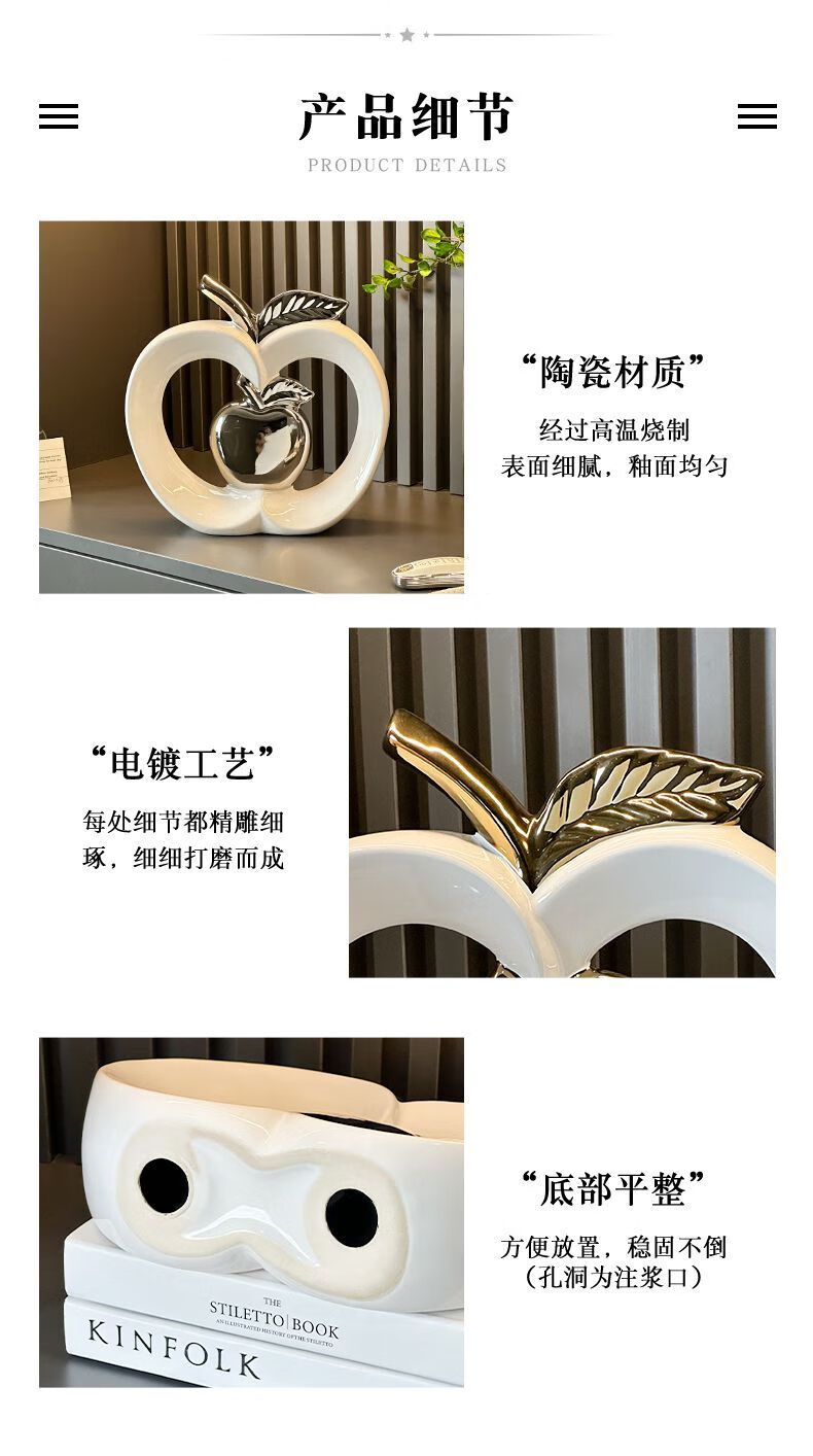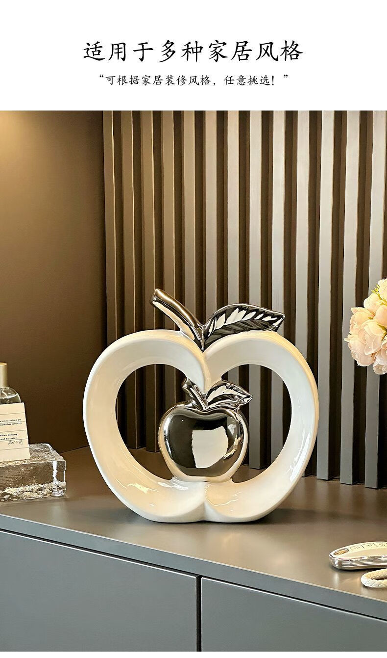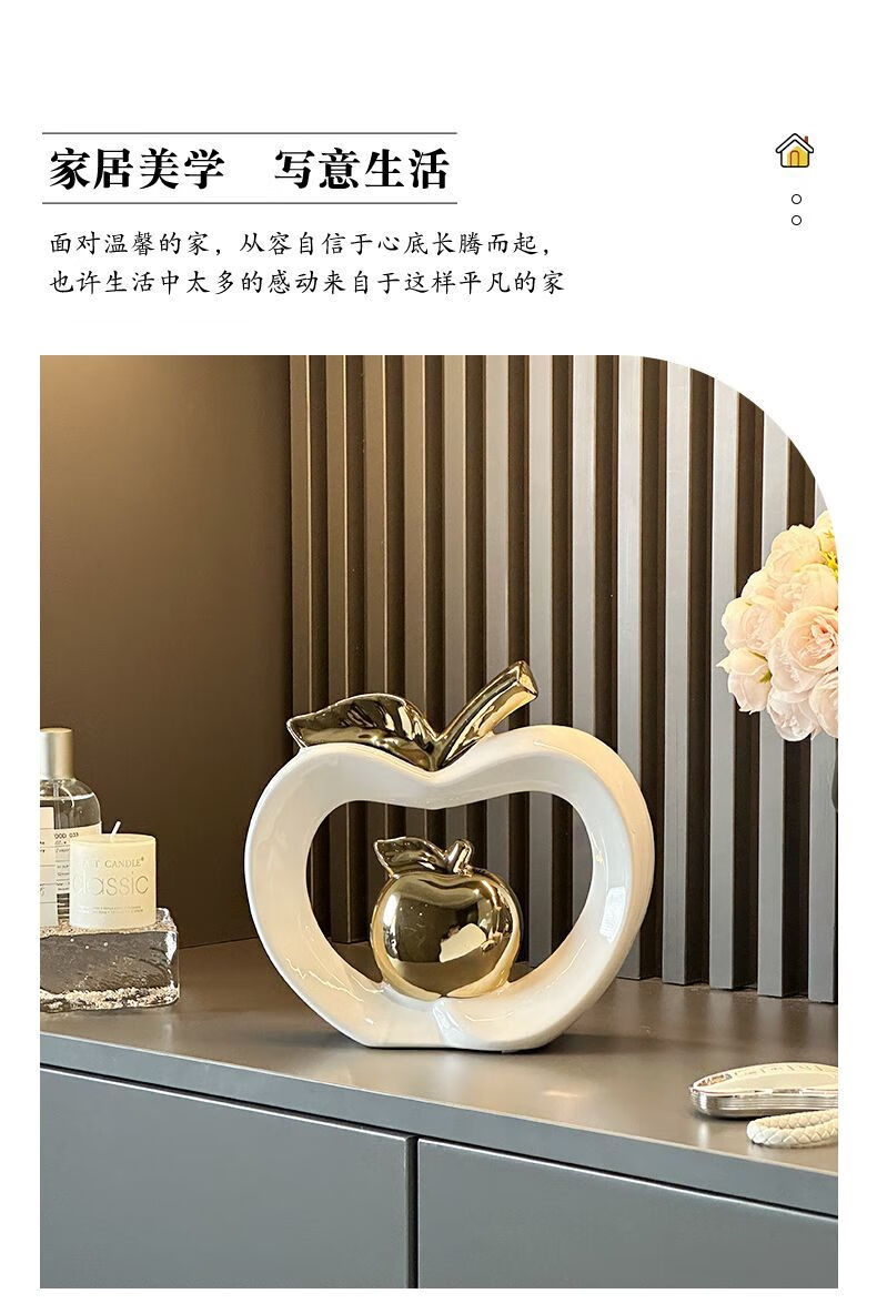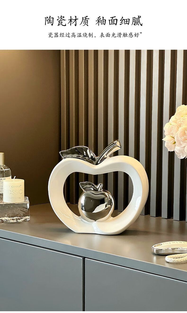 OYKTN感苹果摆件小众客厅装饰品轻奢家居玄关电视酒柜乔迁新居礼品 【家居装饰摆件】苹果小号【白金】