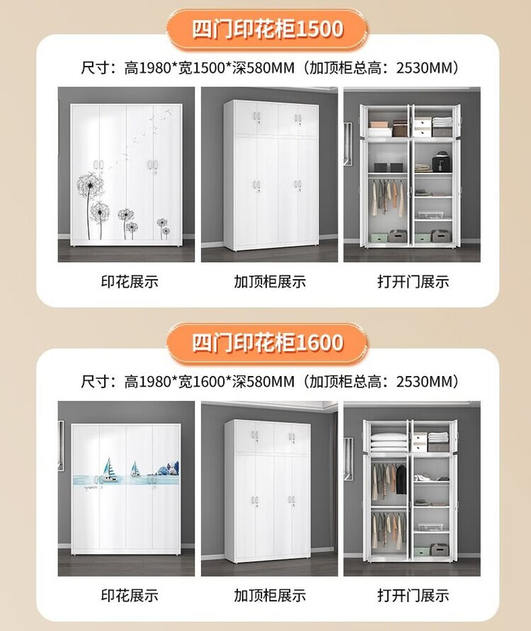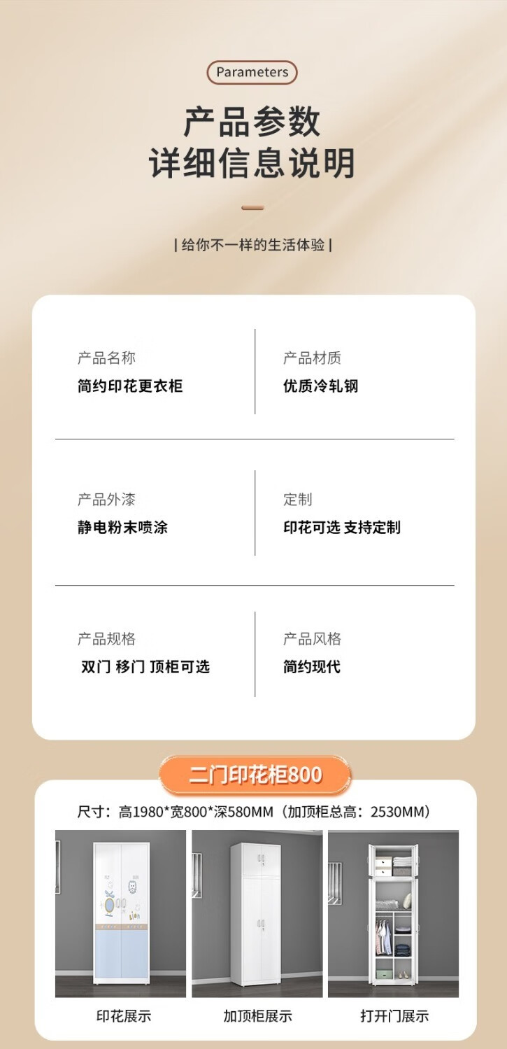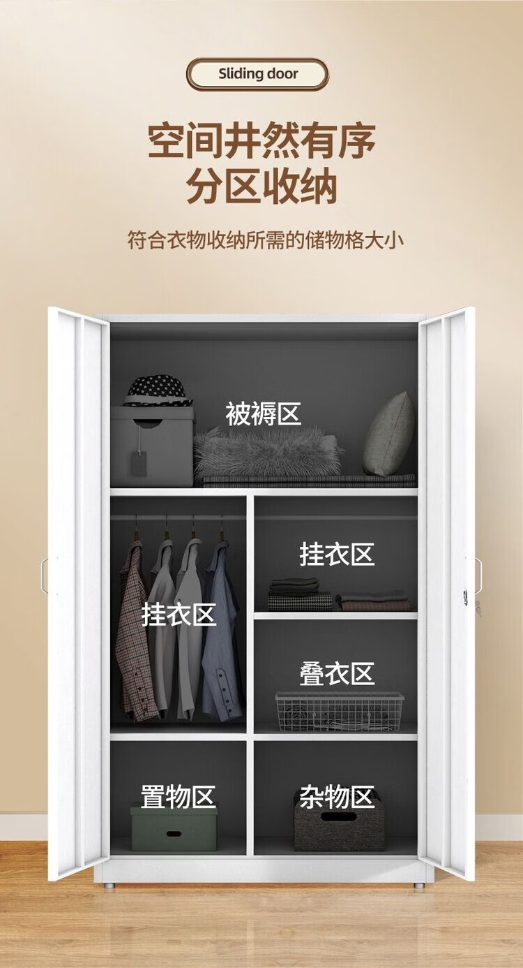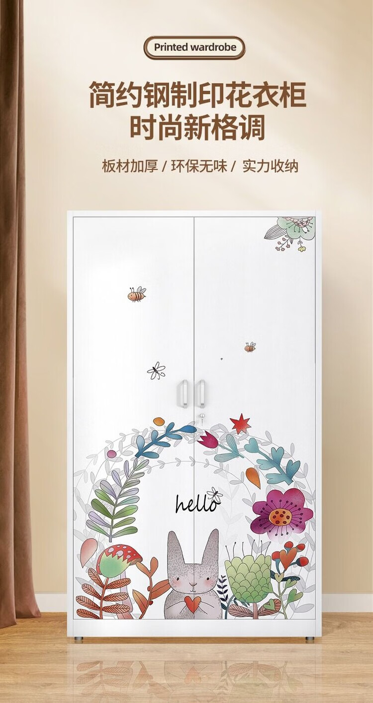 弘星隆铁皮衣柜家用儿童卡通大衣橱经济型推拉门卧室阳台带锁收纳储物柜 【加厚环保】二门800宽 自己安装