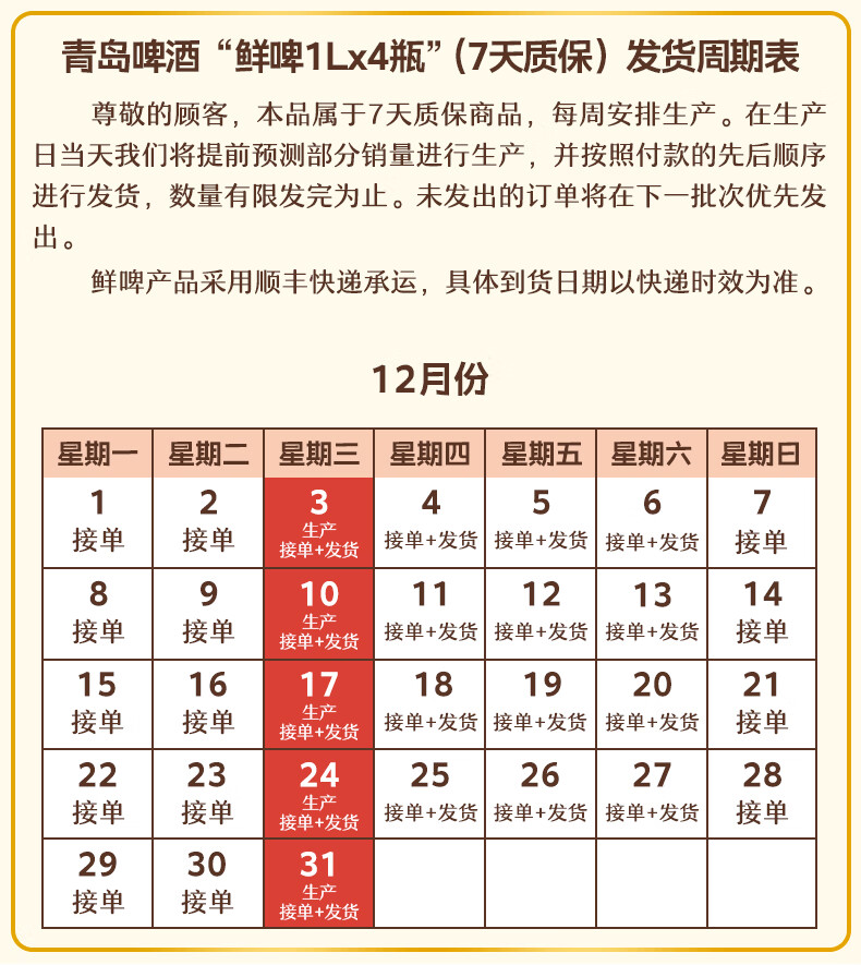 青岛啤酒原麦汁浓度10°P 鲜啤 7天新鲜直送 昆山产 1L 4桶