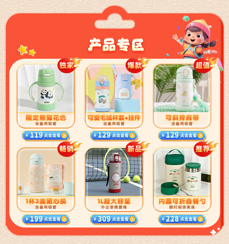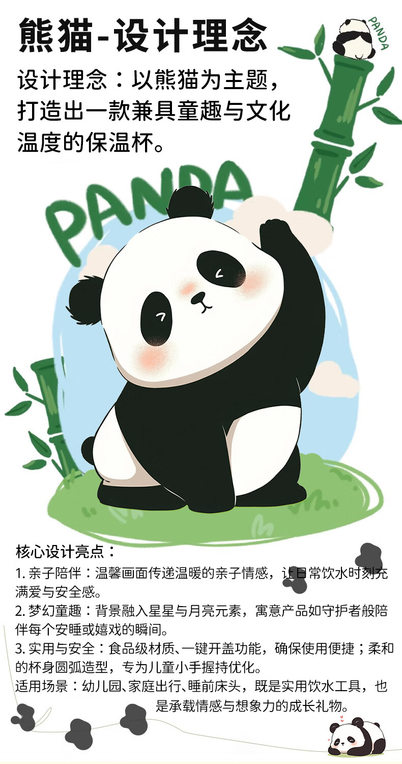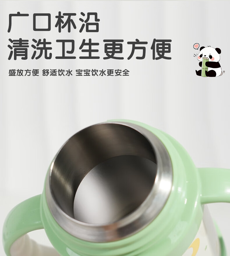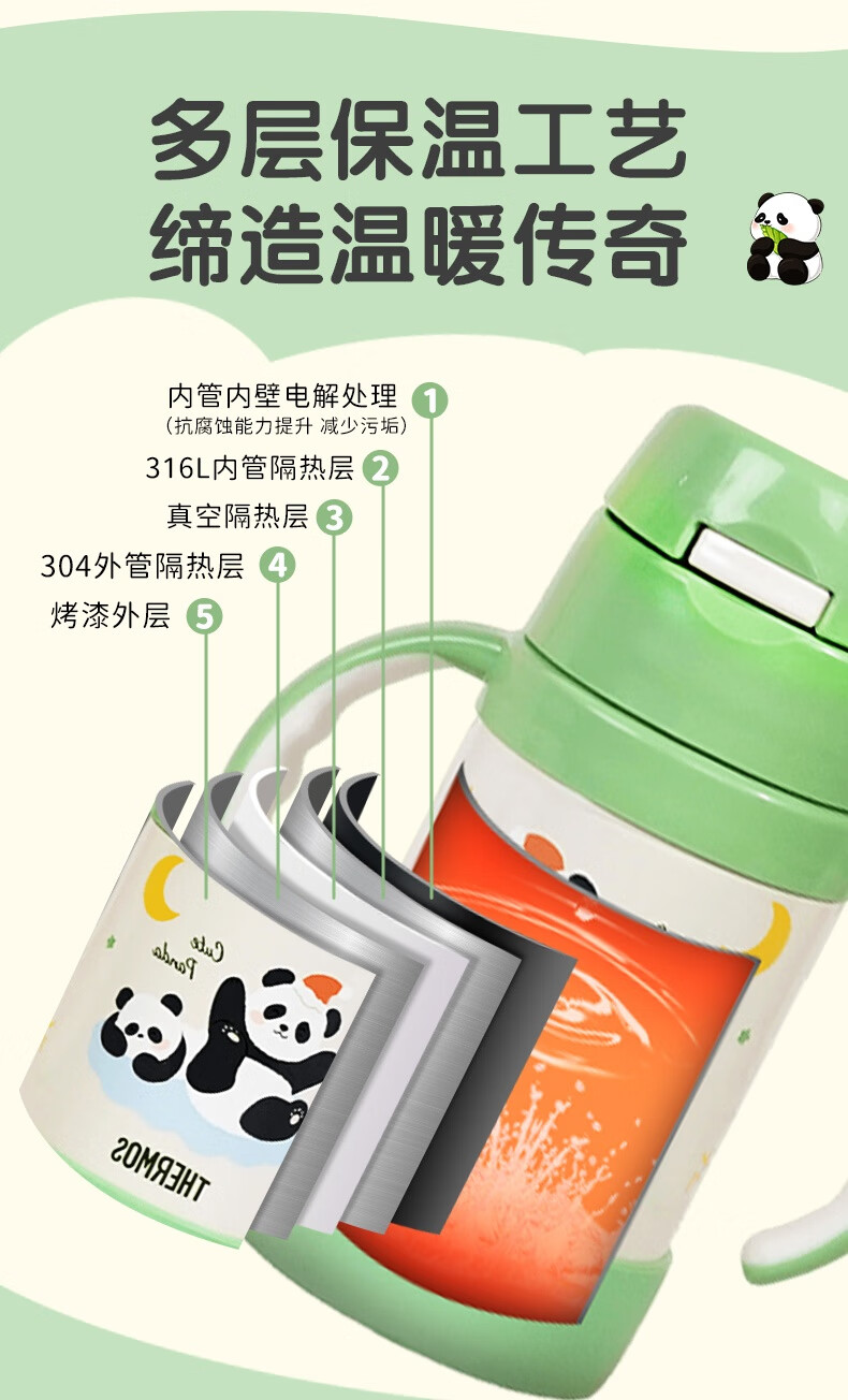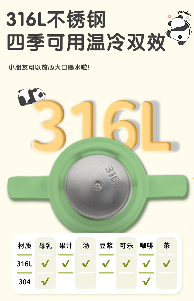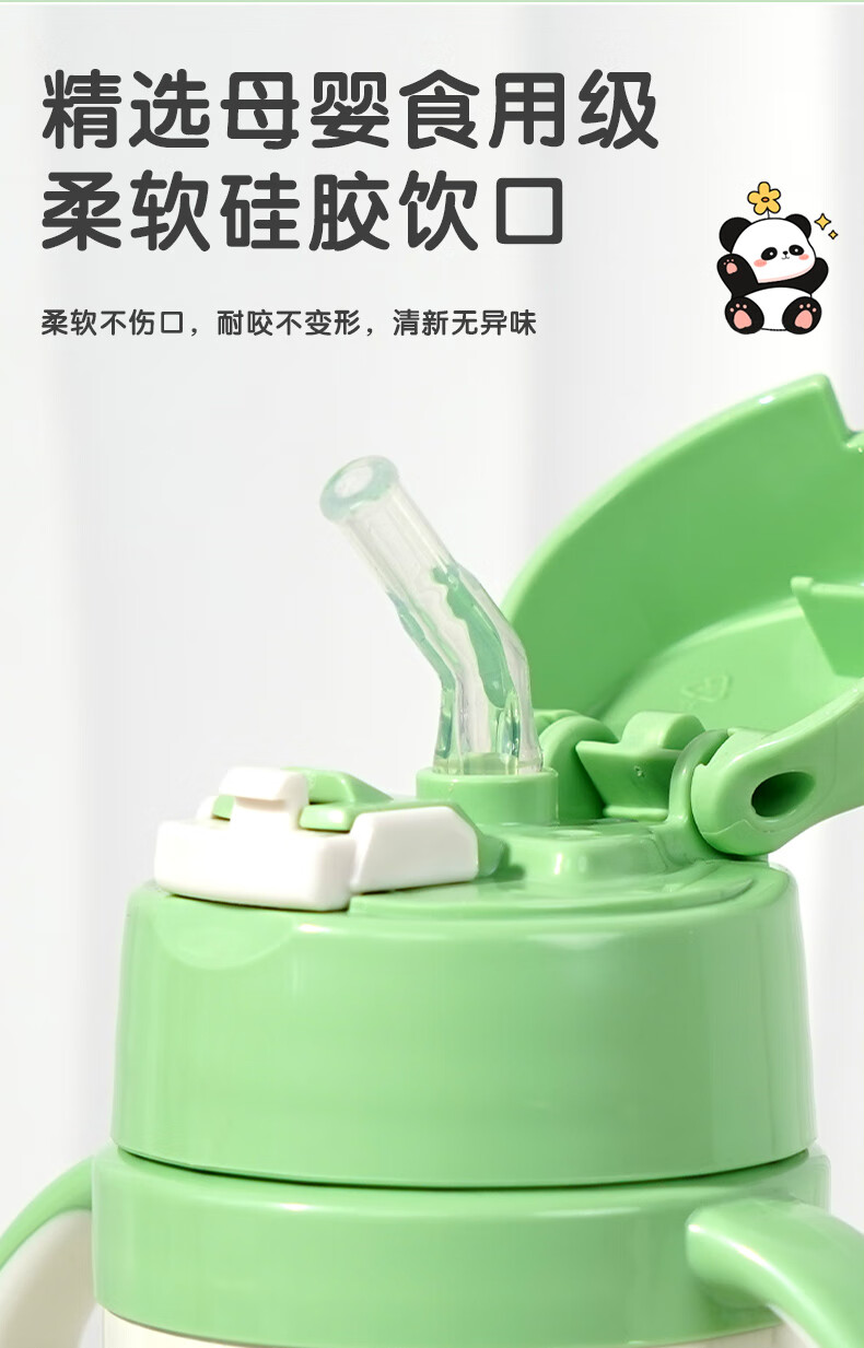 膳魔师儿童水杯316L保温杯带把手婴儿水杯宝宝吸管杯幼儿园学生水杯TCKK 熊猫保温杯280ml(含备用吸管)
