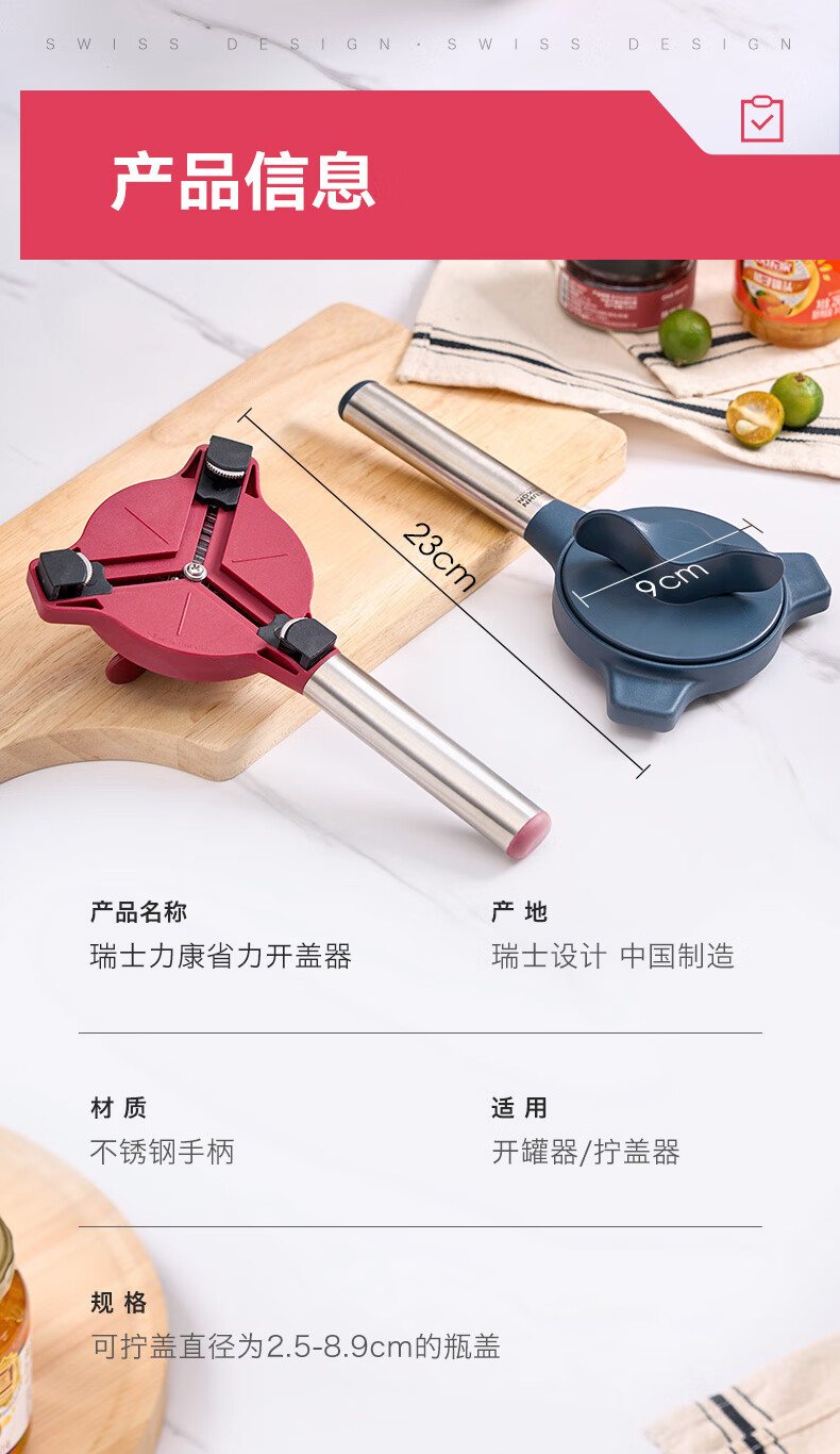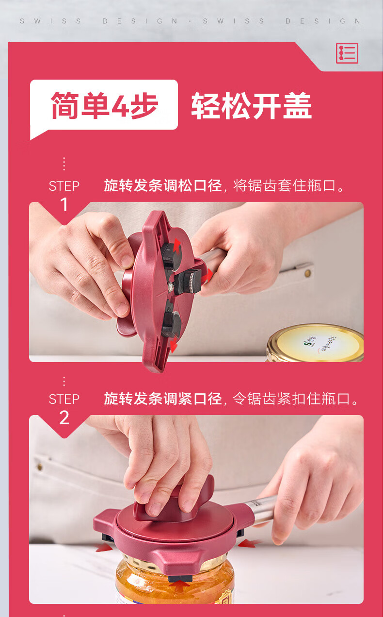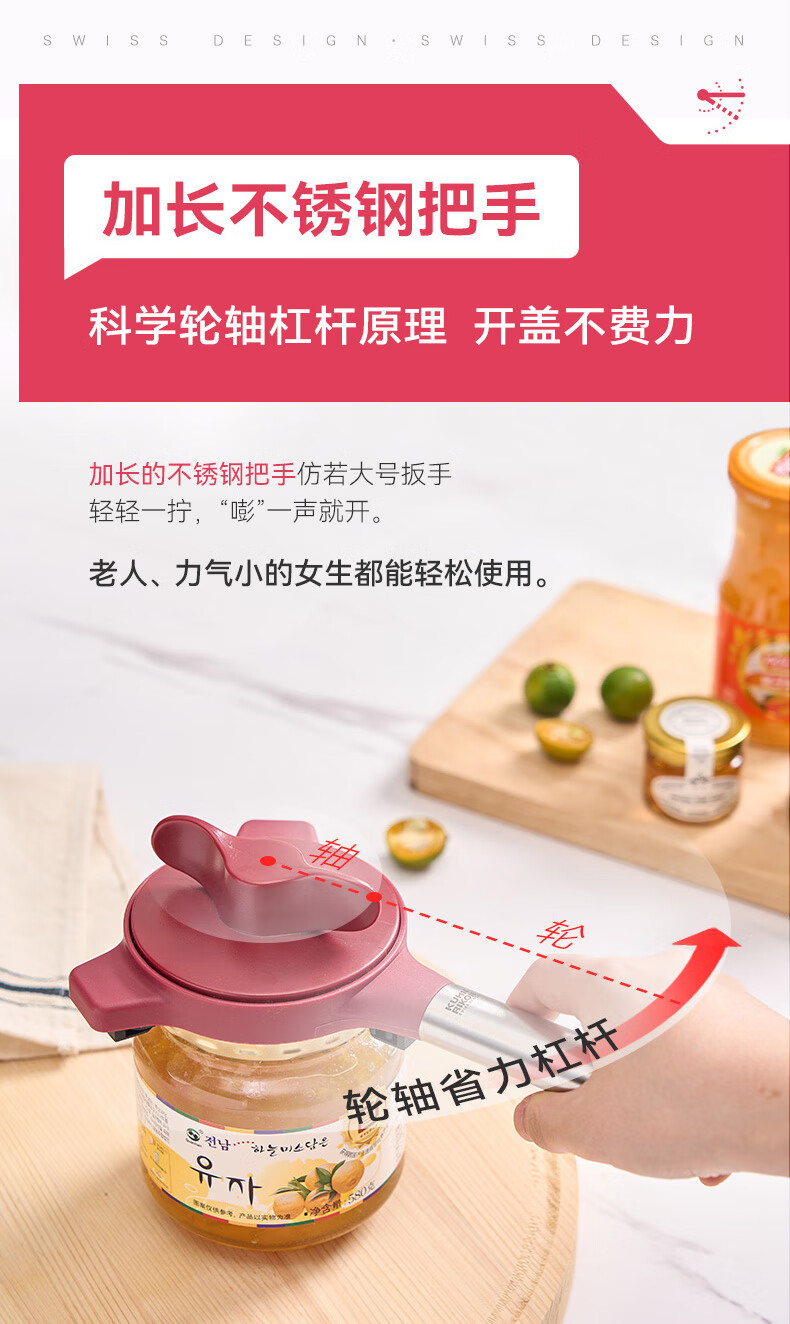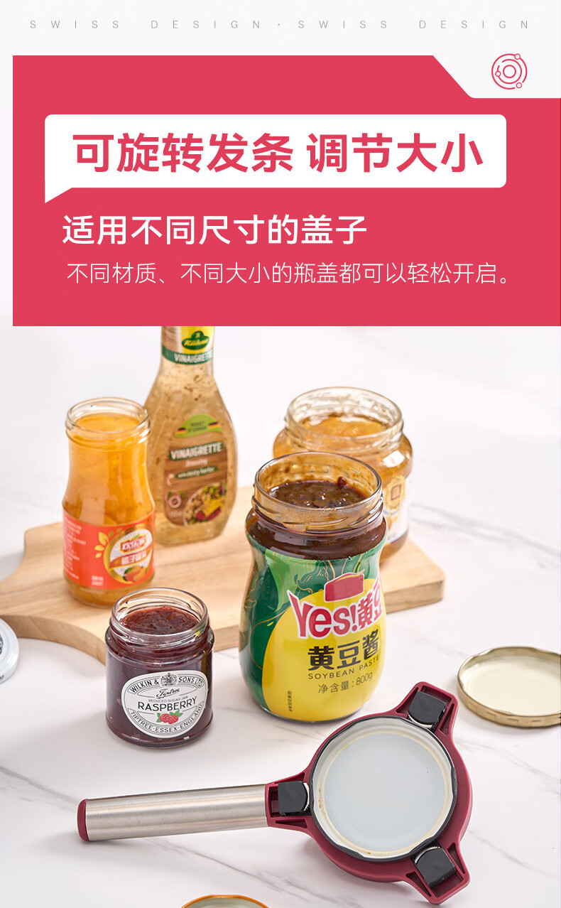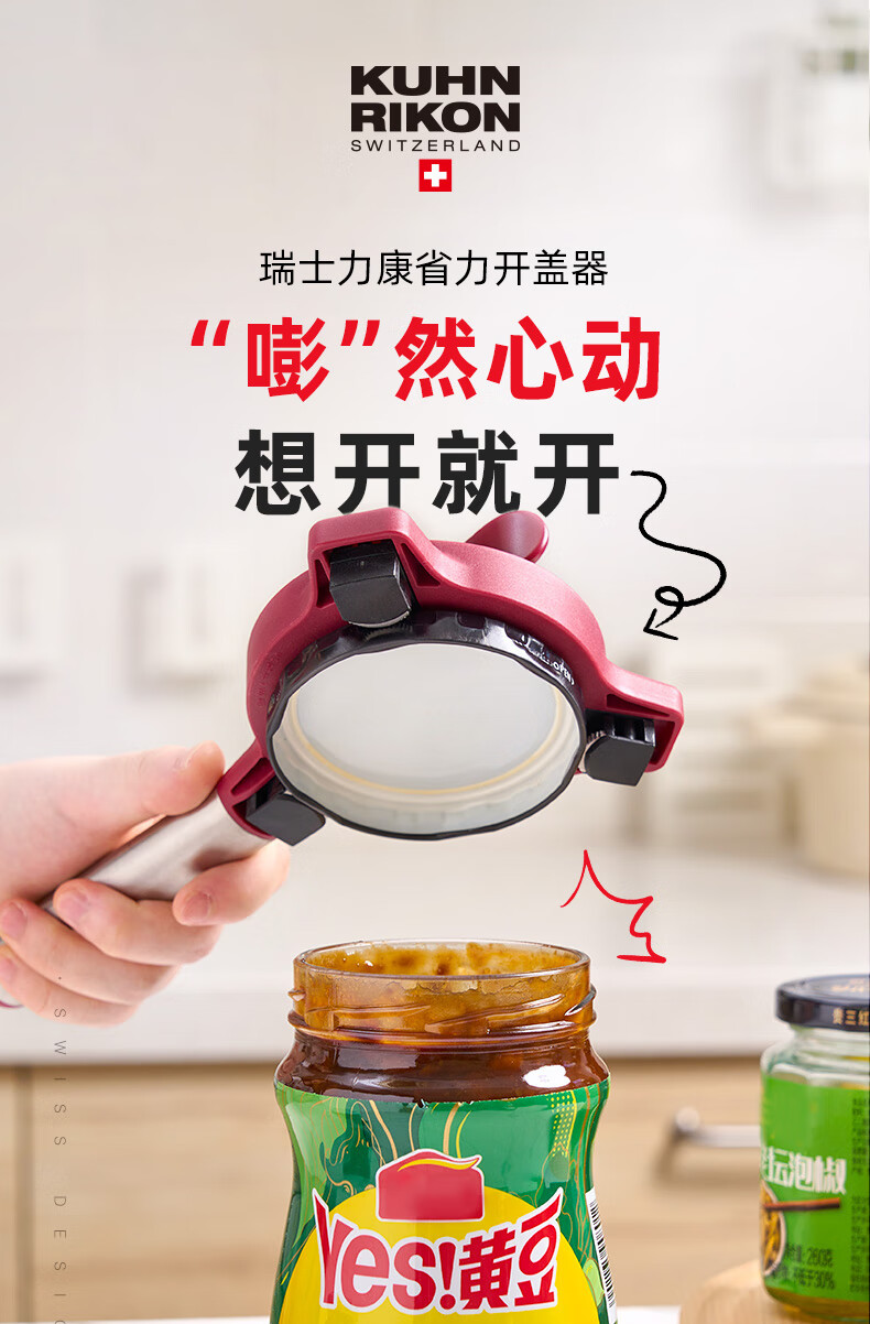 瑞士力康(KUHN RIKON)防滑拧盖器省力开盖器厨房开瓶器开罐头神器拧瓶盖开罐器 五合一开盖器红色 (升级版)