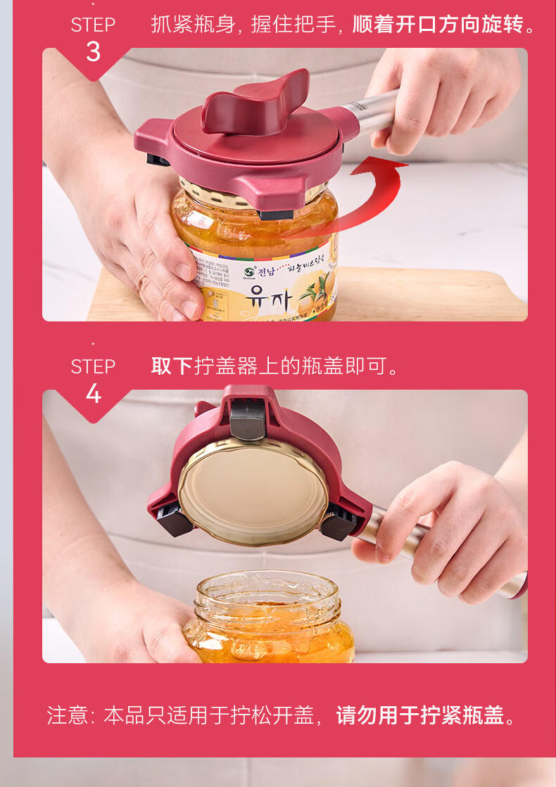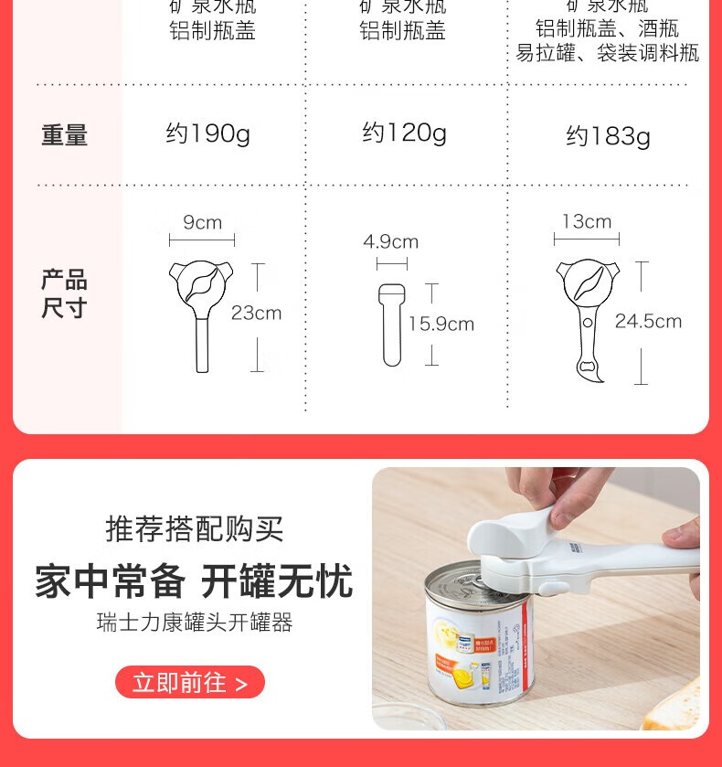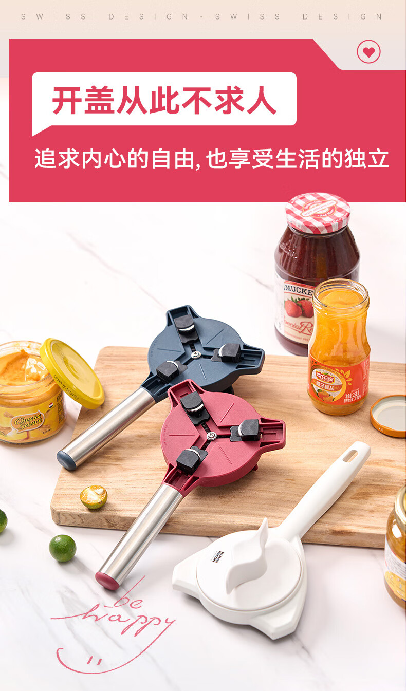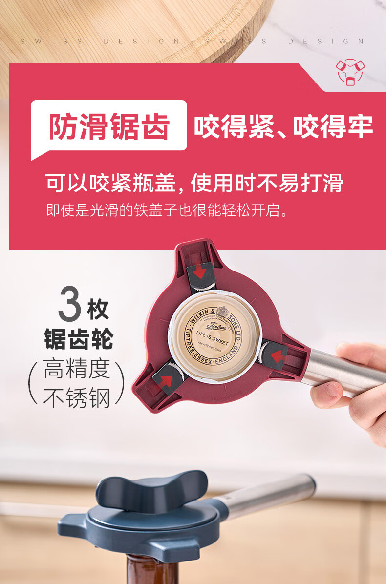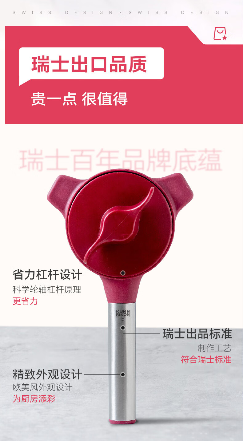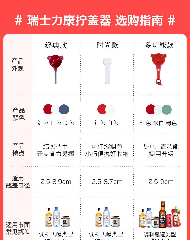 瑞士力康(KUHN RIKON)防滑拧盖器省力开盖器厨房开瓶器开罐头神器拧瓶盖开罐器 五合一开盖器红色 (升级版)