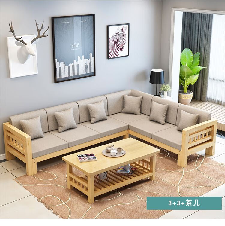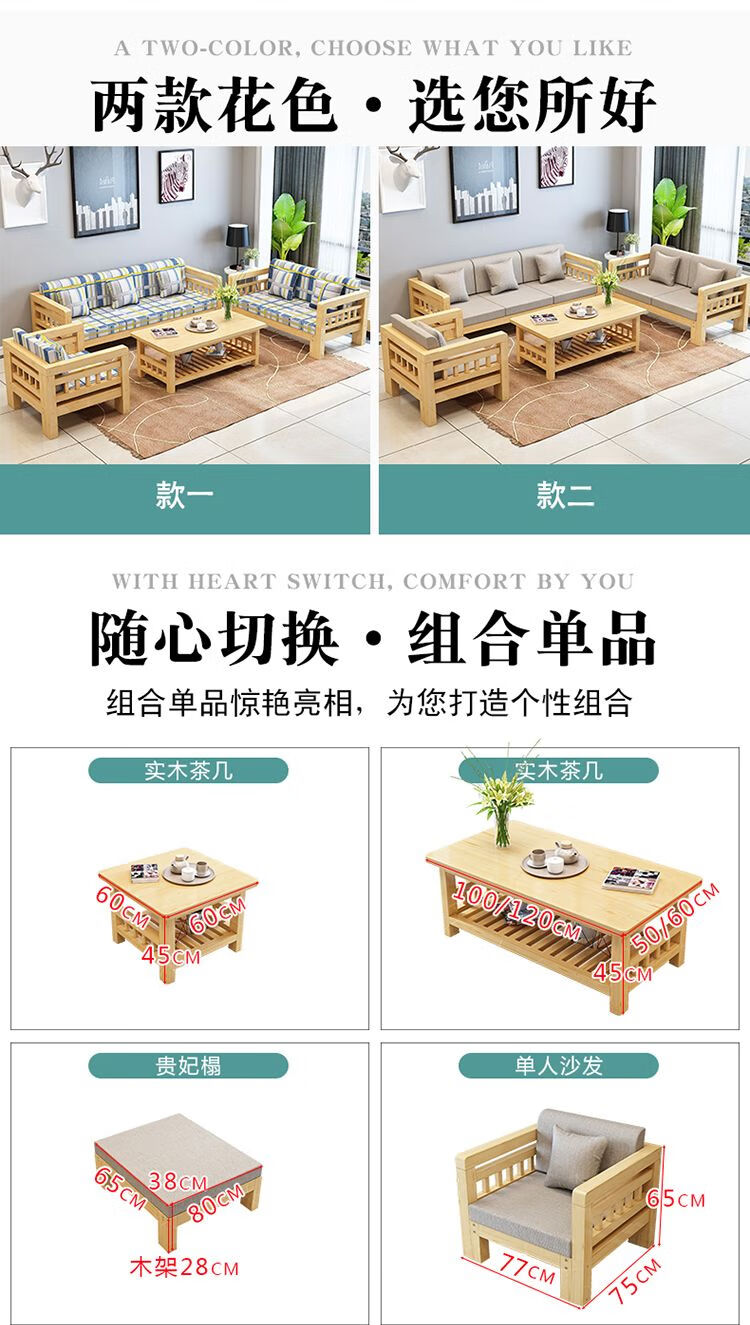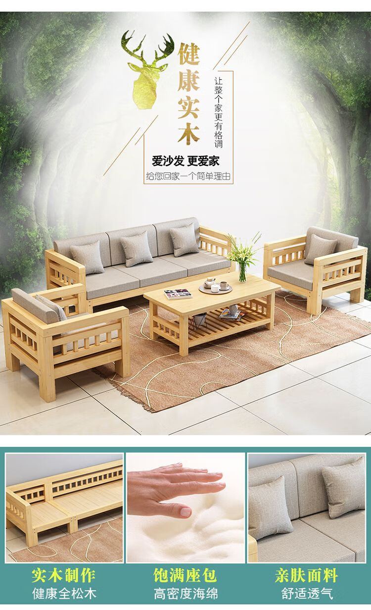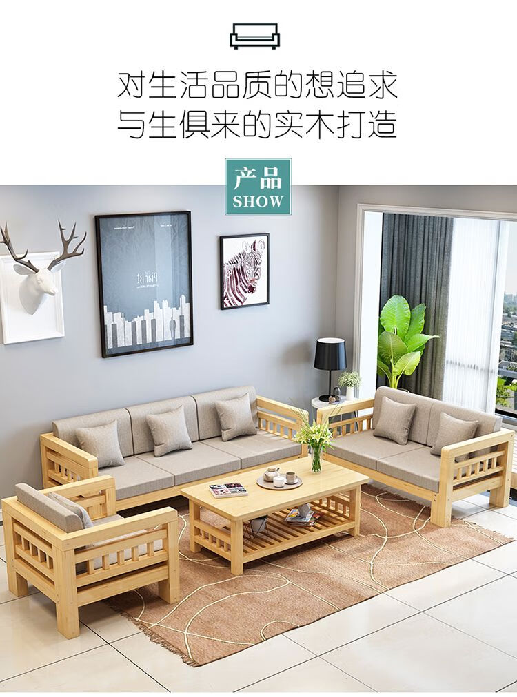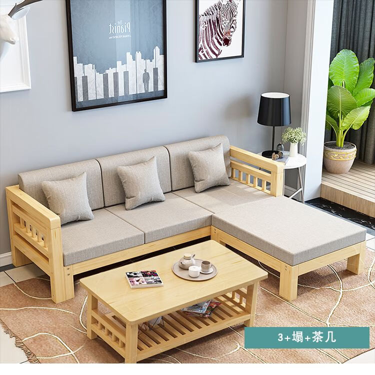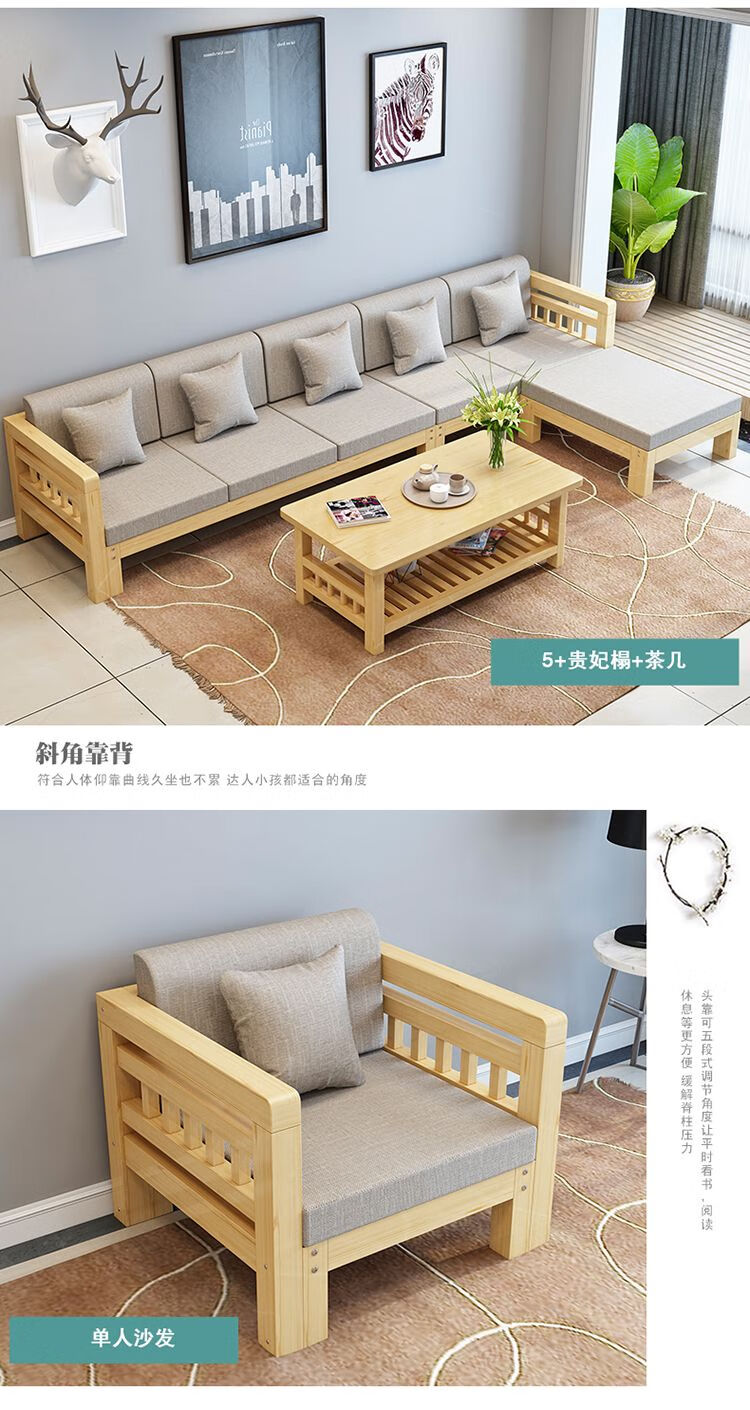 柏帝奇现代简约实木松木沙发茶几组合客厅小户型转角贵妃踏木质单双三人 全实木丨1.2米大茶几丨SYD 顺丰送货入户【送坐垫+靠垫+抱枕】