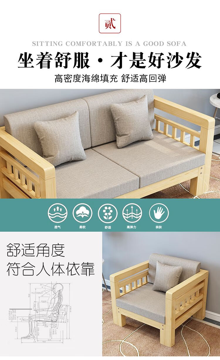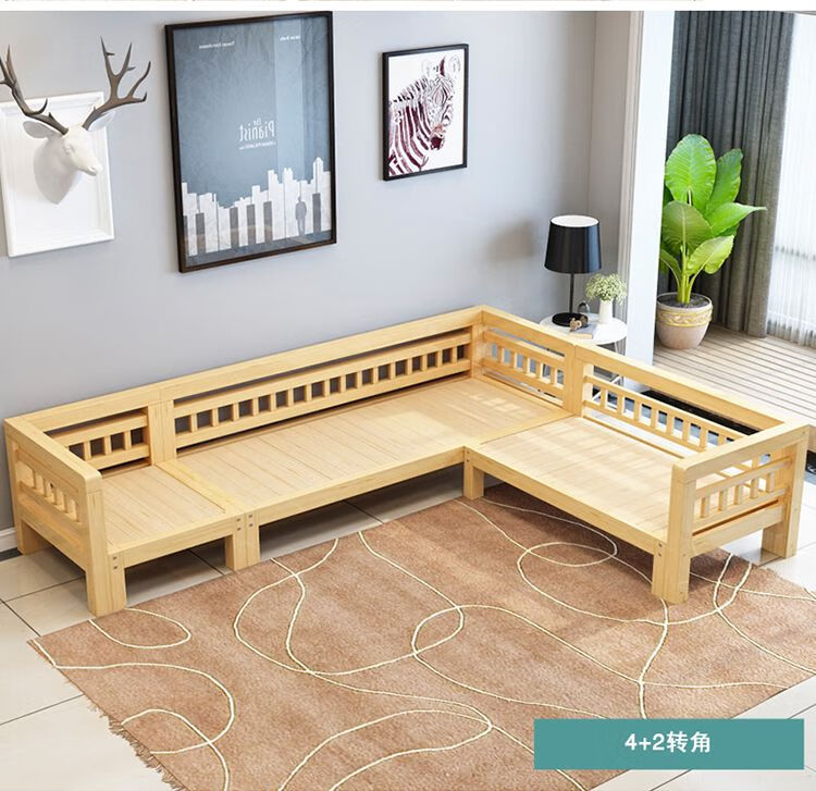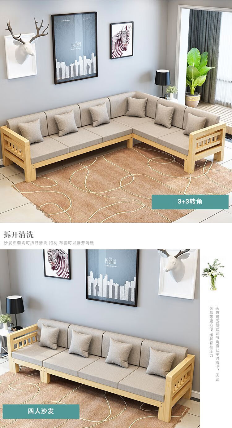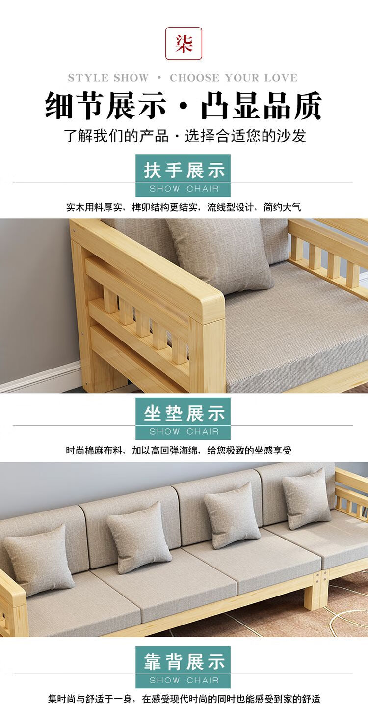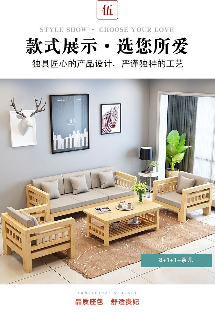 柏帝奇现代简约实木松木沙发茶几组合客厅小户型转角贵妃踏木质单双三人 全实木丨1.2米大茶几丨SYD 顺丰送货入户【送坐垫+靠垫+抱枕】