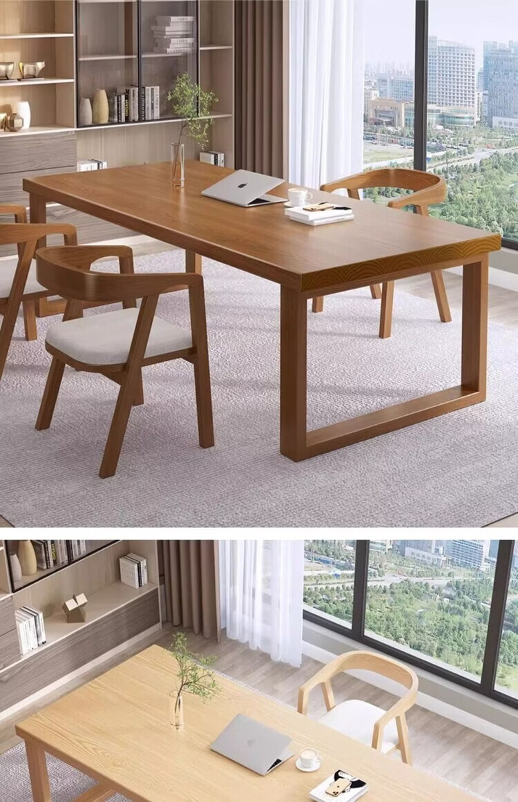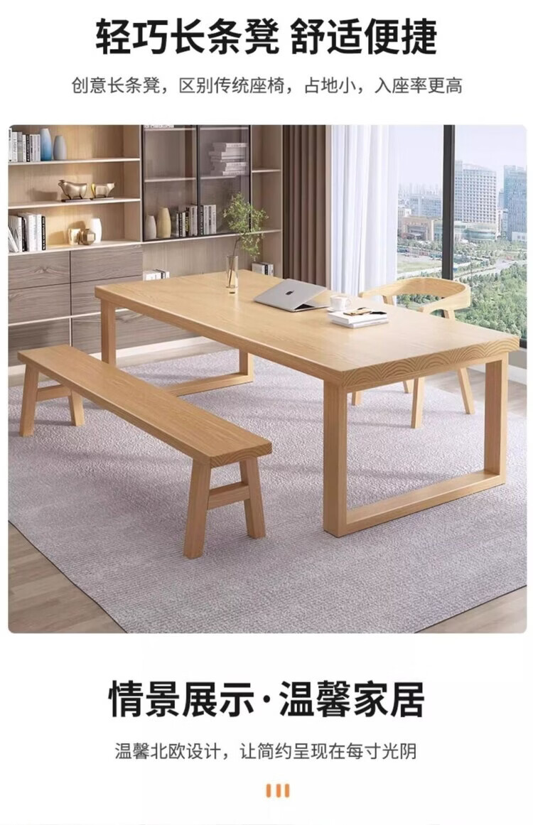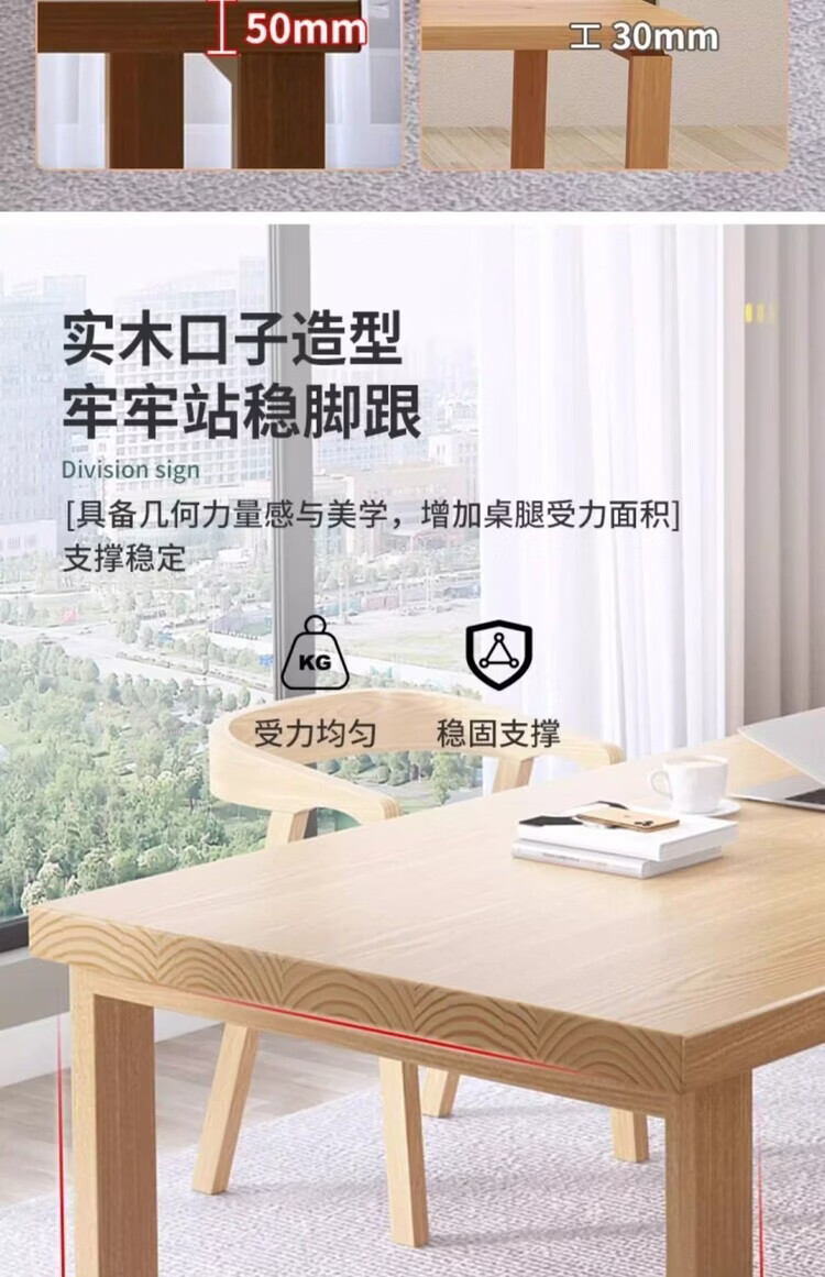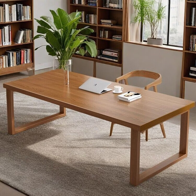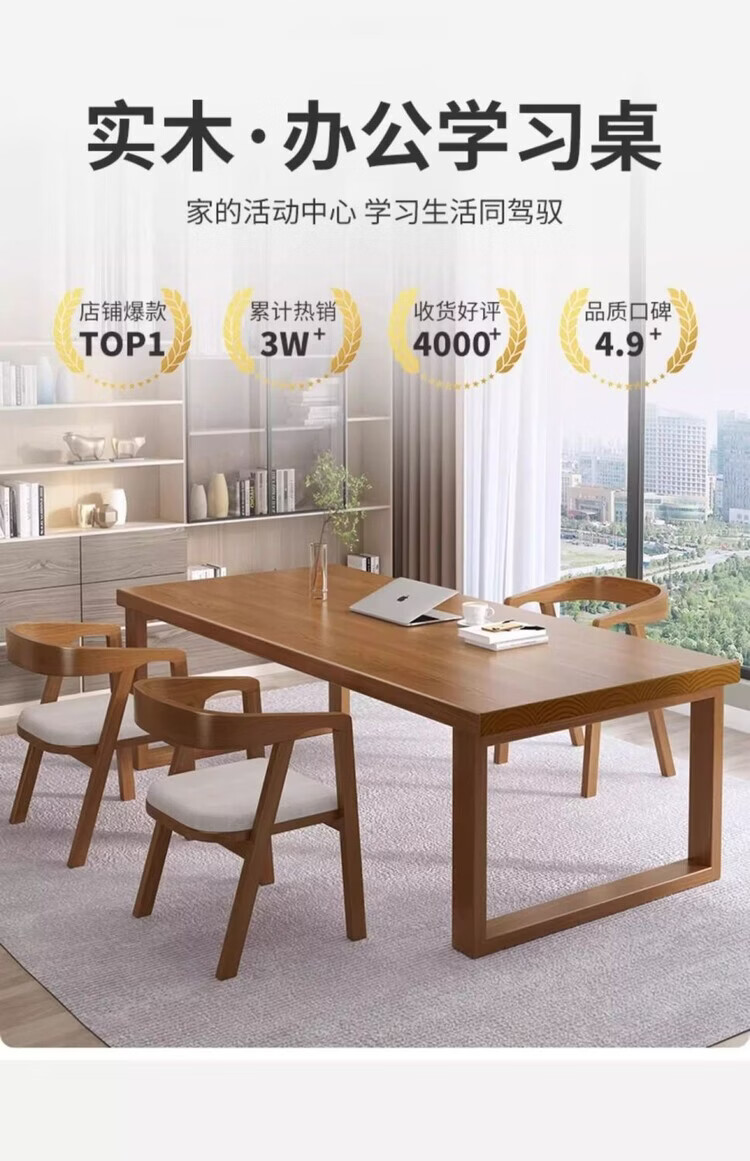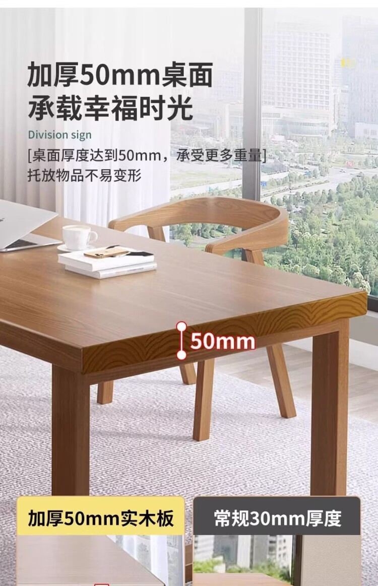 欣慕雅实木电脑桌大书桌家用客厅长条桌双人阅读学习桌实木大板 咖啡色【加厚50mm全实木】 120*60*75【送货上门】
