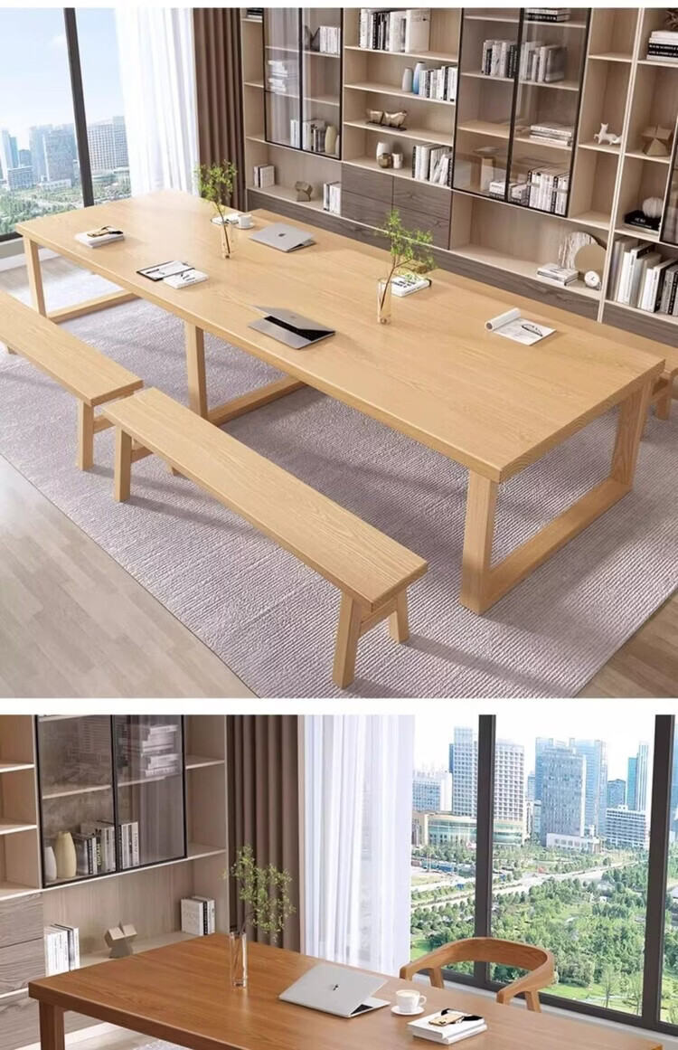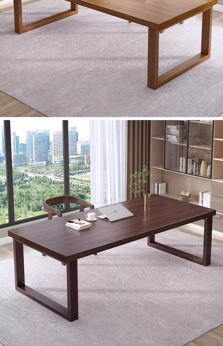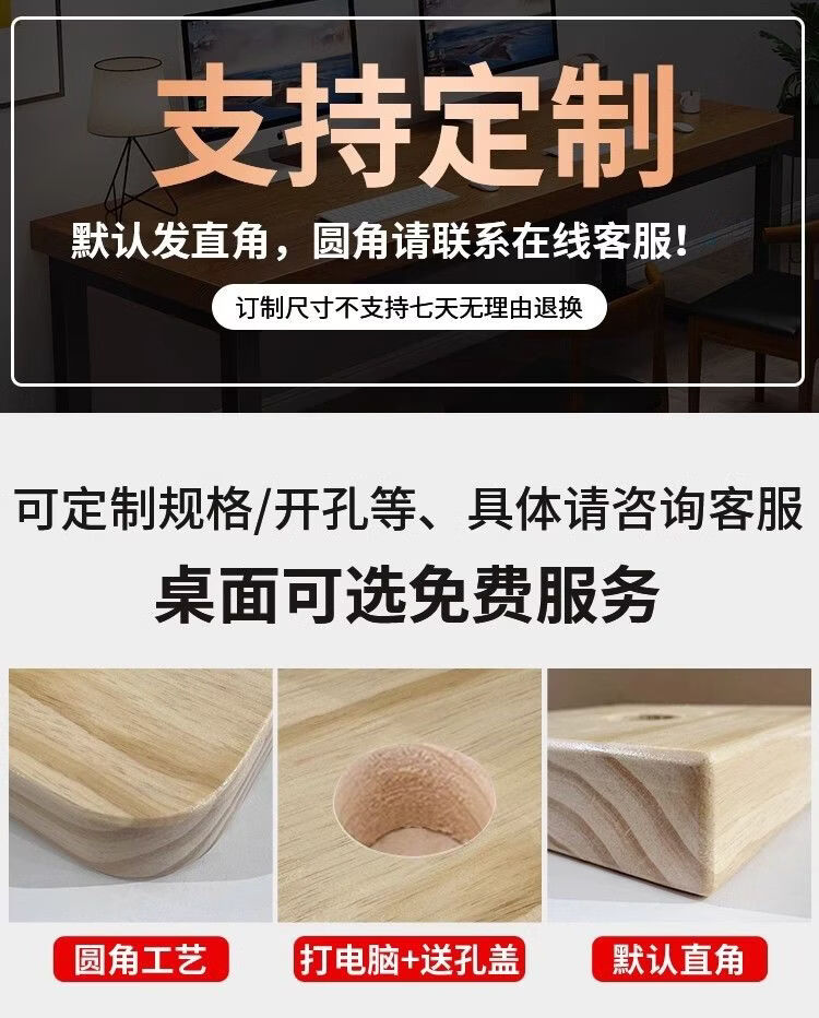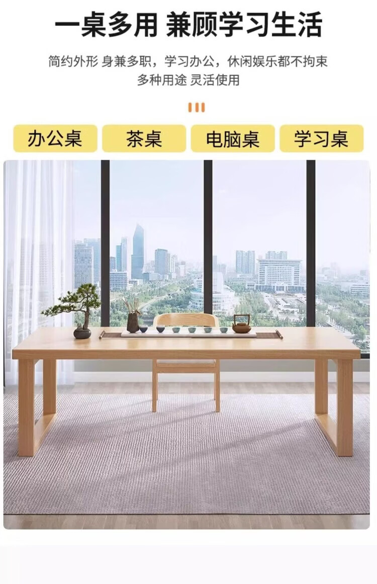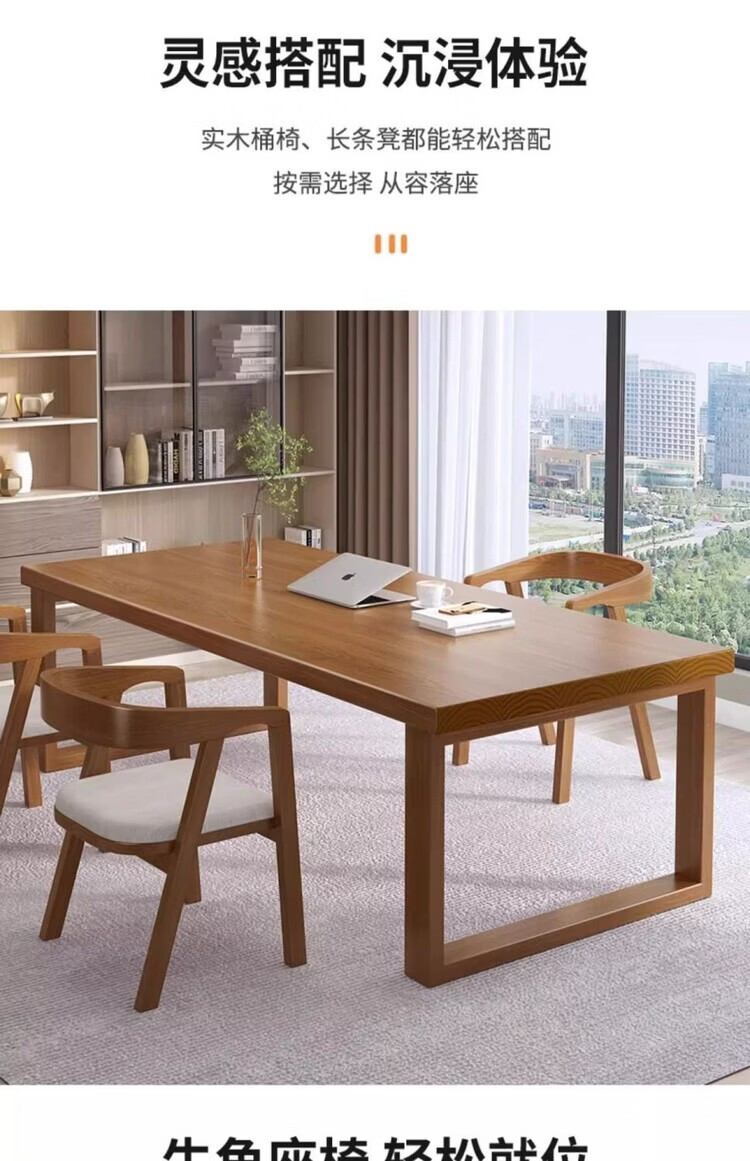 欣慕雅实木电脑桌大书桌家用客厅长条桌双人阅读学习桌实木大板 咖啡色【加厚50mm全实木】 120*60*75【送货上门】
