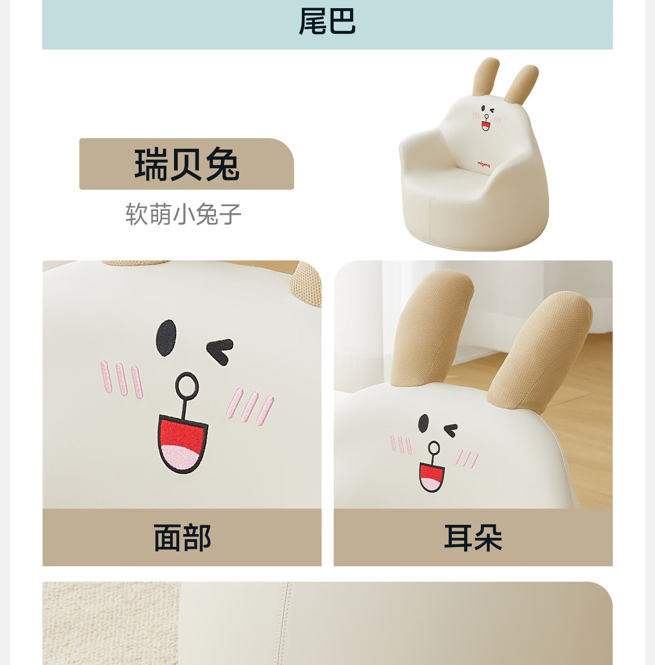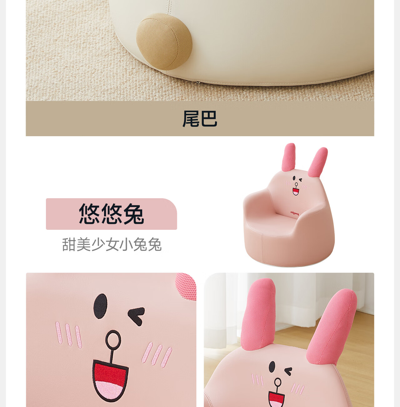 曼龙 儿童沙发婴儿卡通女孩男孩宝宝懒人座椅小沙发学坐凳 (悠悠兔)