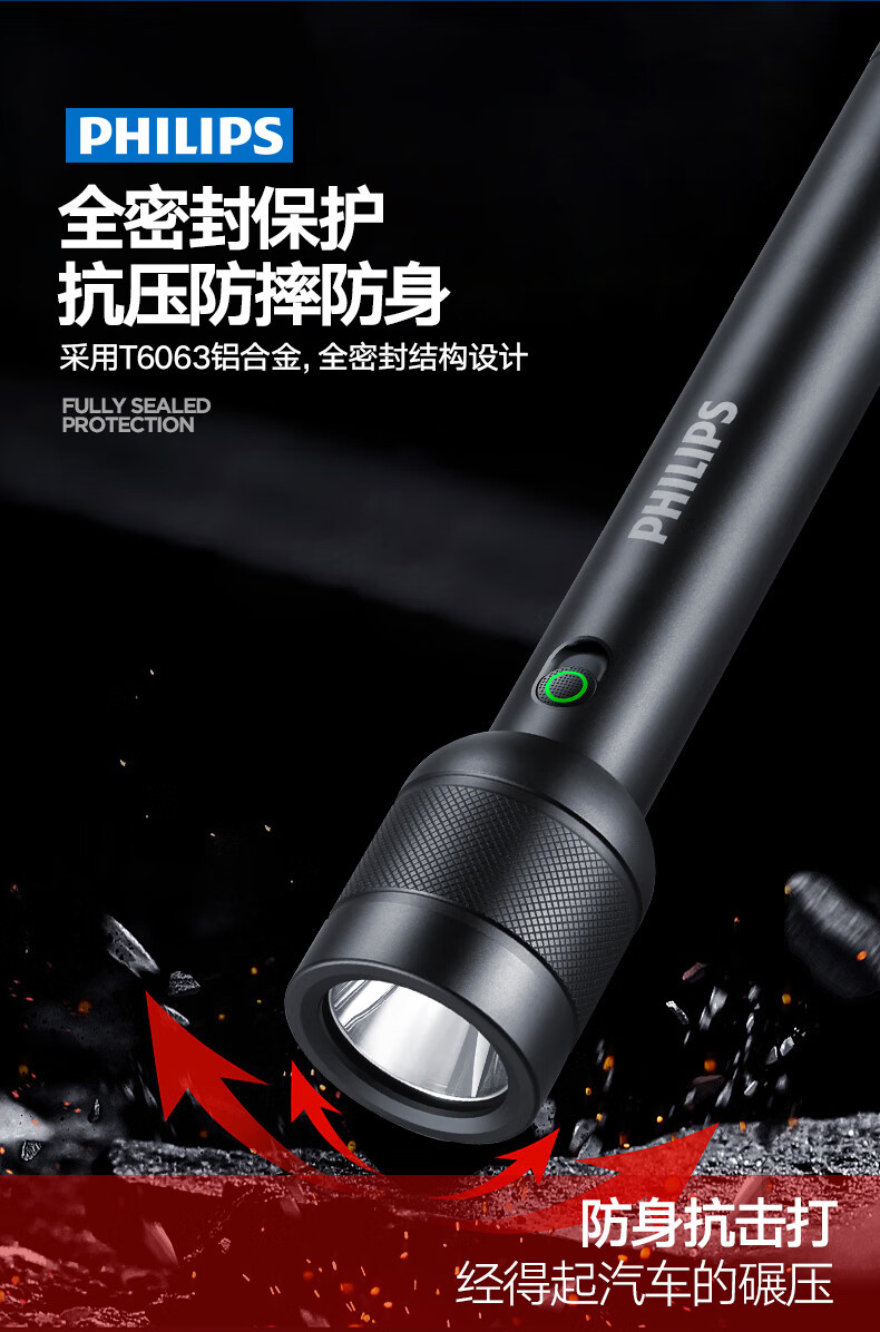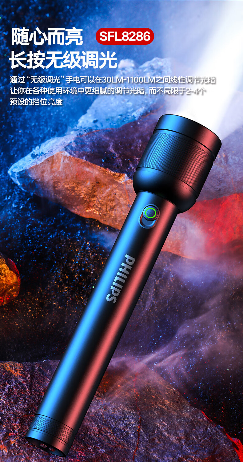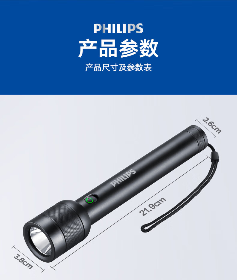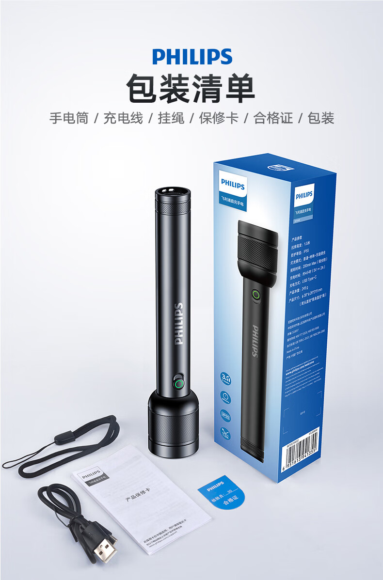 飞利浦(PHILIPS)手电筒强光远射长续航亮手电露营充电便携家用户外应急灯SFL8286