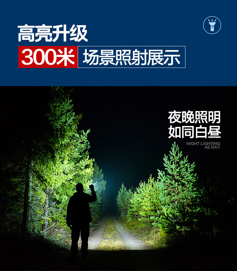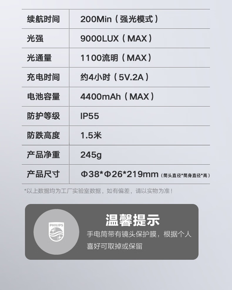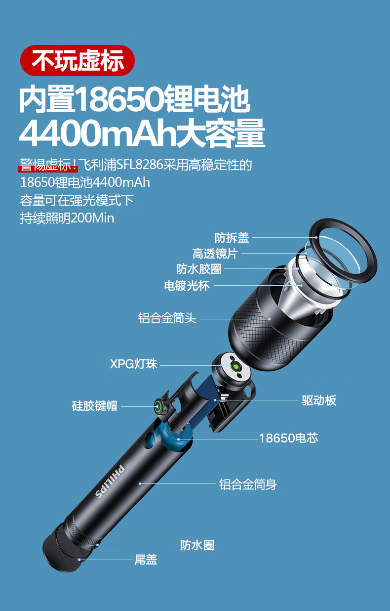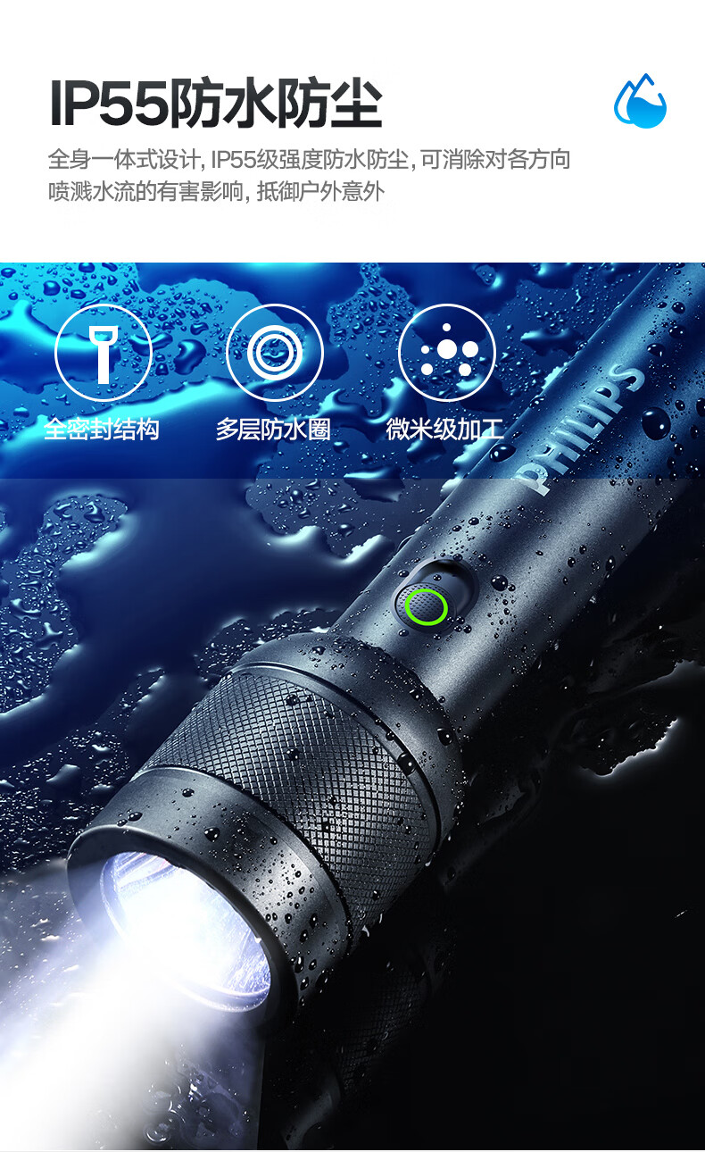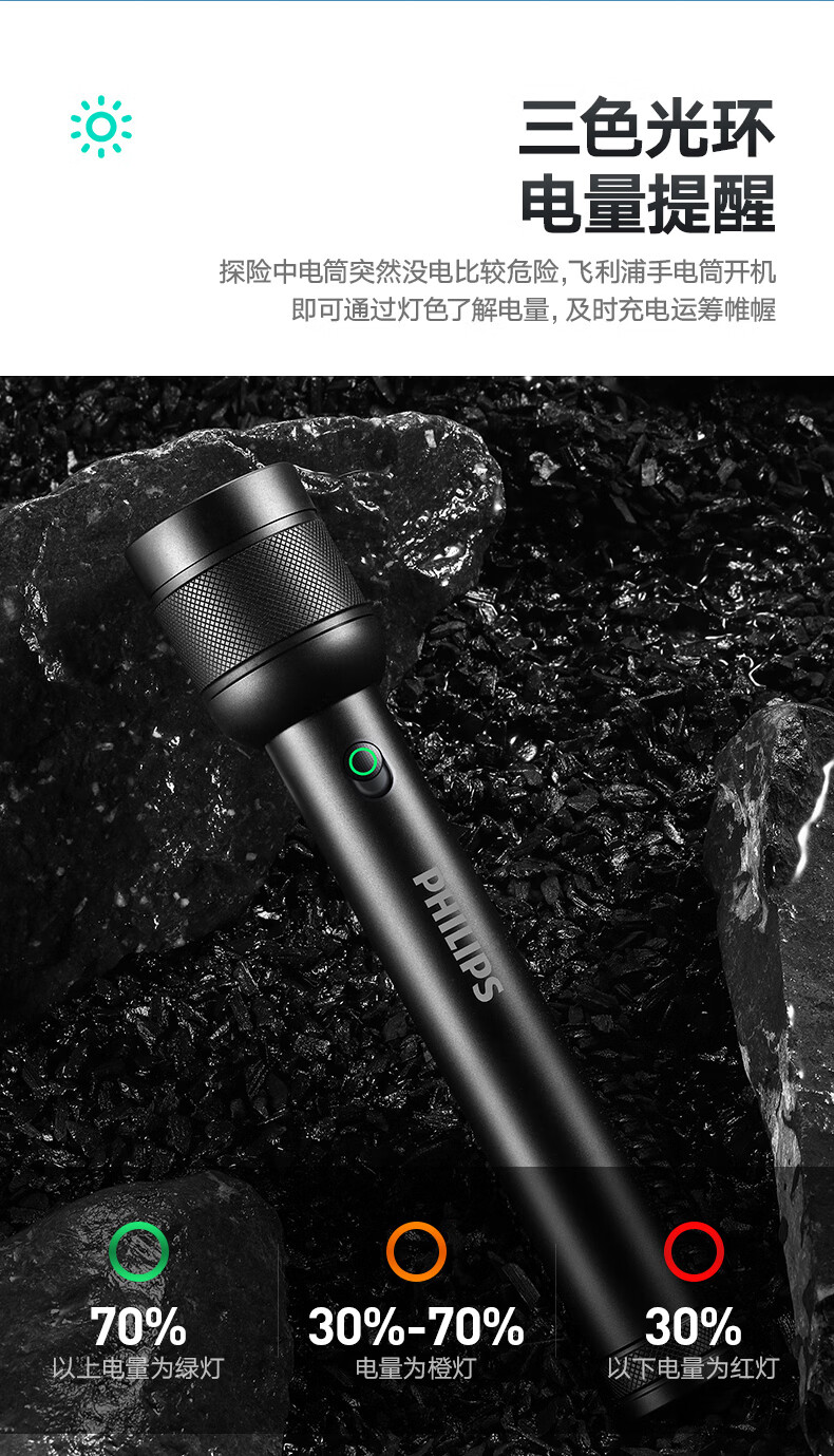 飞利浦(PHILIPS)手电筒强光远射长续航亮手电露营充电便携家用户外应急灯SFL8286
