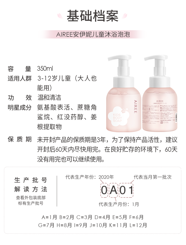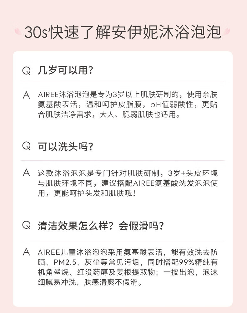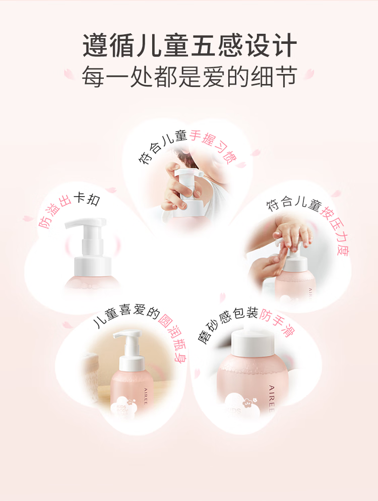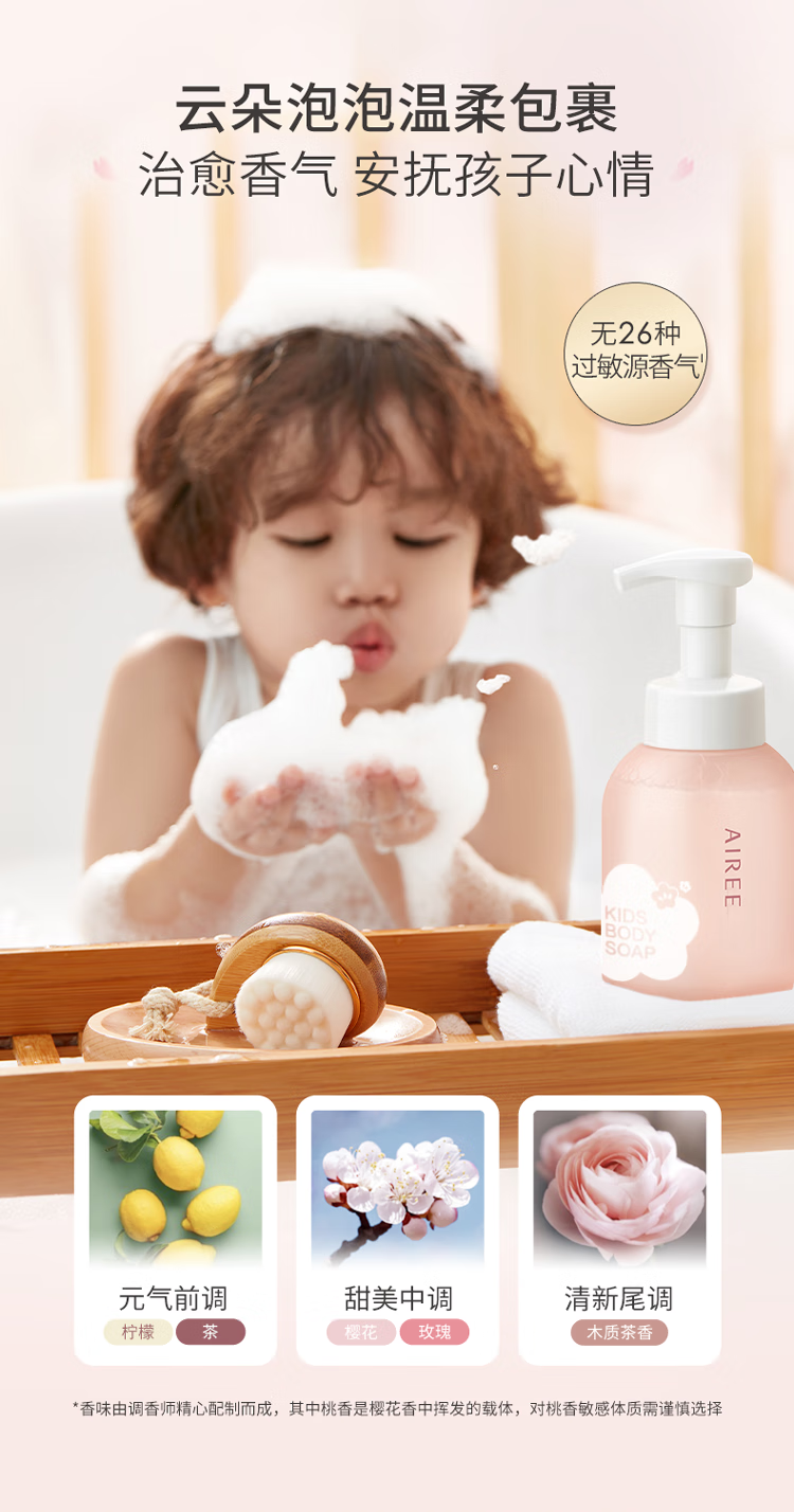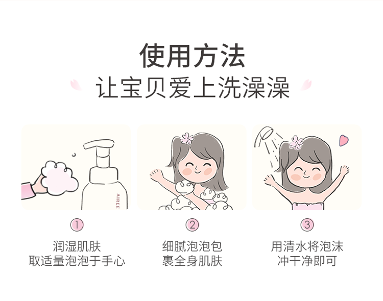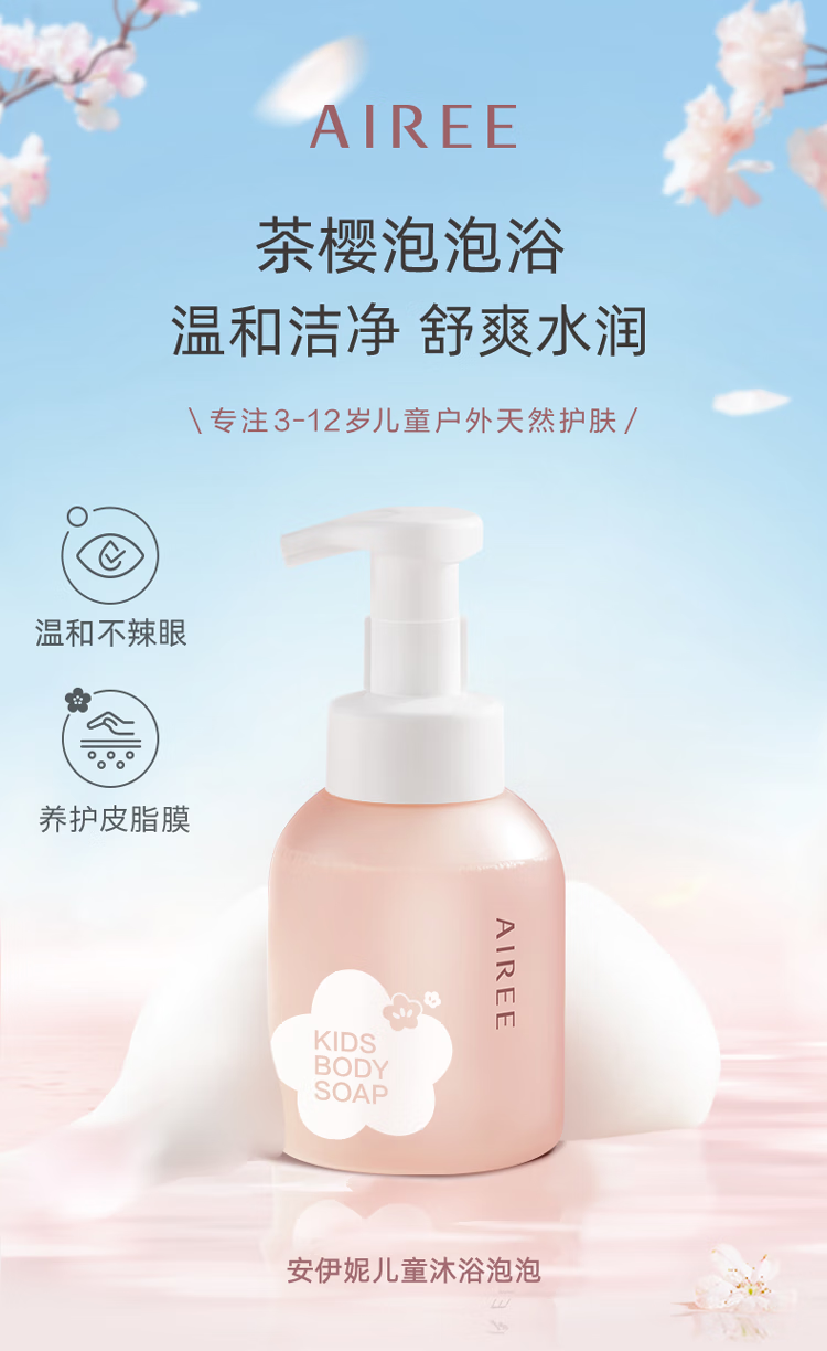 安伊妮(AIREE)儿童沐浴露汗渍防晒一冲净敏感肌洗后保湿不干痒 【清爽洁净】沐浴泡泡-350ml