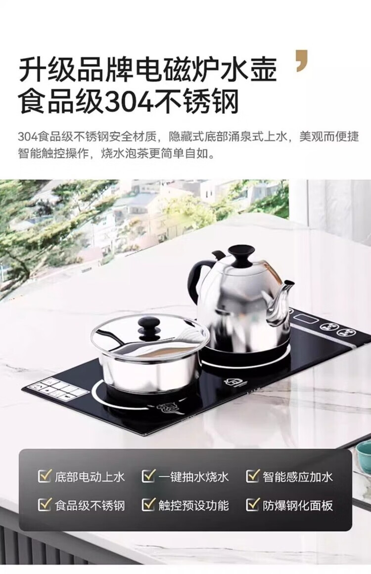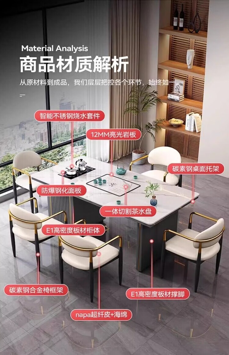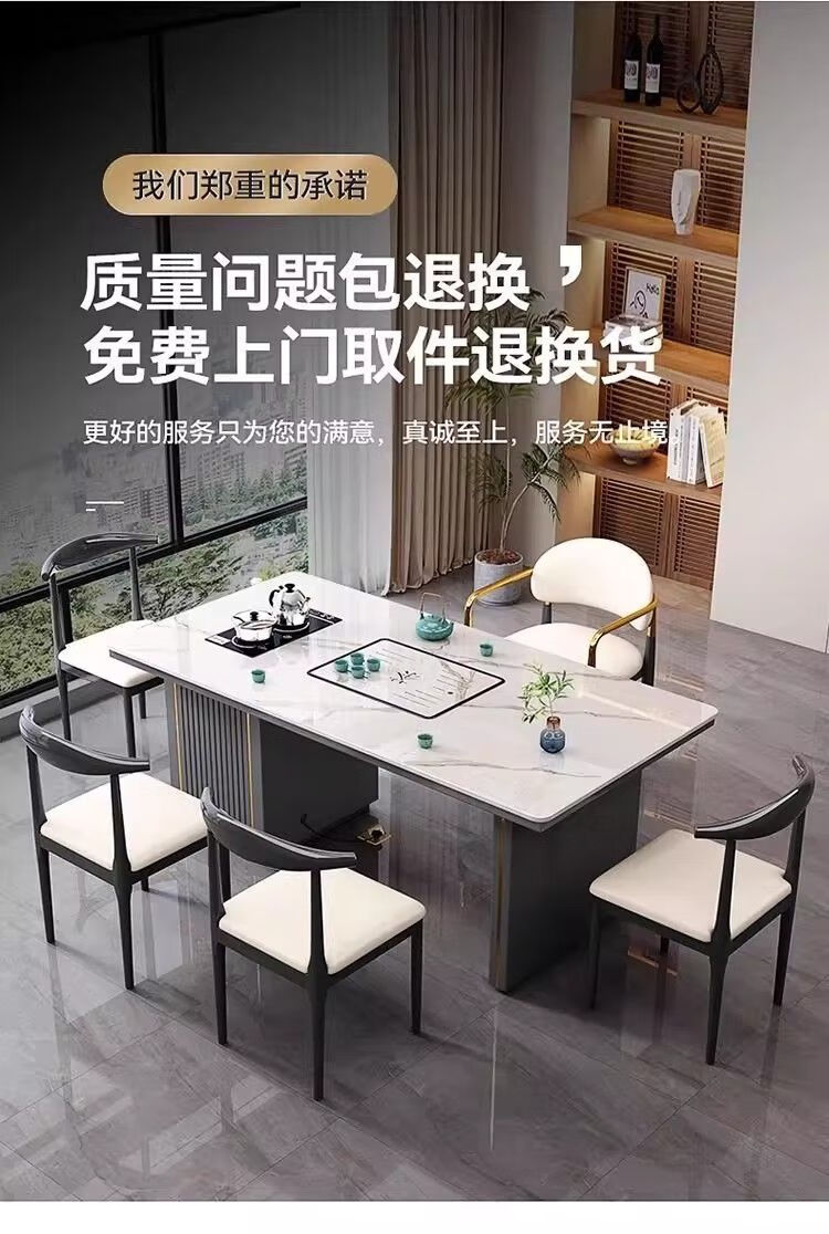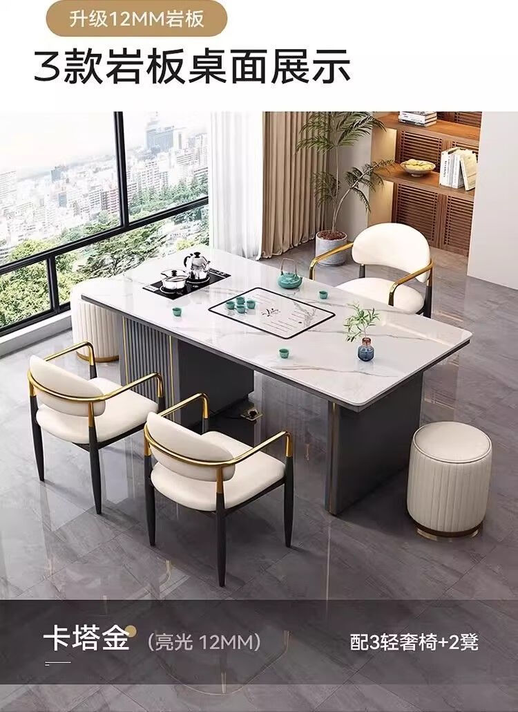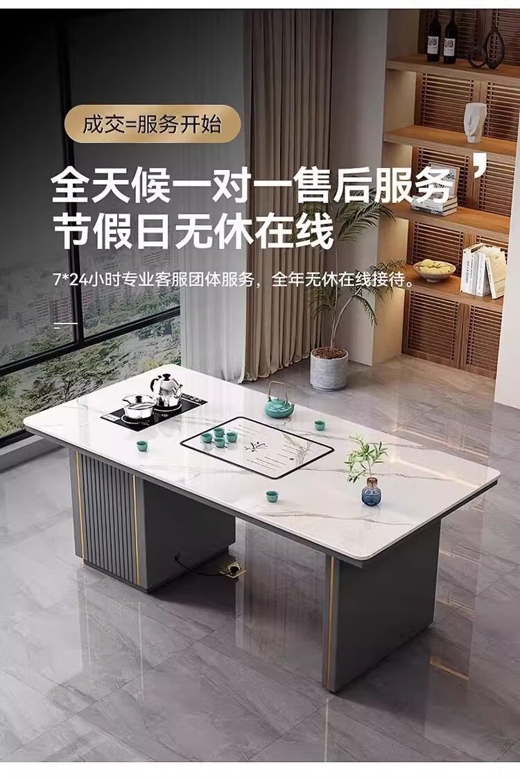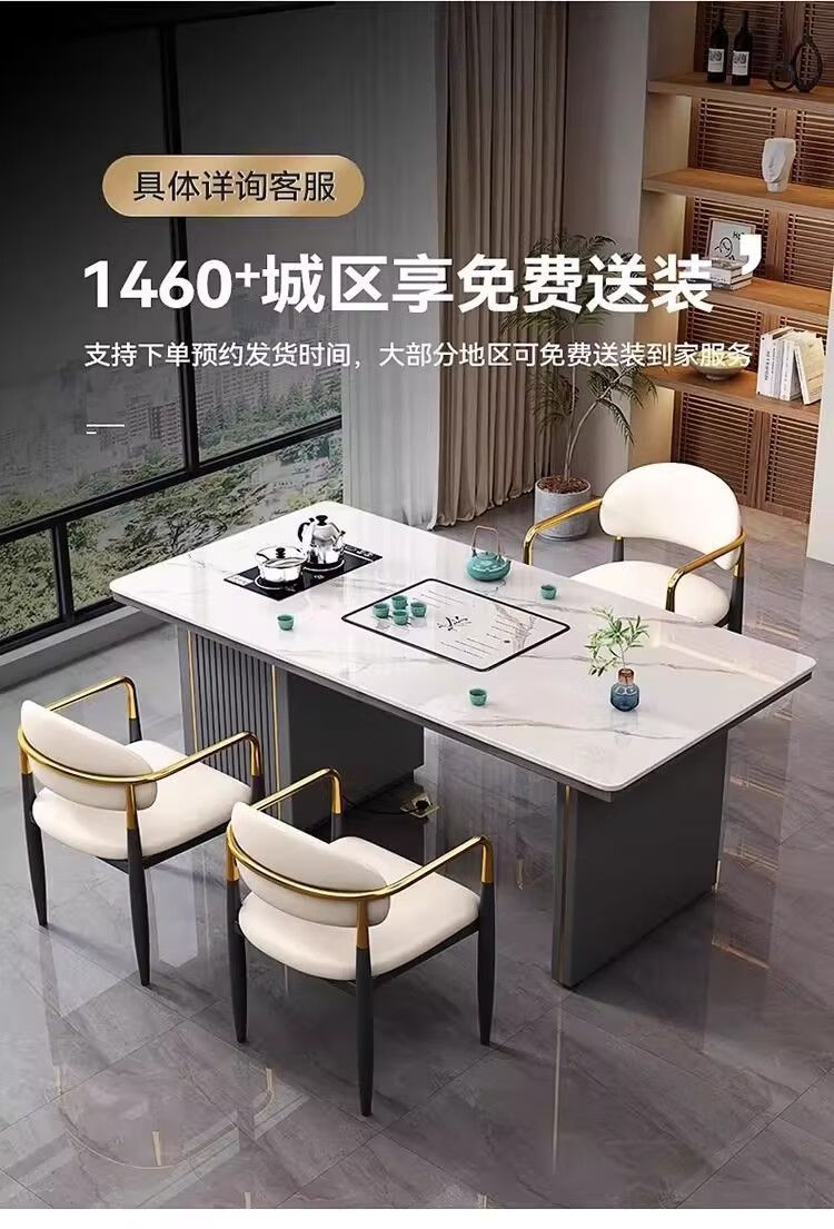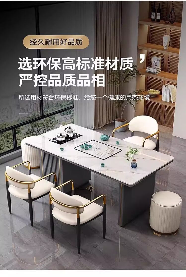 欣慕雅岩板茶桌一体一整套轻奢现代简约家用办公室多功能茶台椅泡茶阳台 1.2米茶桌【送智能电磁炉】