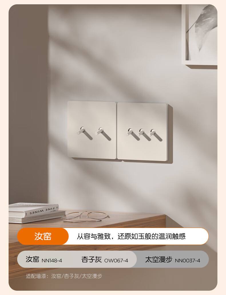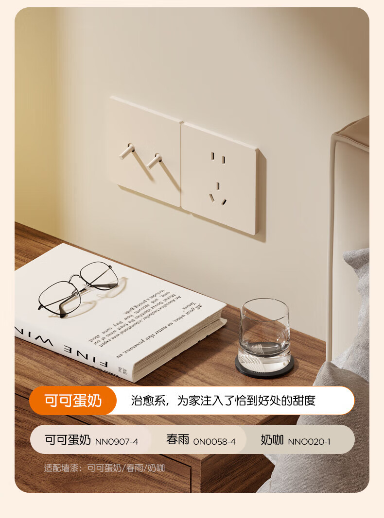 国际电工86型暗装超薄拨杆开关插座面板意式奶油白色哑光复古极简侘寂风 二开(单/双控通用)【白杆】