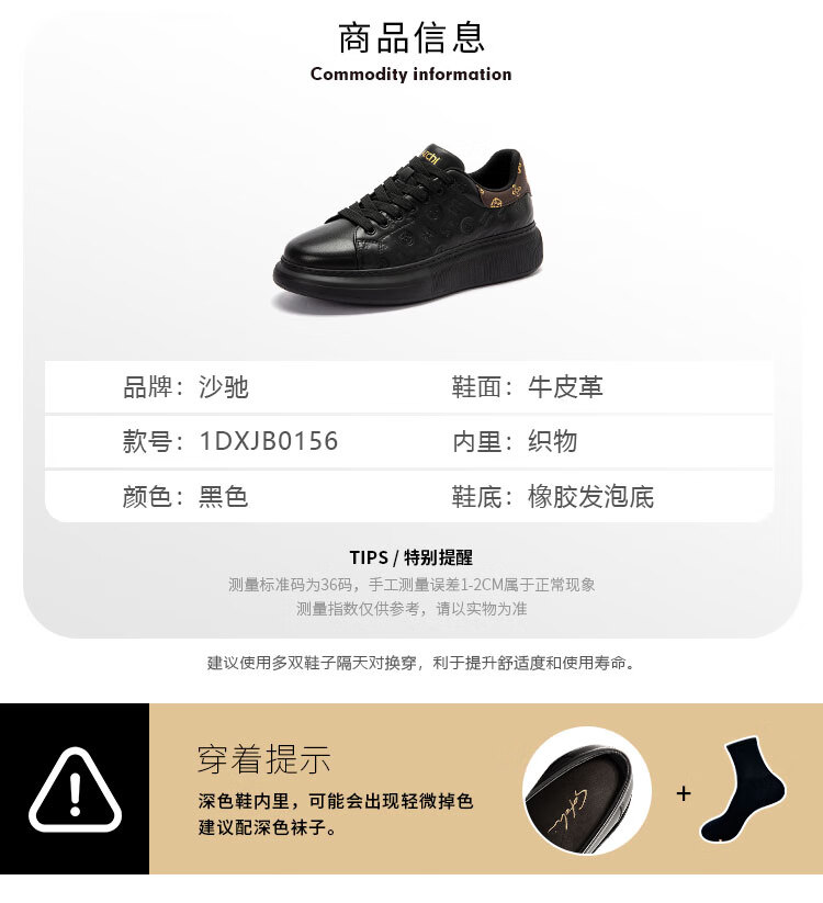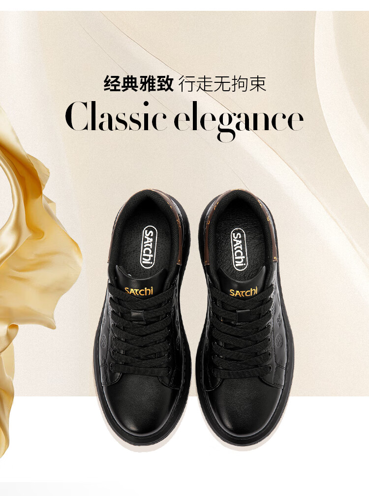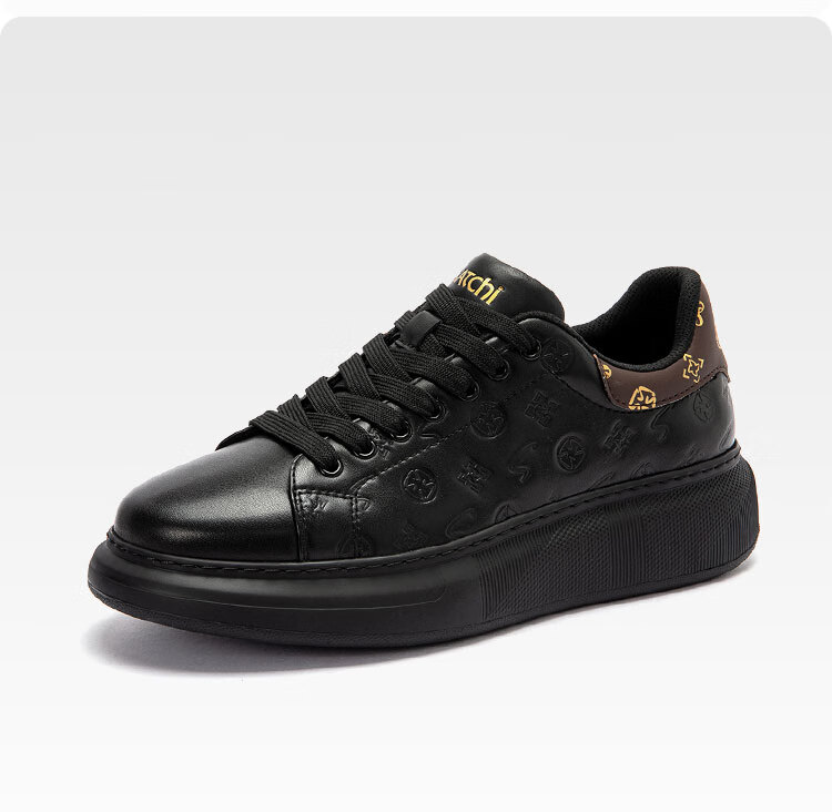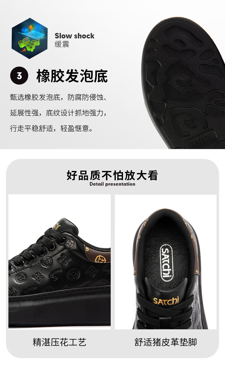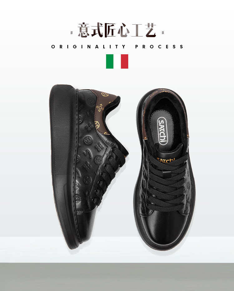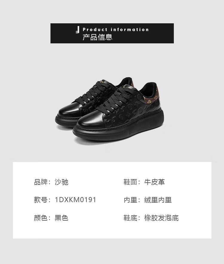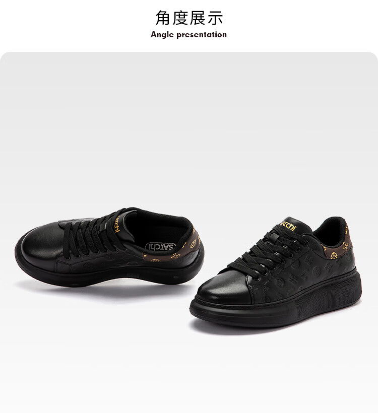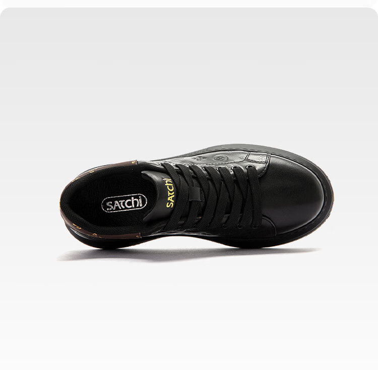 沙驰(SATCHI)男鞋牛皮厚底增高板鞋潮流百搭休闲鞋麦昆鞋小白鞋 黑色(1DXJB0156) 40 欧码(选小一码)