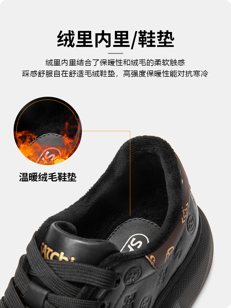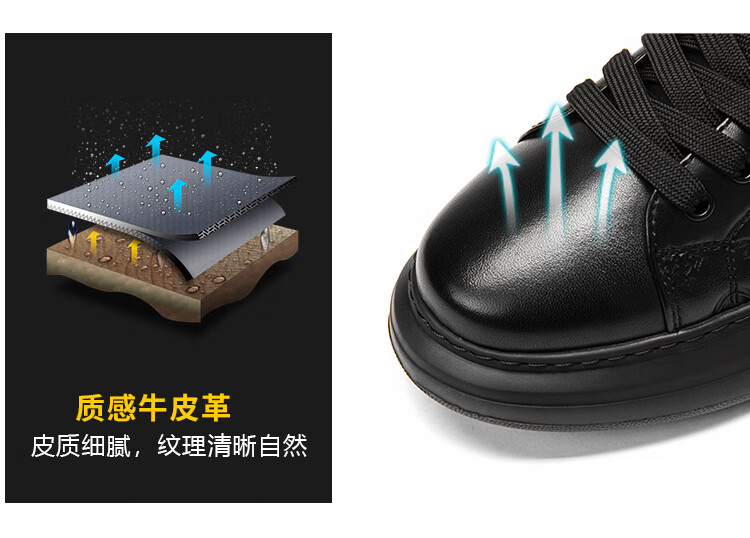哈森(Harson)牛皮革男鞋秋冬运动皮鞋厚底商务休闲鞋公务通勤健步鞋2025年新款 黑色加绒(6148) 43