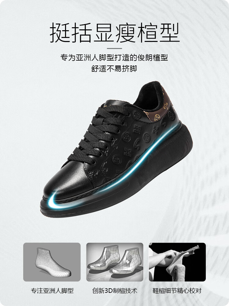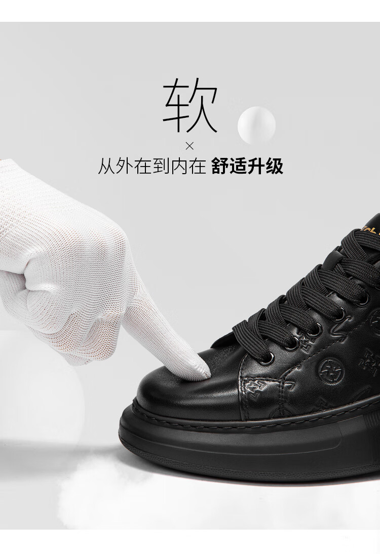 哈森(Harson)牛皮革男鞋秋冬运动皮鞋厚底商务休闲鞋公务通勤健步鞋2025年新款 黑色 41