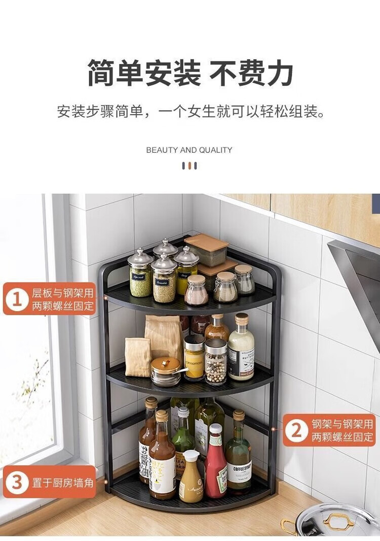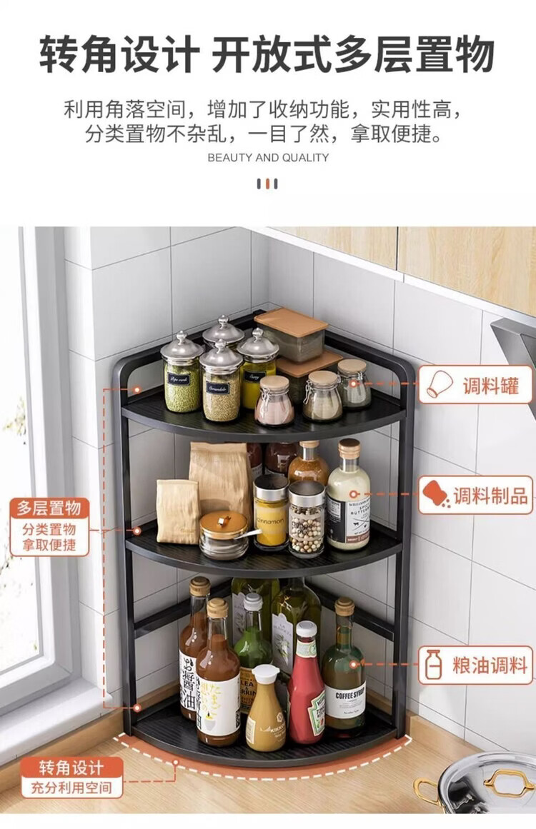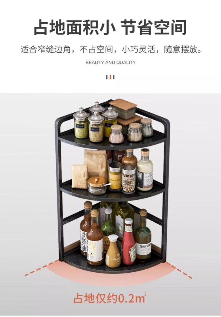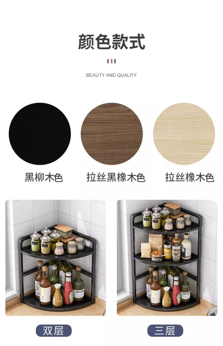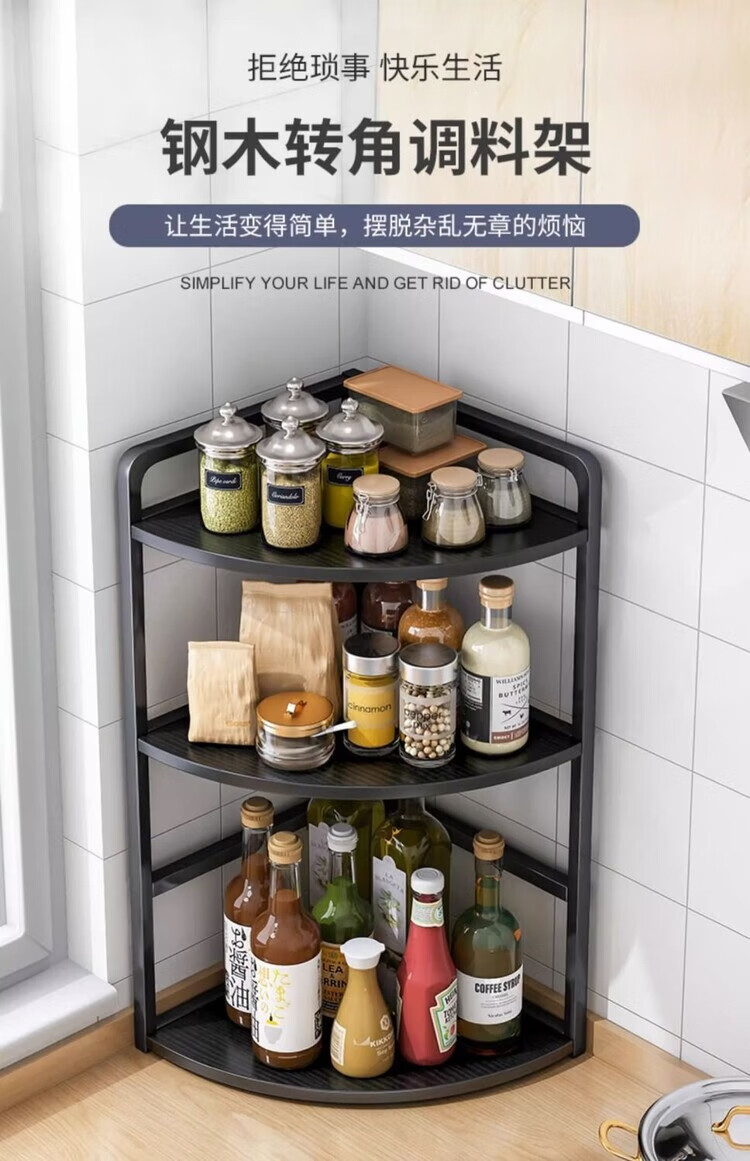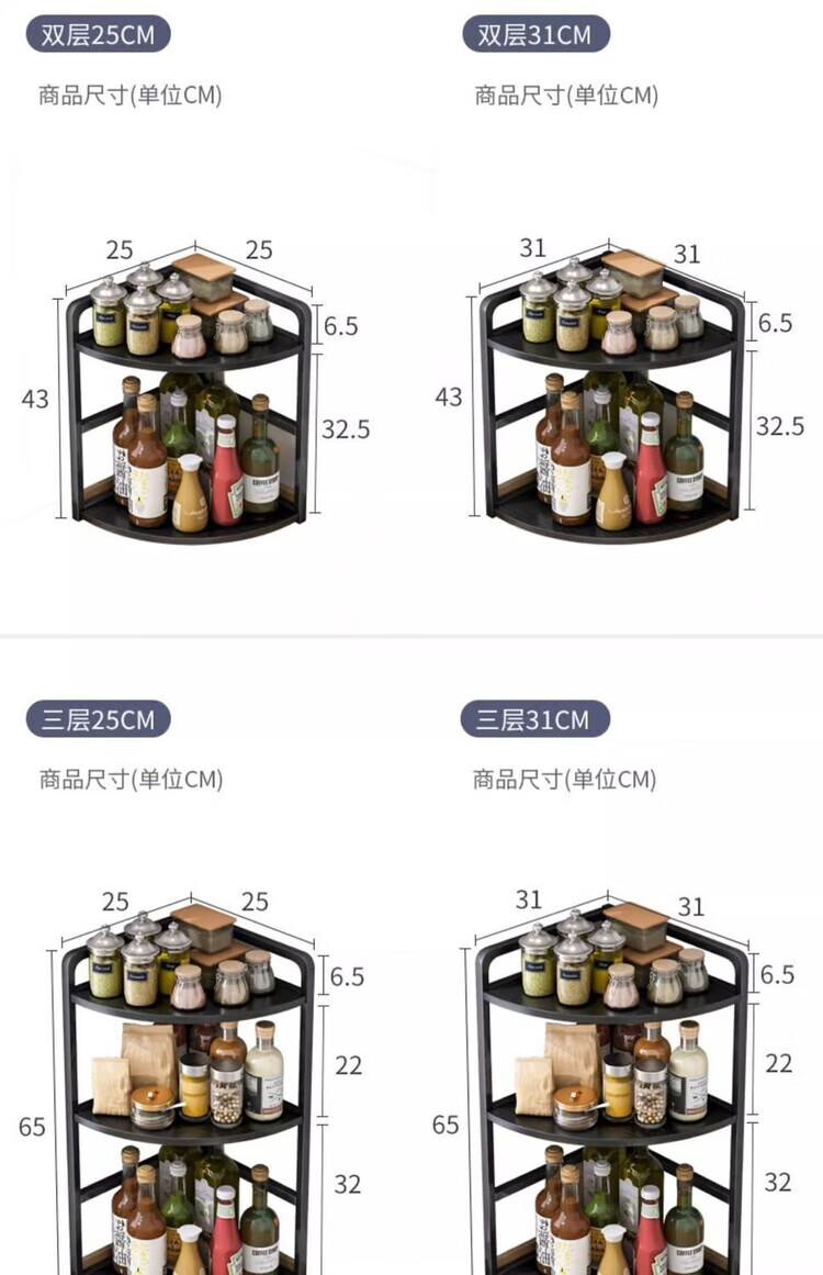 简漾厨房置物架调料调味品三角架台面转角多功能调味料三角墙角收纳 【中号两层】浅橡木25X25X43
