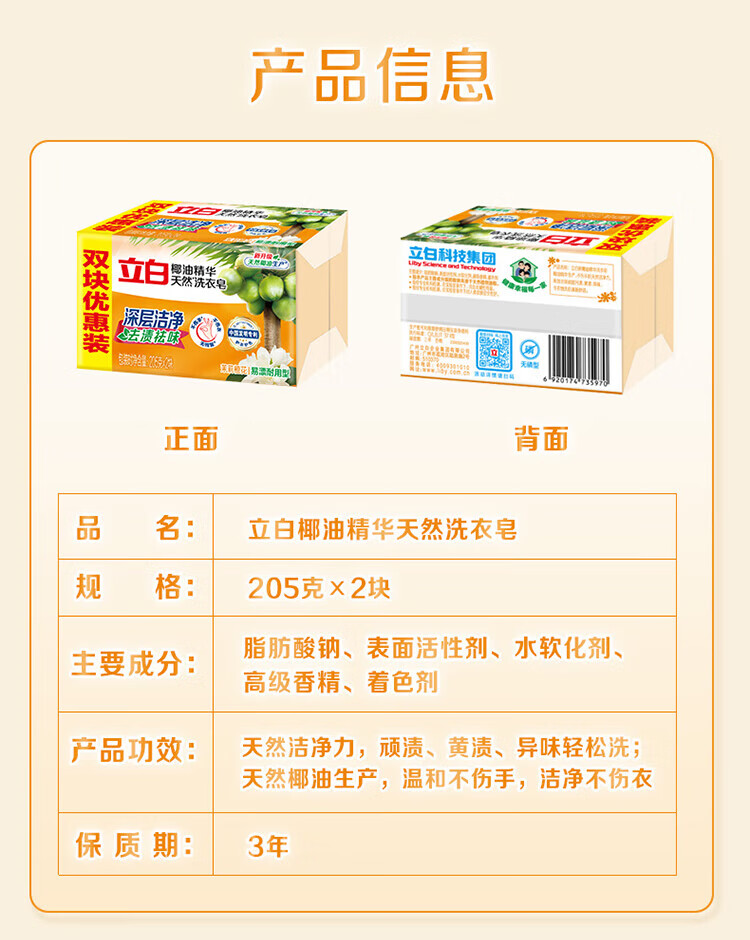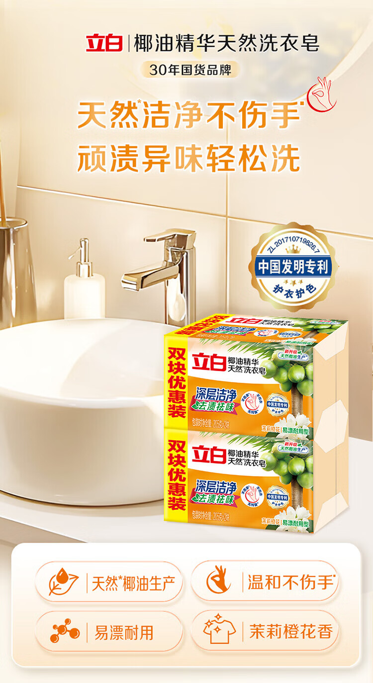 立白肥皂洗衣皂强力去污透明皂深层去渍祛味不伤手整箱批发实惠组合装 【共1块】天然椰油皂101g*1块