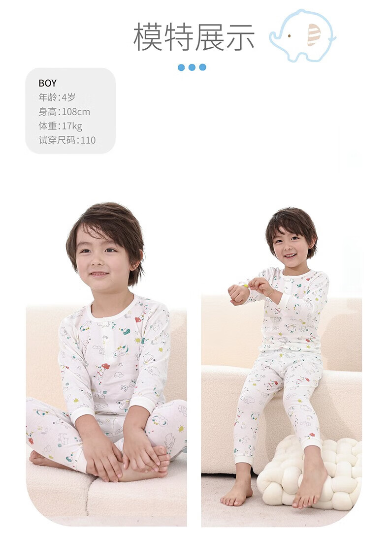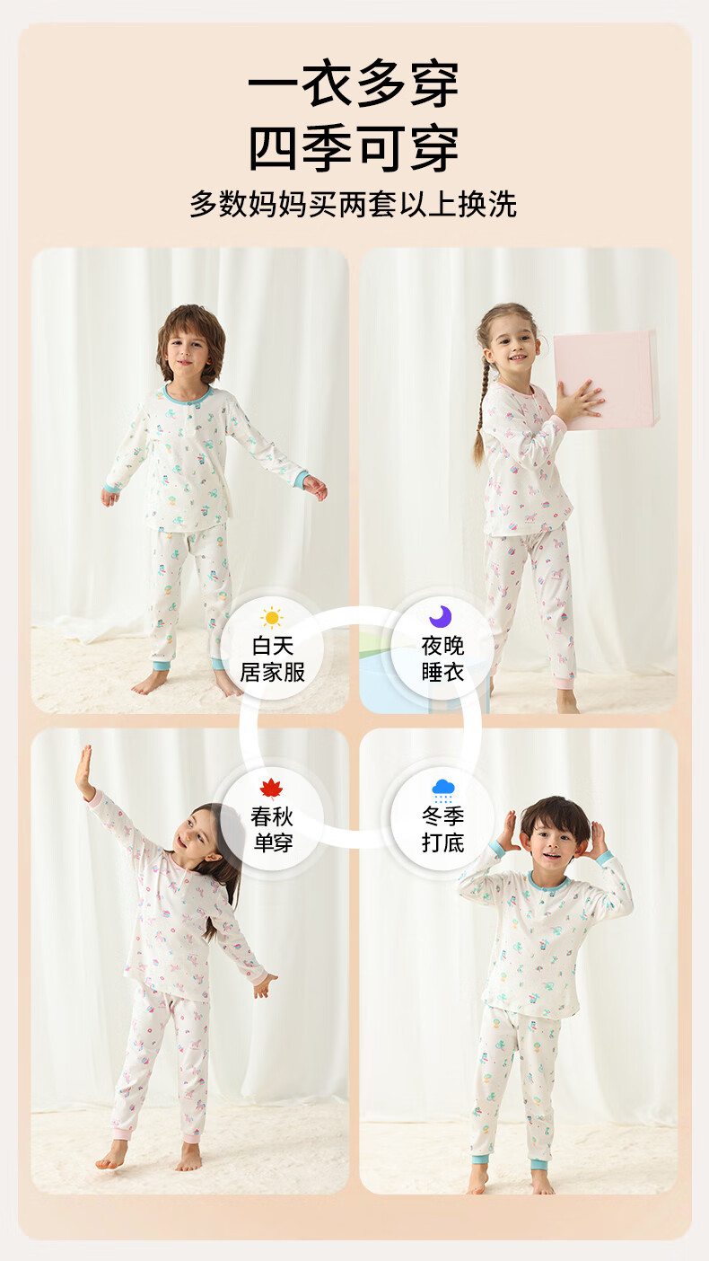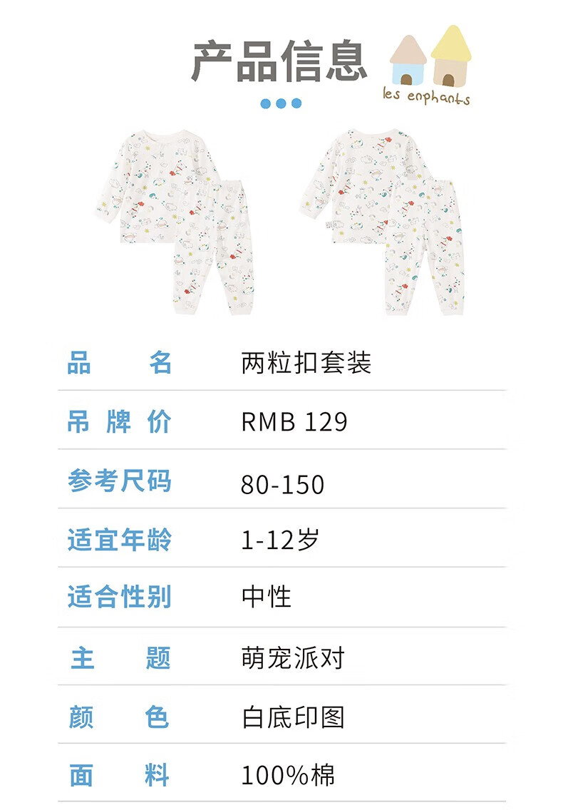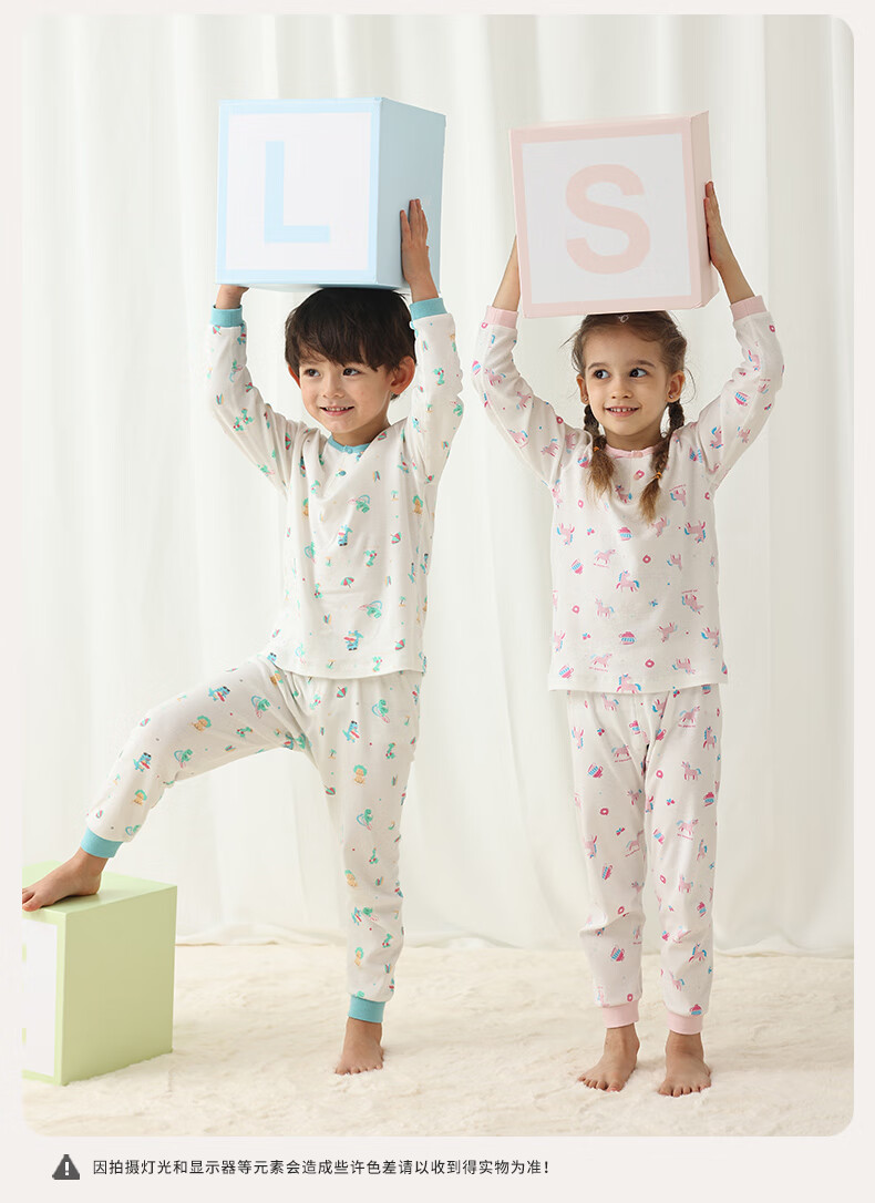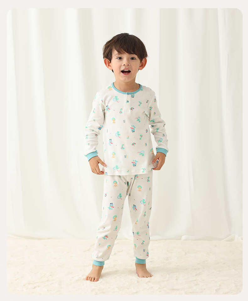 丽婴房(Les enphants)童装婴儿衣服纯棉儿童内衣套装薄宝宝秋季套装长袖睡衣秋薄款 奇想天蓝 140 CM/10岁