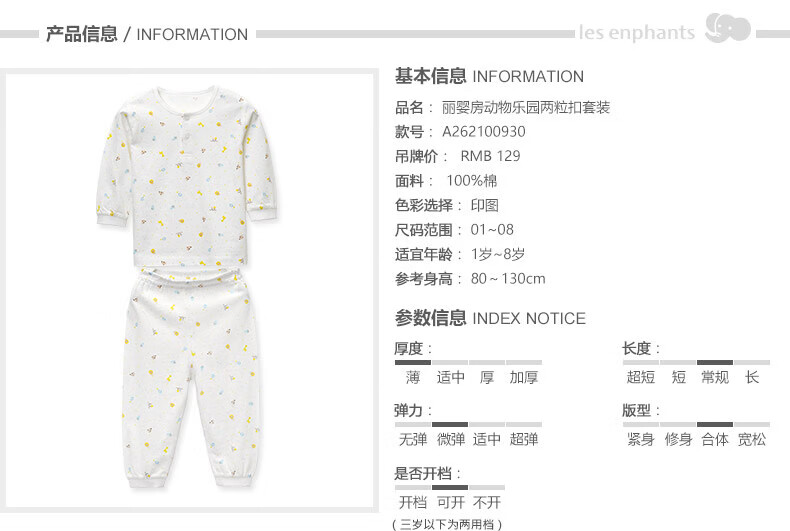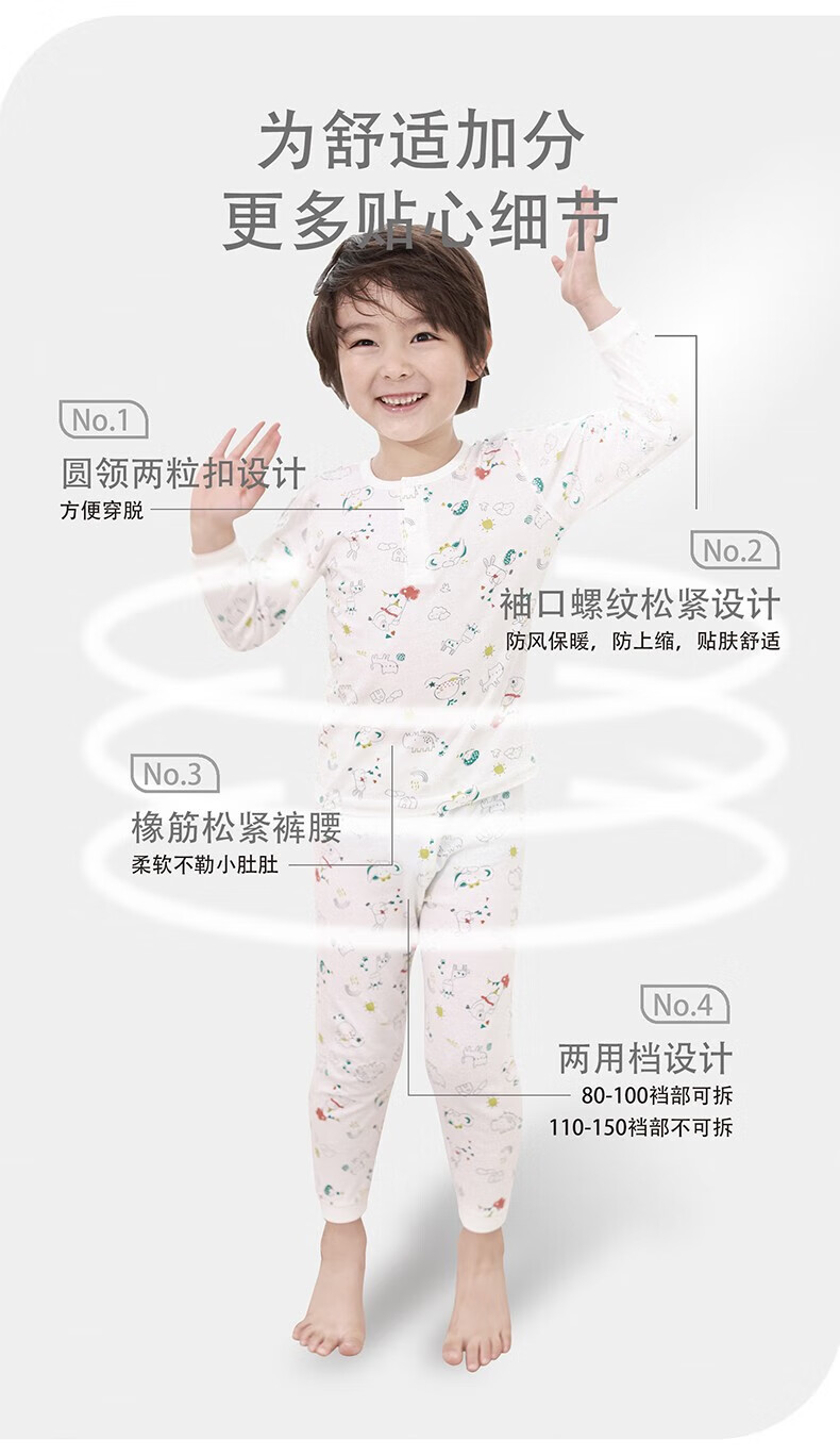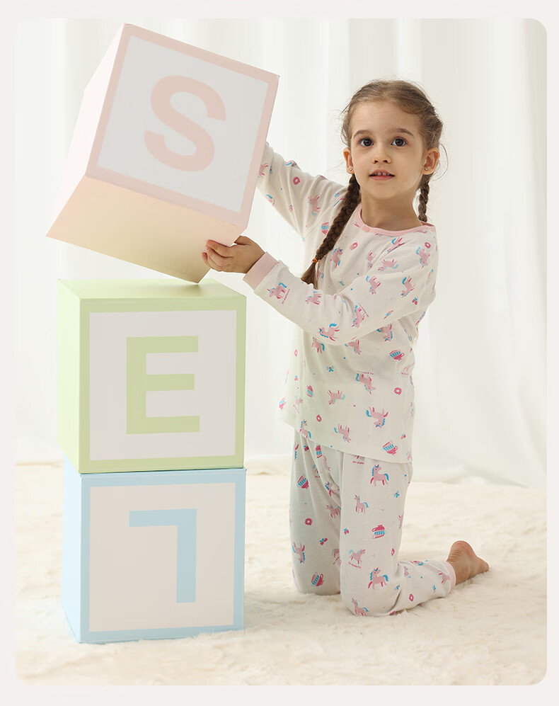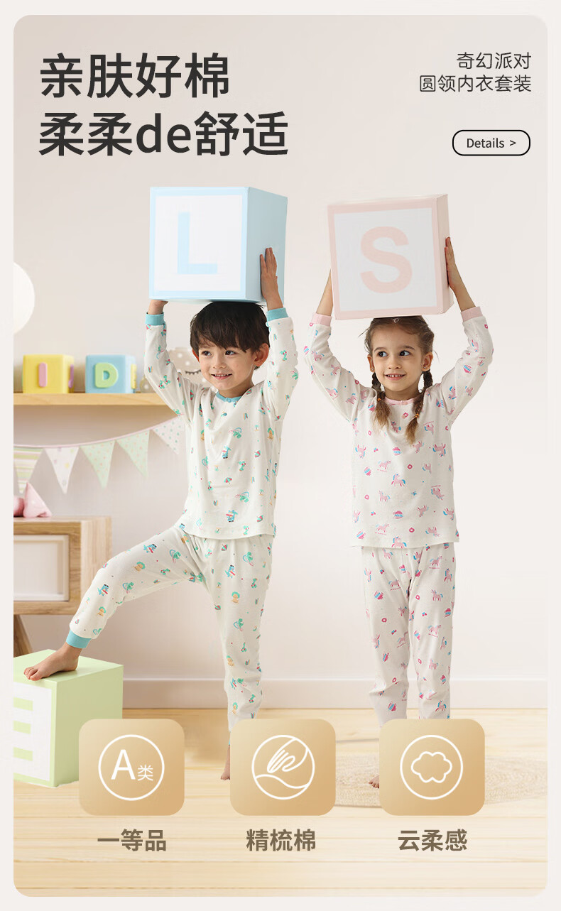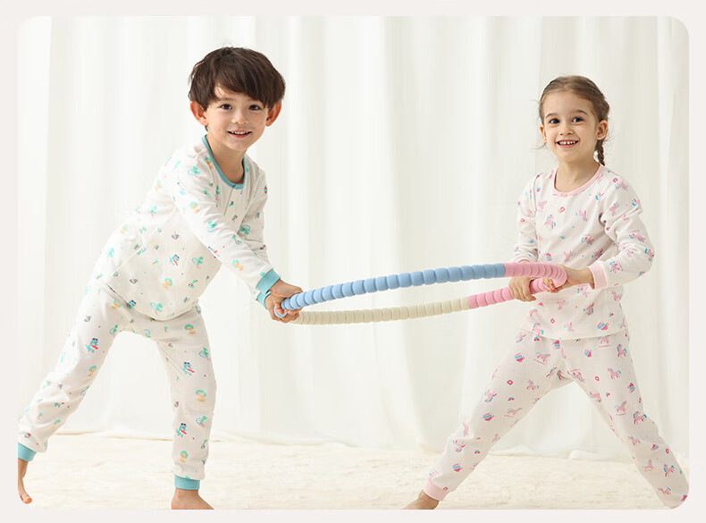 丽婴房(Les enphants)童装婴儿衣服纯棉儿童内衣套装薄宝宝秋季套装长袖睡衣秋薄款 奇想天蓝 140 CM/10岁