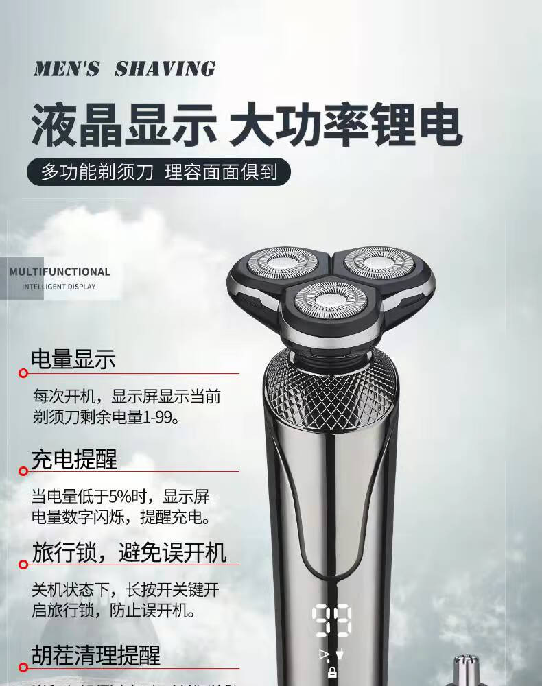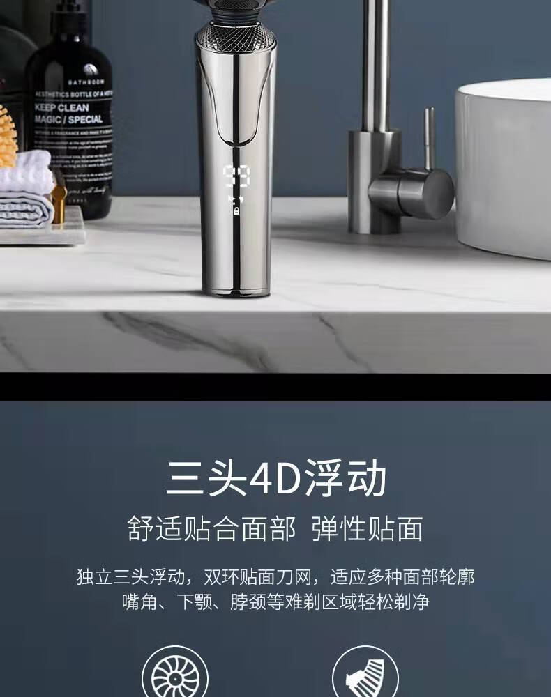 飞利浦斯(PHlLlPS)同款2025新款全身水洗5D电动剃须刀男刮胡刀三刀头多功能胡须刀7W数显 数显版7W大功率【豪华顶配】+备用刀头+四合一全套