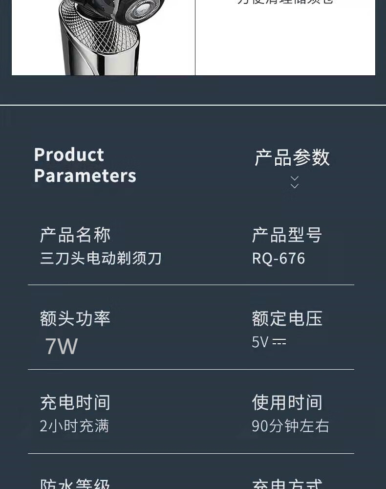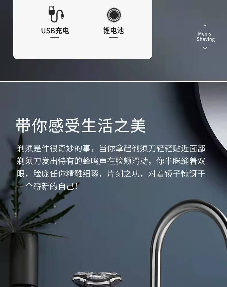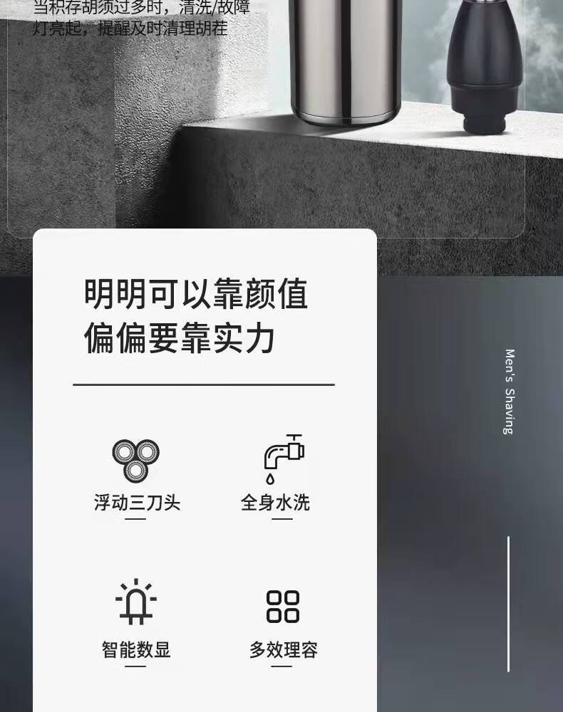 映趣 电动剃须刀男士刮胡刀充电式三刀头家用轻便胡须刀一小时快充干湿两剃送男友男士生日礼物 黑色普通装