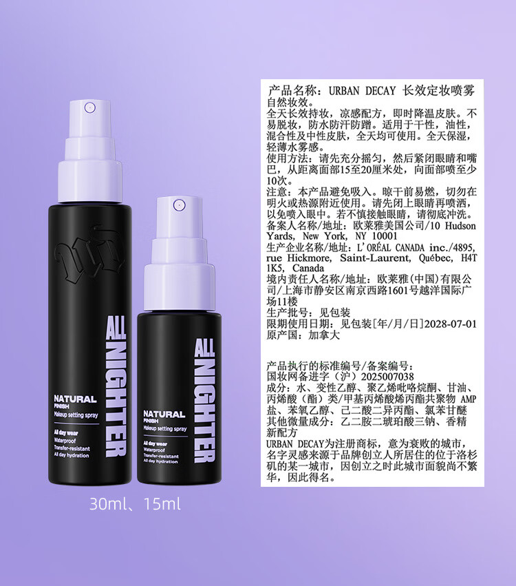 Urban Decay衰败城市UD定妆喷雾焊妆控油持久防水旅行装便携生日520礼物30ml