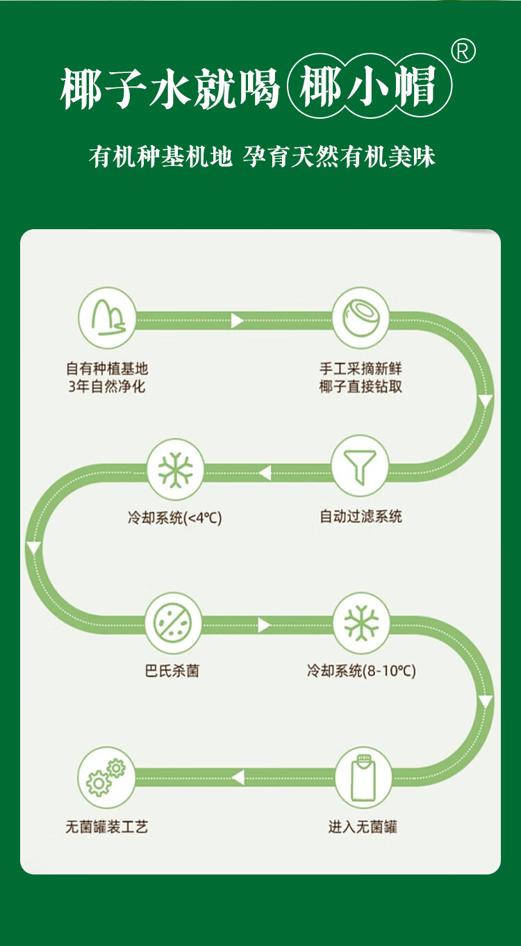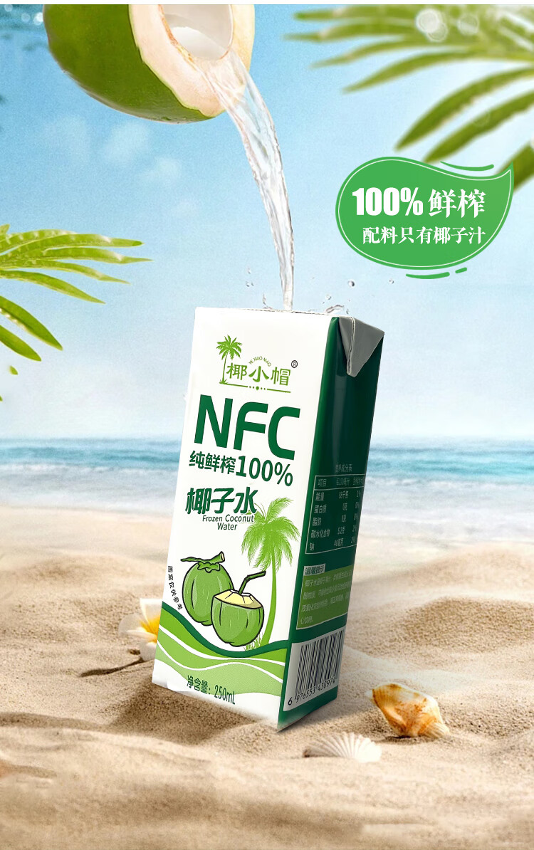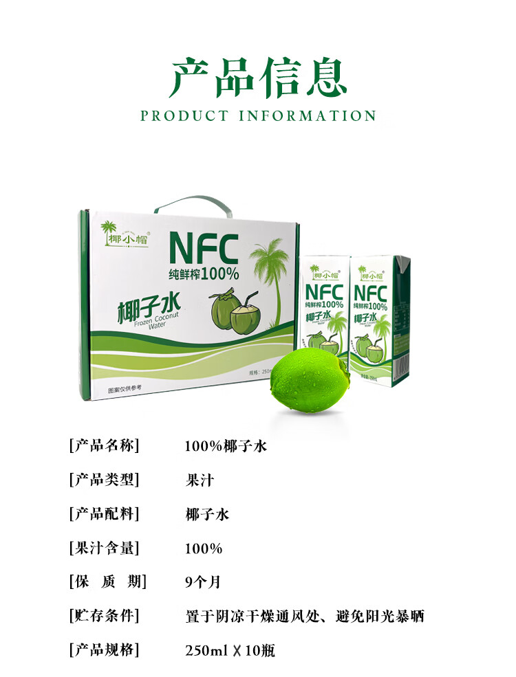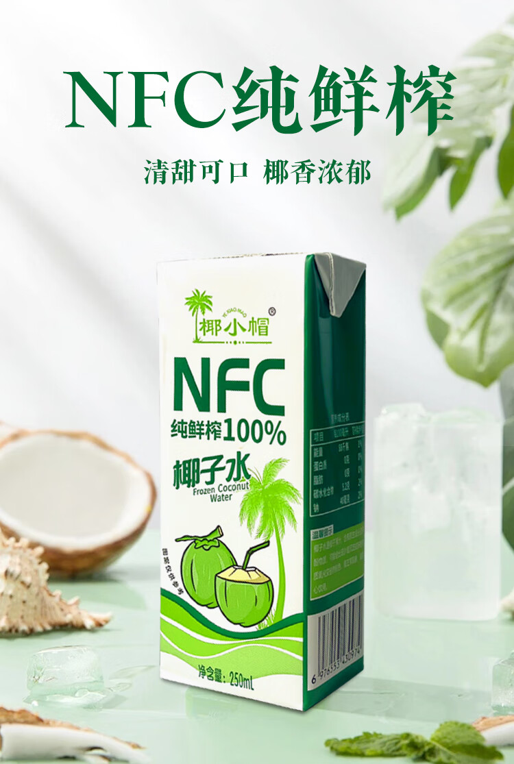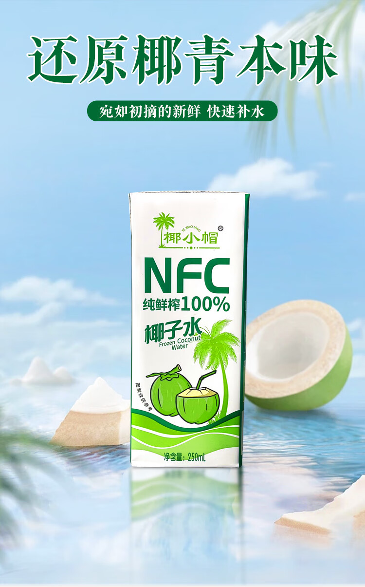 椰小帽NFC椰子水鲜榨椰子水 草绿色 250ml*10盒装