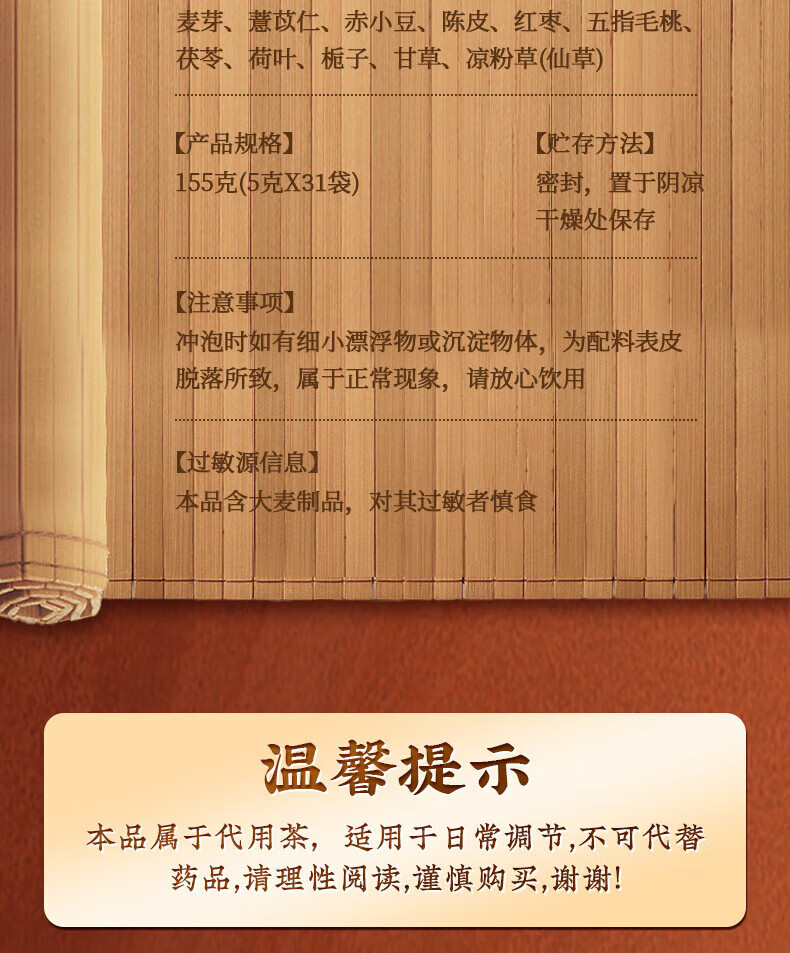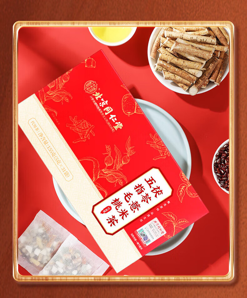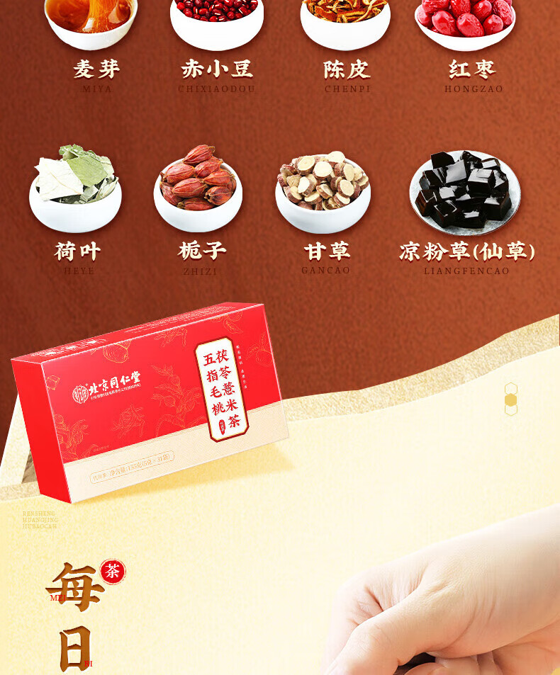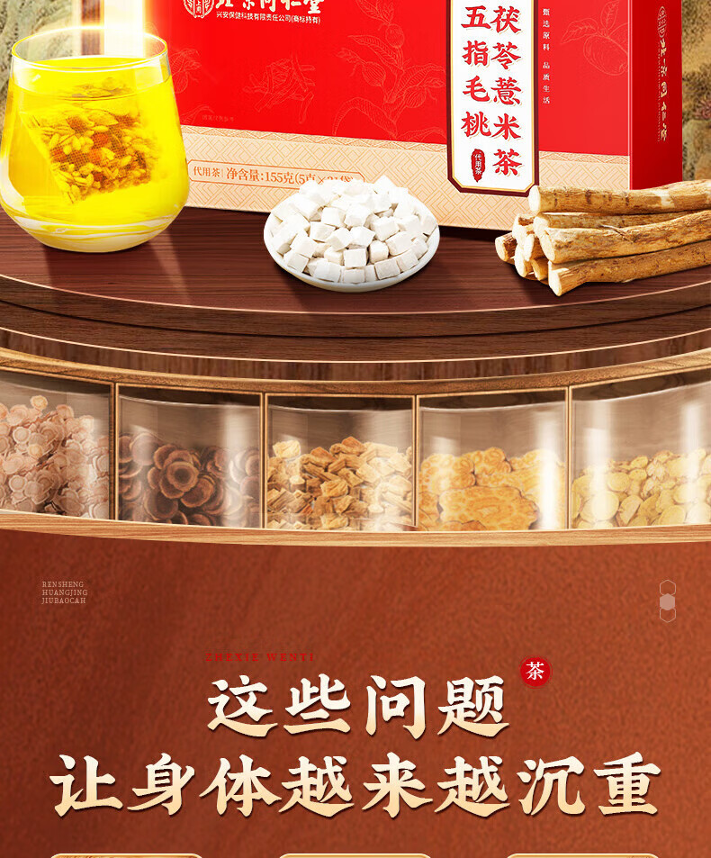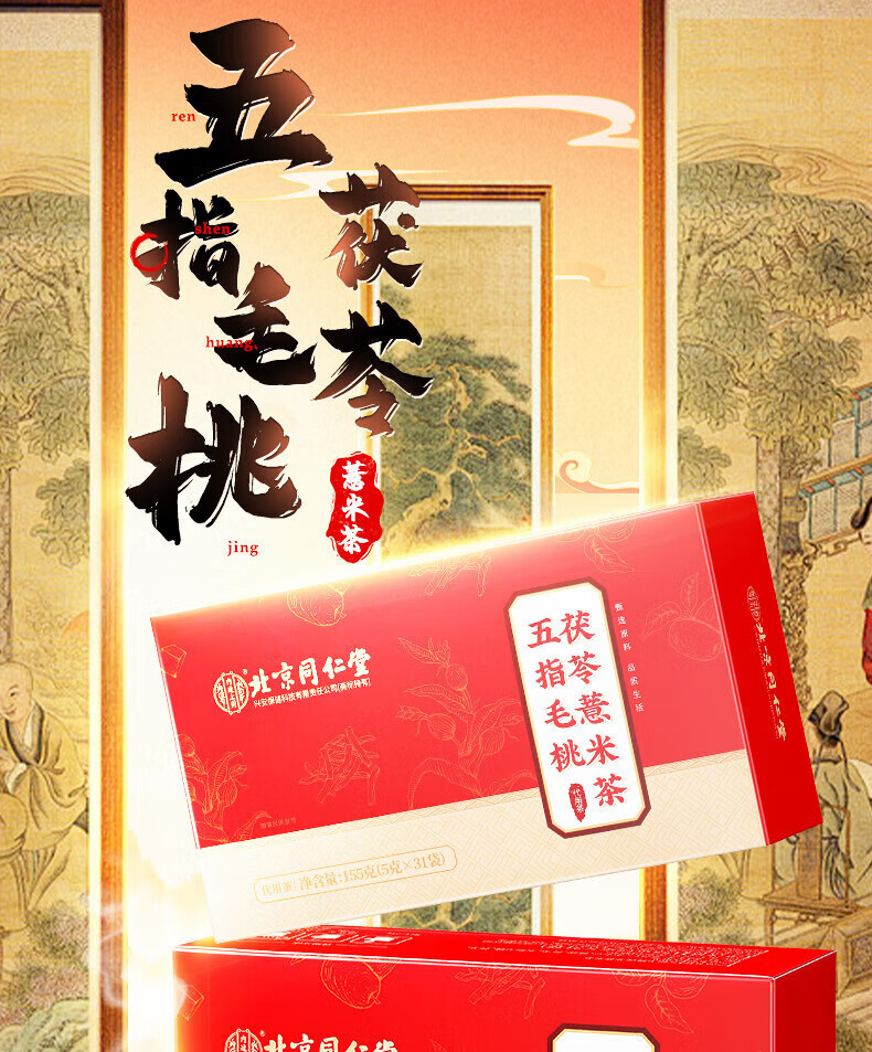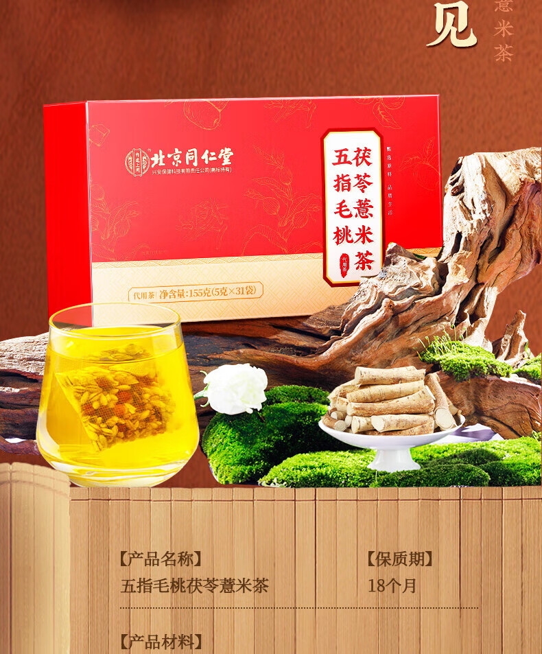北京同仁堂五指毛桃茯苓薏米茶袋泡茶熬夜护肝养肝健脾湿气重养生茶 【1盒体验装】(5g*31袋)/盒