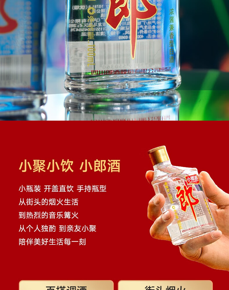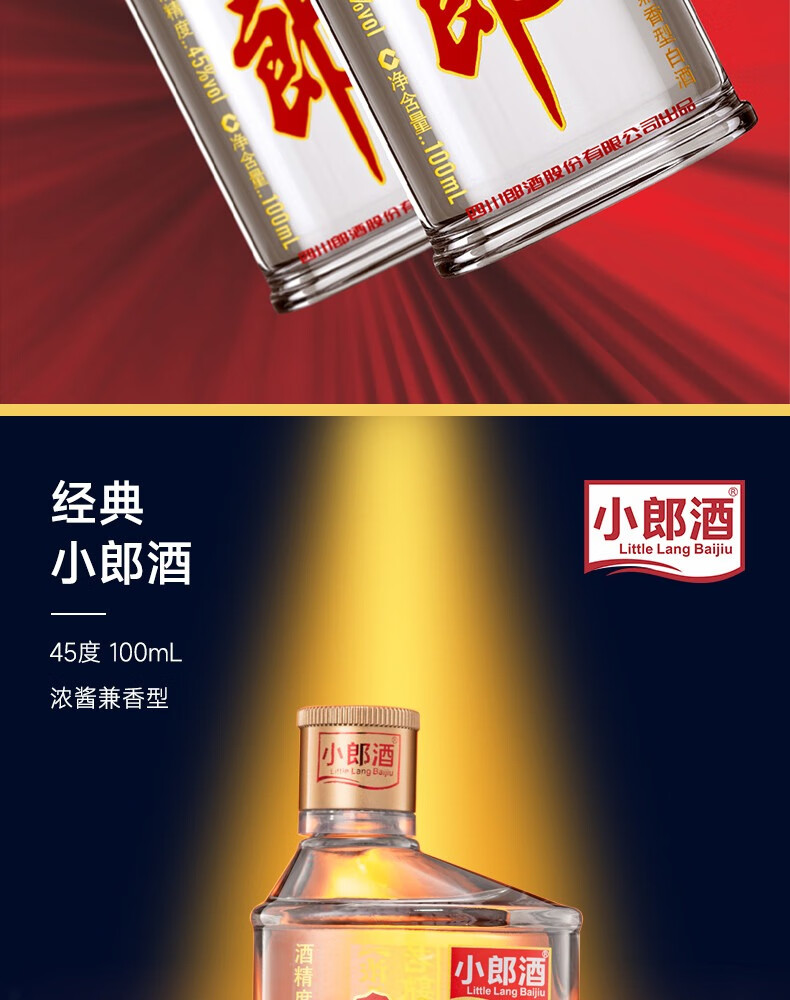 郎酒小郎酒浓酱兼香型白酒 45度粮食酒 45度 100mL 24瓶 经典小郎酒 整箱
