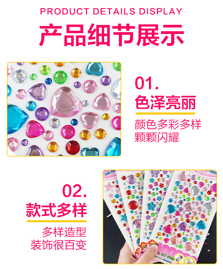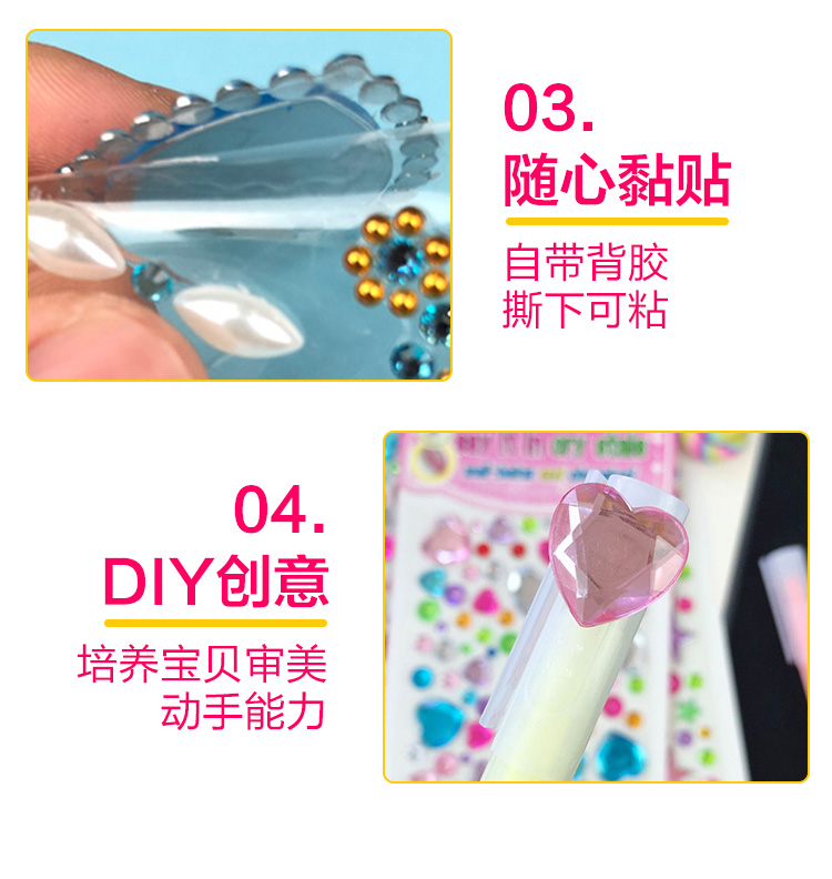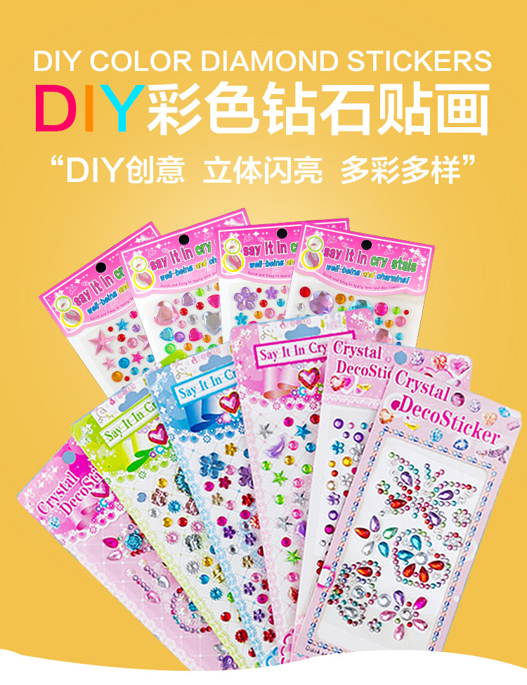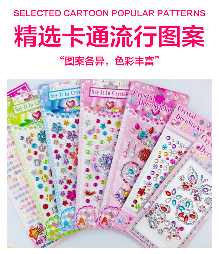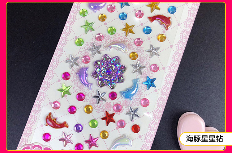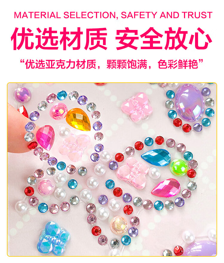 丹米琦儿童玩具女孩diy钻石宝石贴纸贴画女孩水晶奖励贴画生日礼物12张