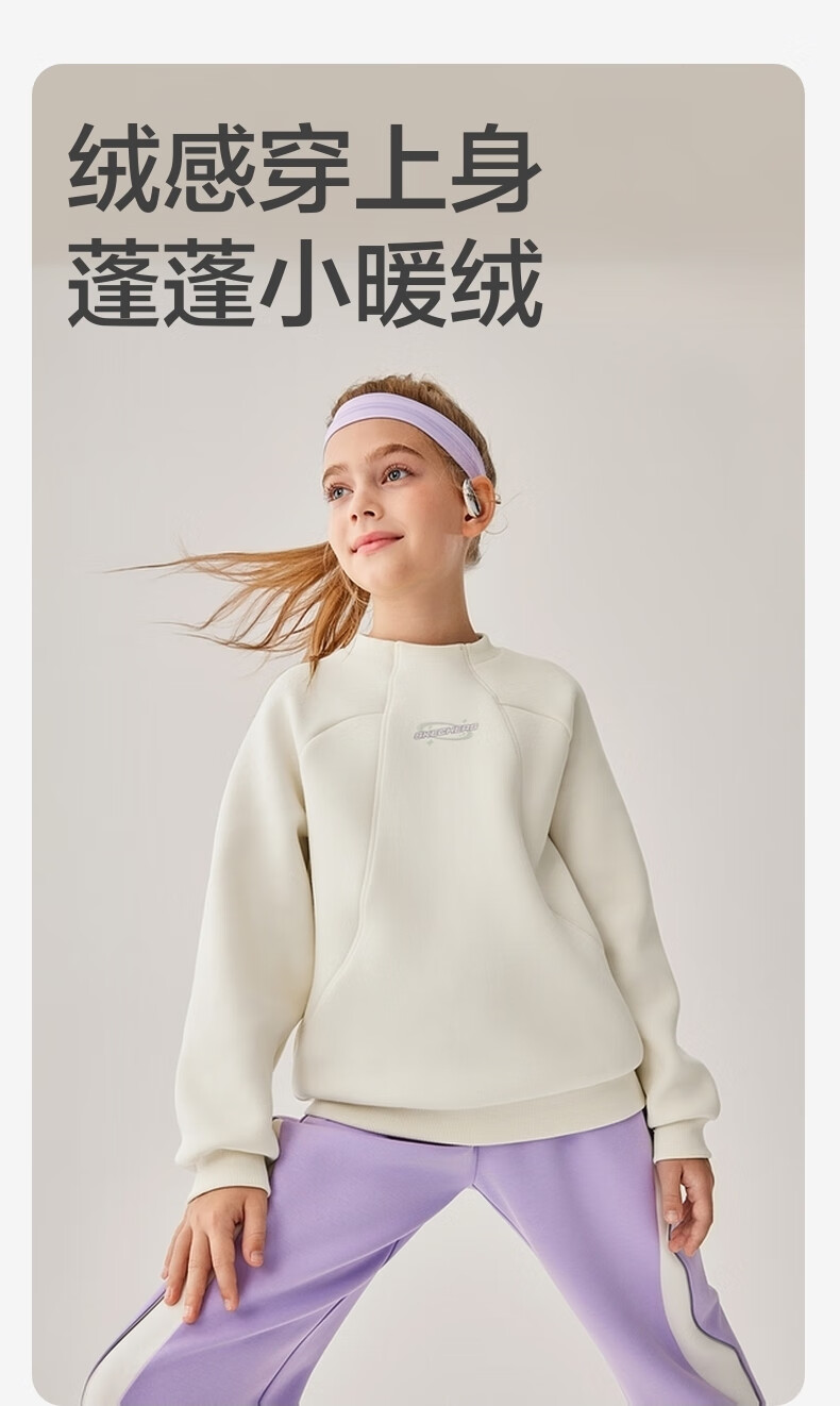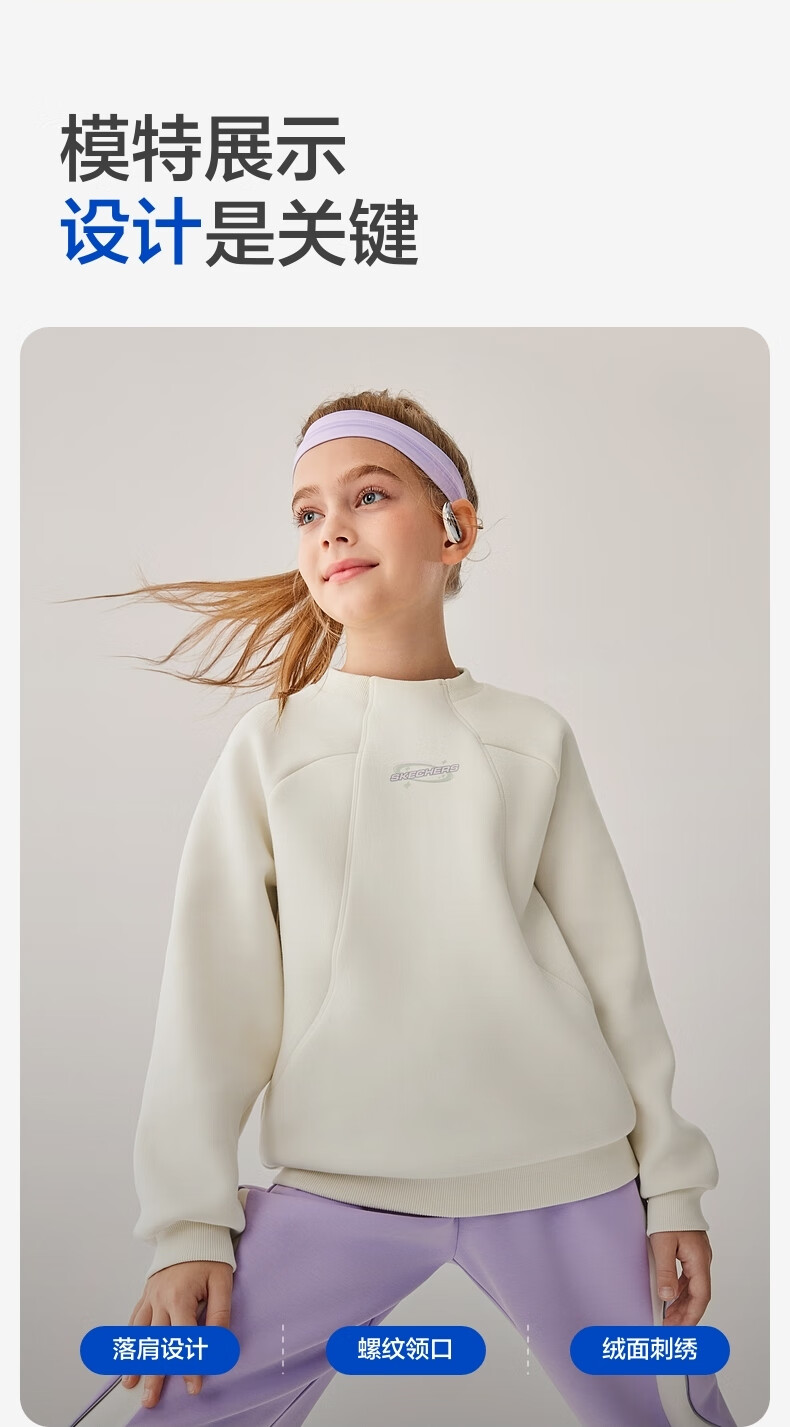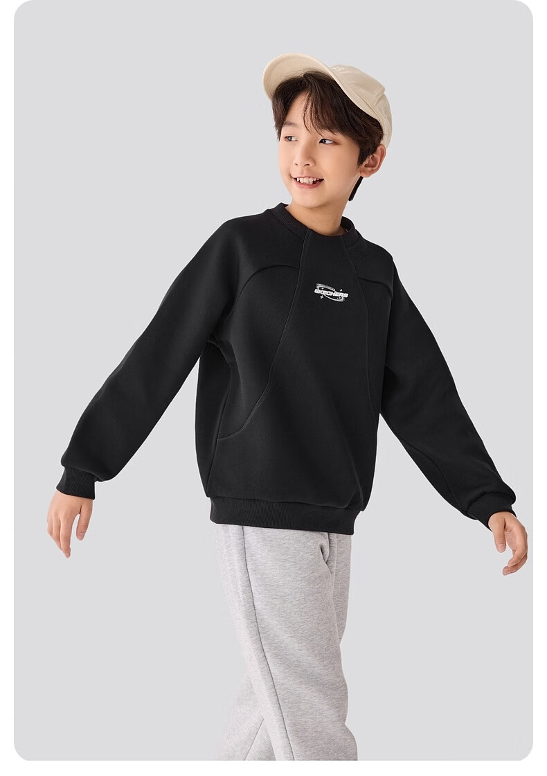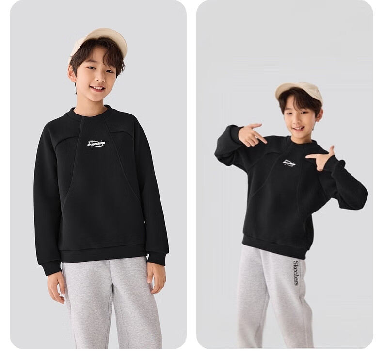 Skechers斯凯奇儿童卫衣男女童加绒保暖舒适长袖上衣基础百搭运动P425K051 碳黑/0018 170
