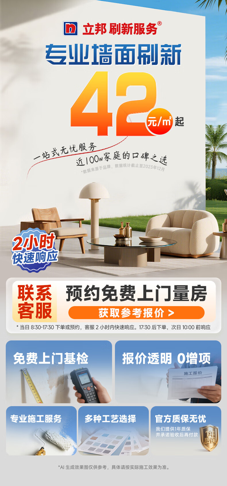 立邦 刷新服务 乳胶漆/墙面翻新/局部装修刷漆刷墙服务刷墙涂刷服务
