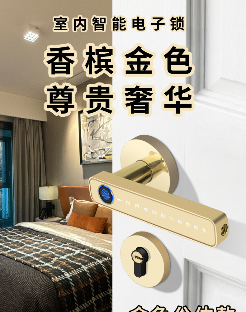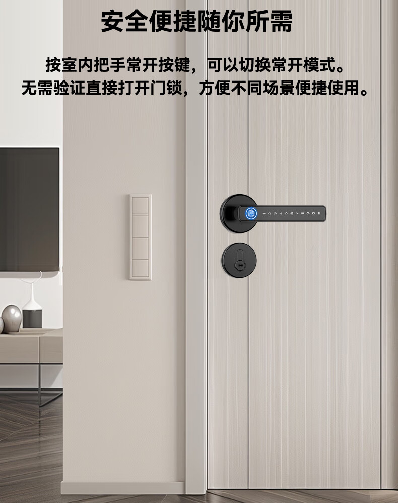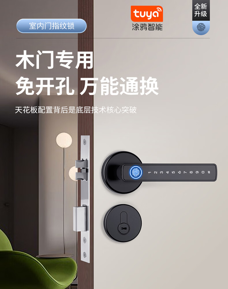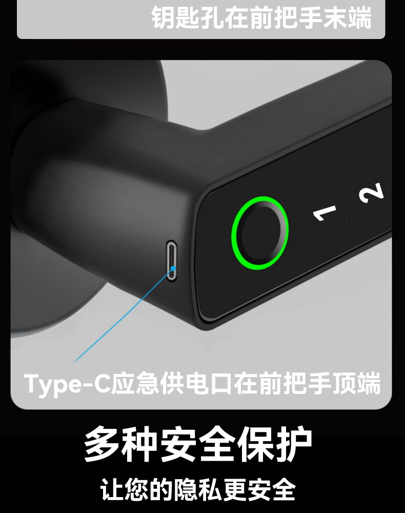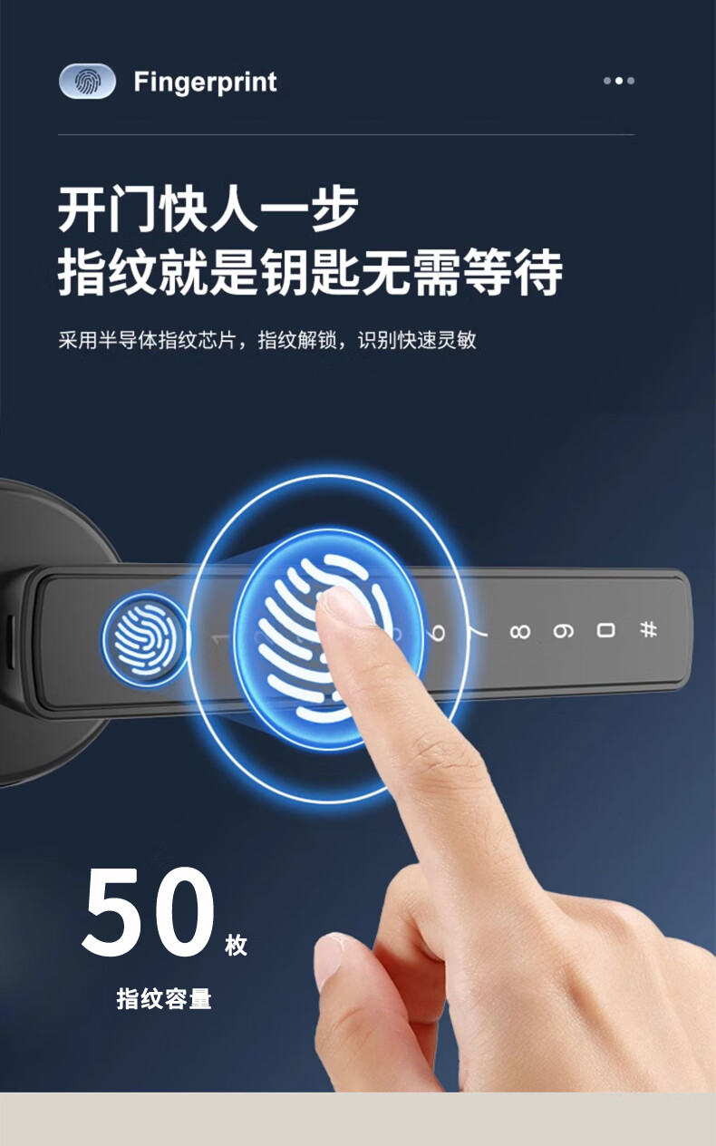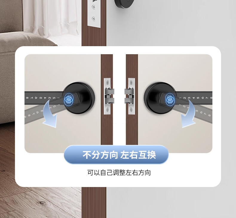 法雷斯顿 FALEISTON指纹木门锁室内门密码锁卧室智能门锁办公室门把手电子锁公寓民宿 黑色单舌款-智能蓝牙版(APP管理)