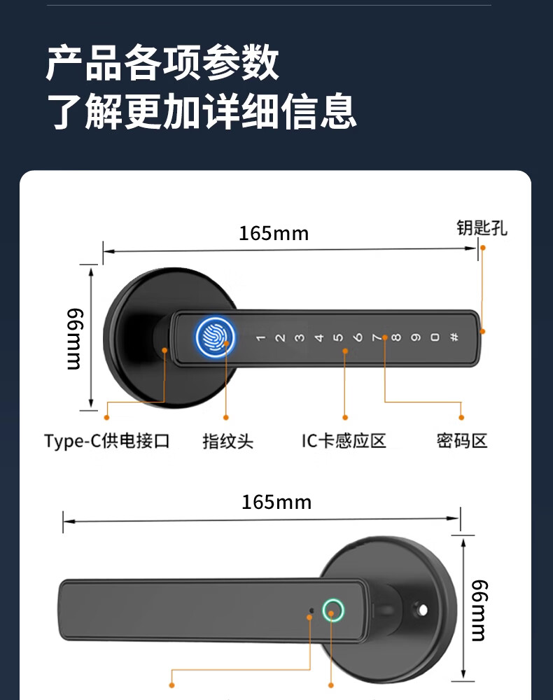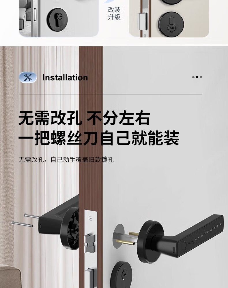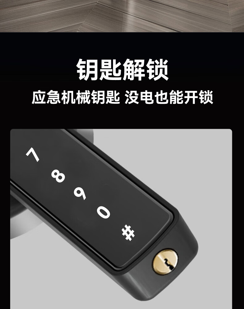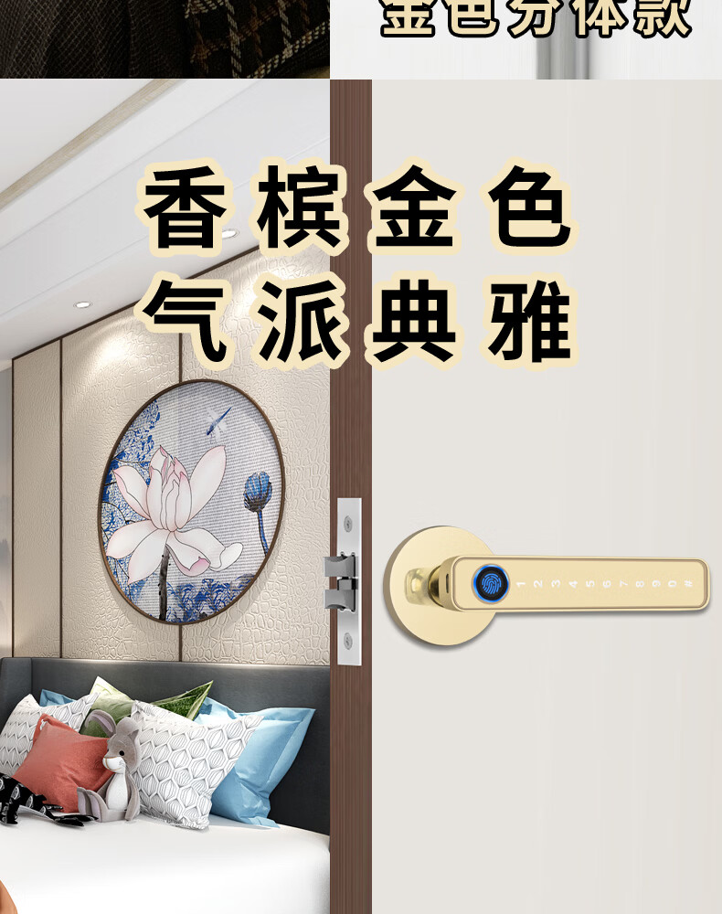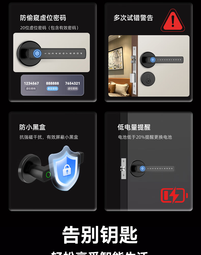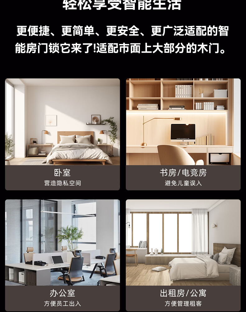法雷斯顿 FALEISTON指纹木门锁室内门密码锁卧室智能门锁办公室门把手电子锁公寓民宿 黑色单舌款-智能蓝牙版(APP管理)